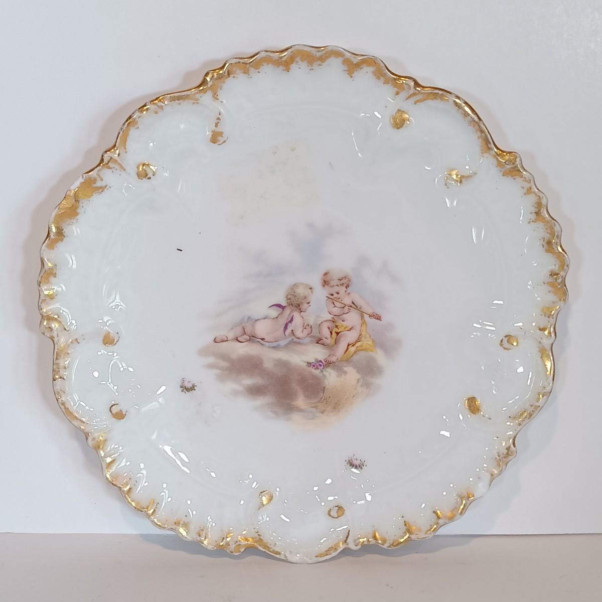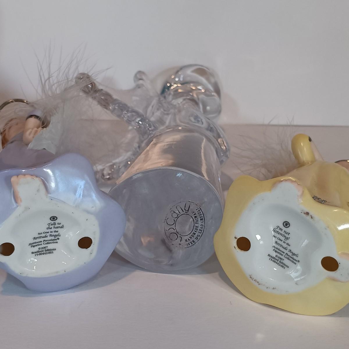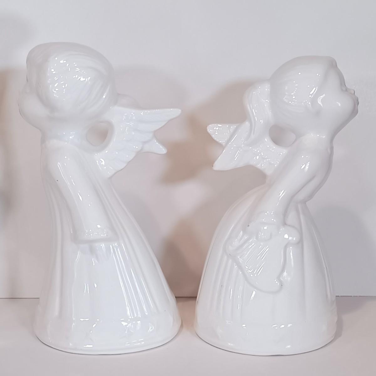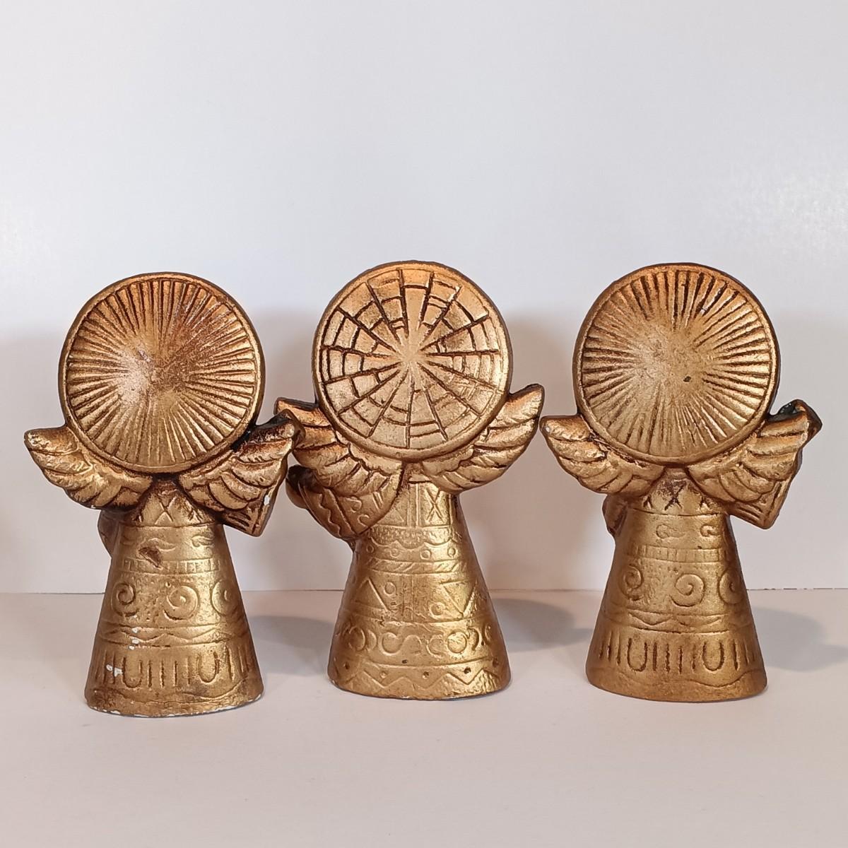 The three gold angels are chalkware and have some minor scuffs from age and storage.