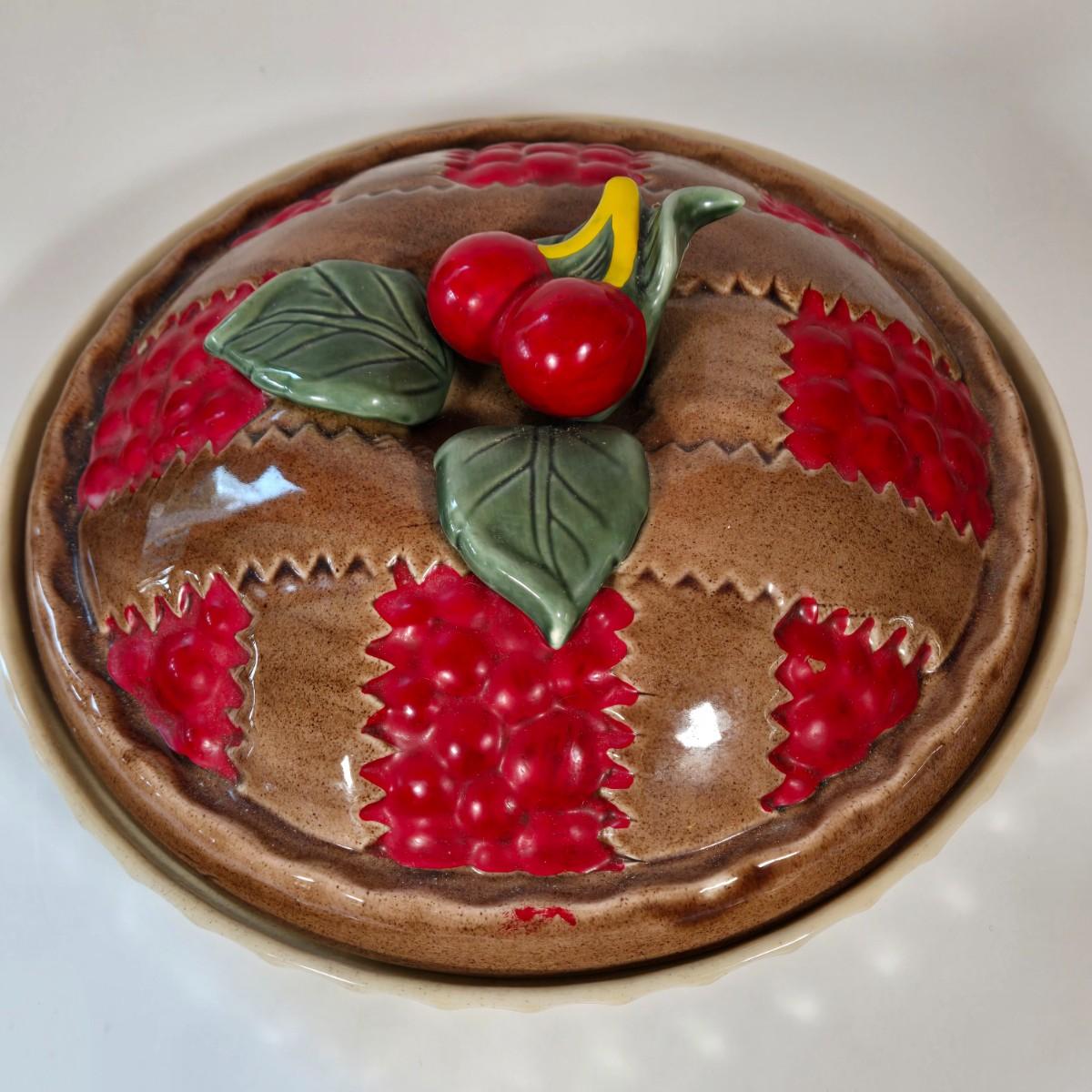 LOT 144B: Fall Leaves Serving Platter, Acorn Cookie Jar, and Cherry Pie Baking Dish