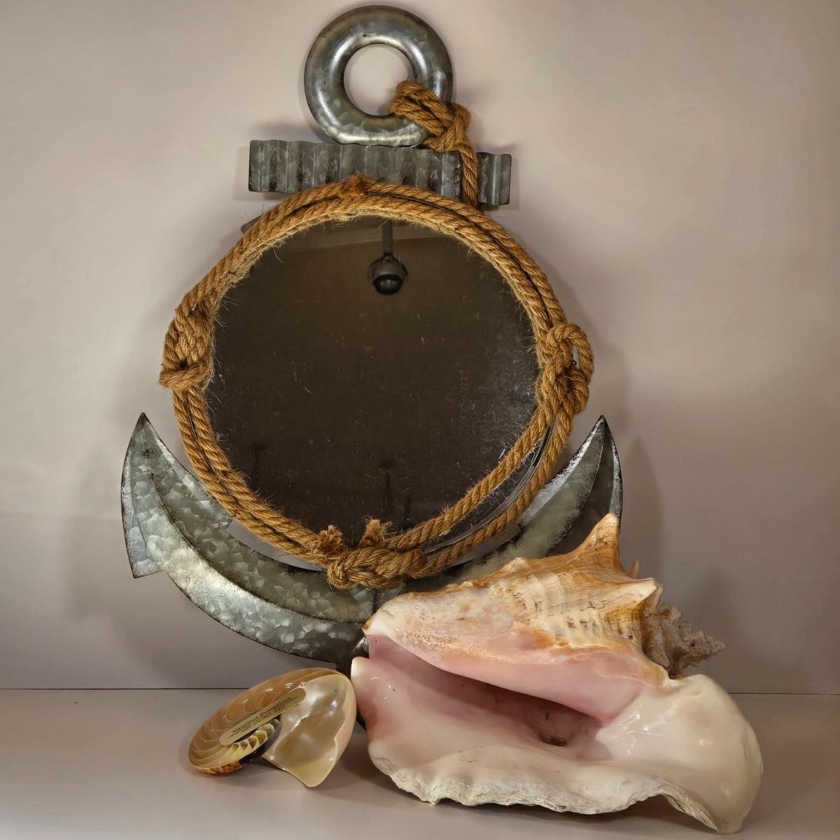 LOT 167B: Anchor Mirror, Large Conch Shell and Rare Speciman Natiulus Shell From the Philippines