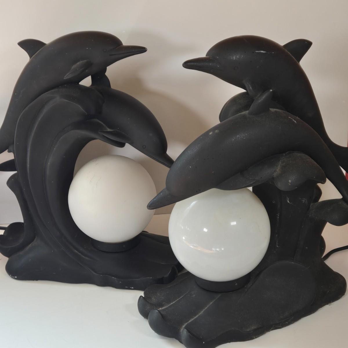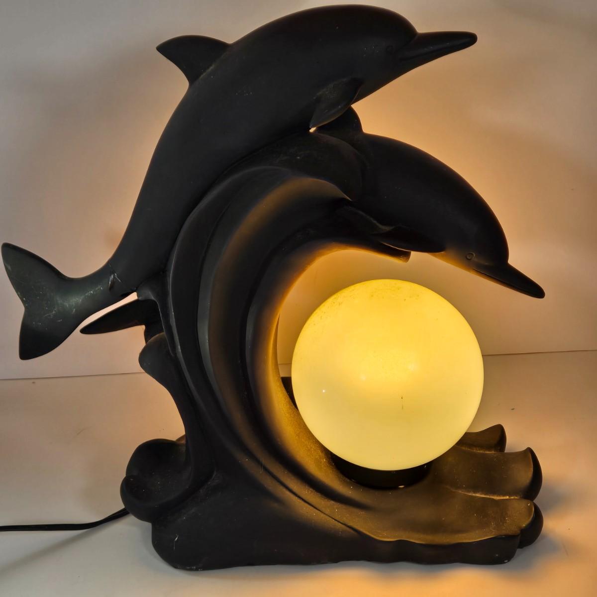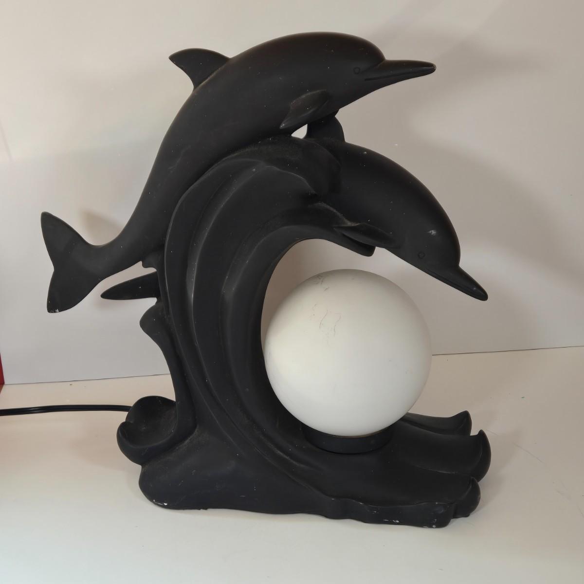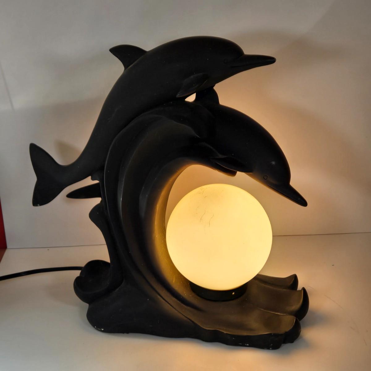 LOT 170B: Two Vintage Dolphin Moon Table Lamps- Black & White-They Work!