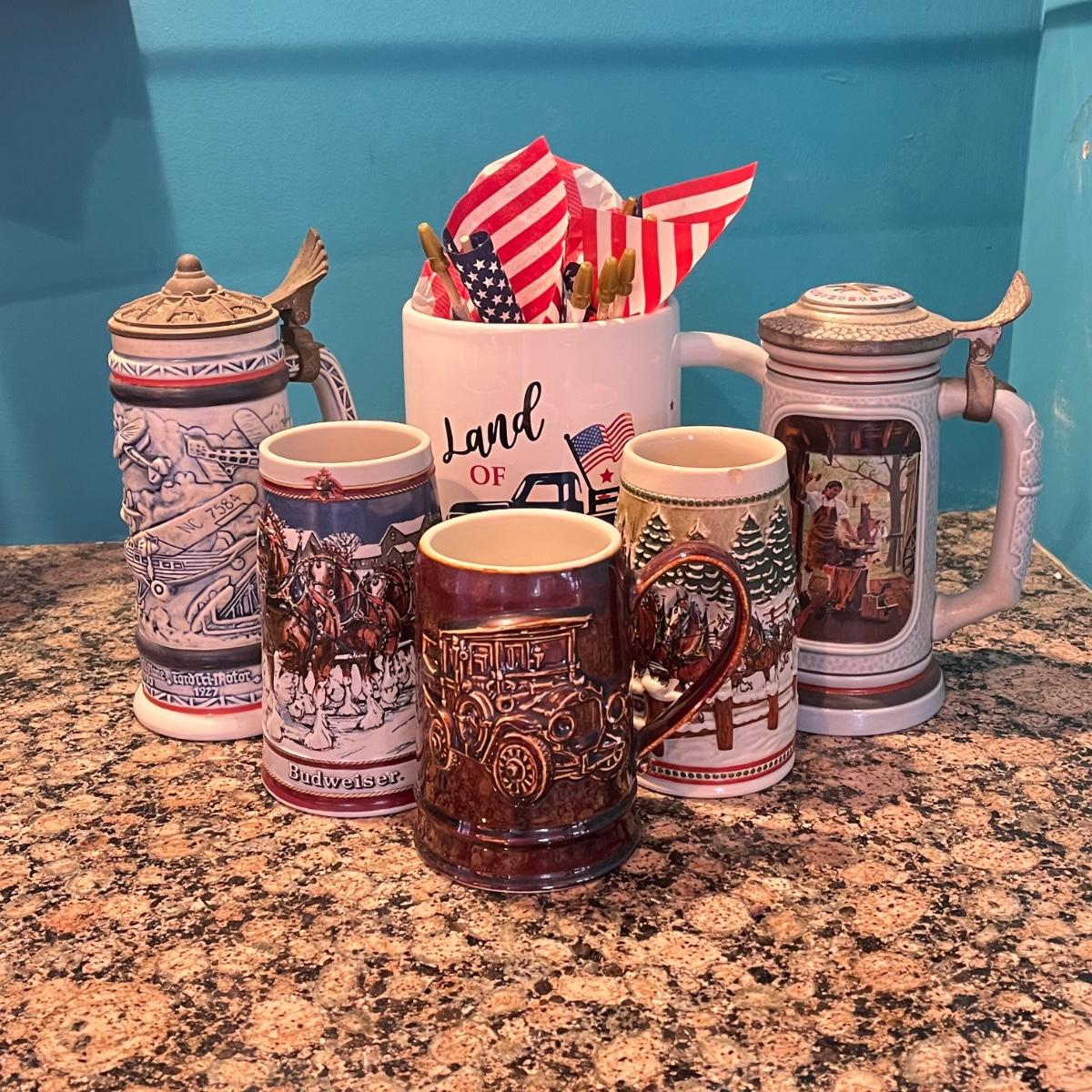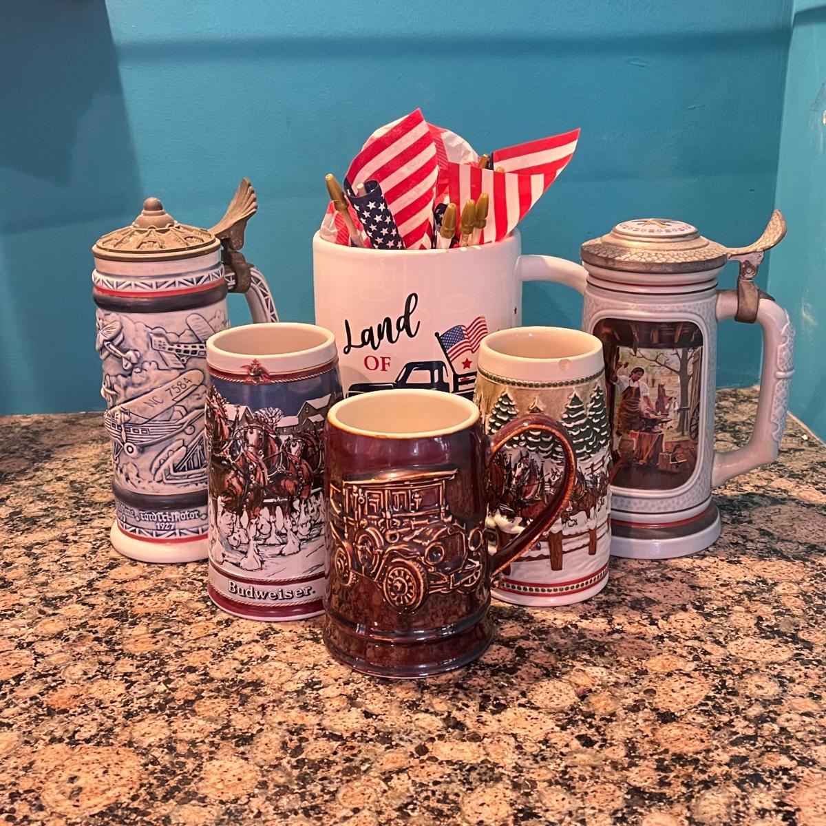 LOT 172B: Vintage Steins and More - Budweiser, Avon
