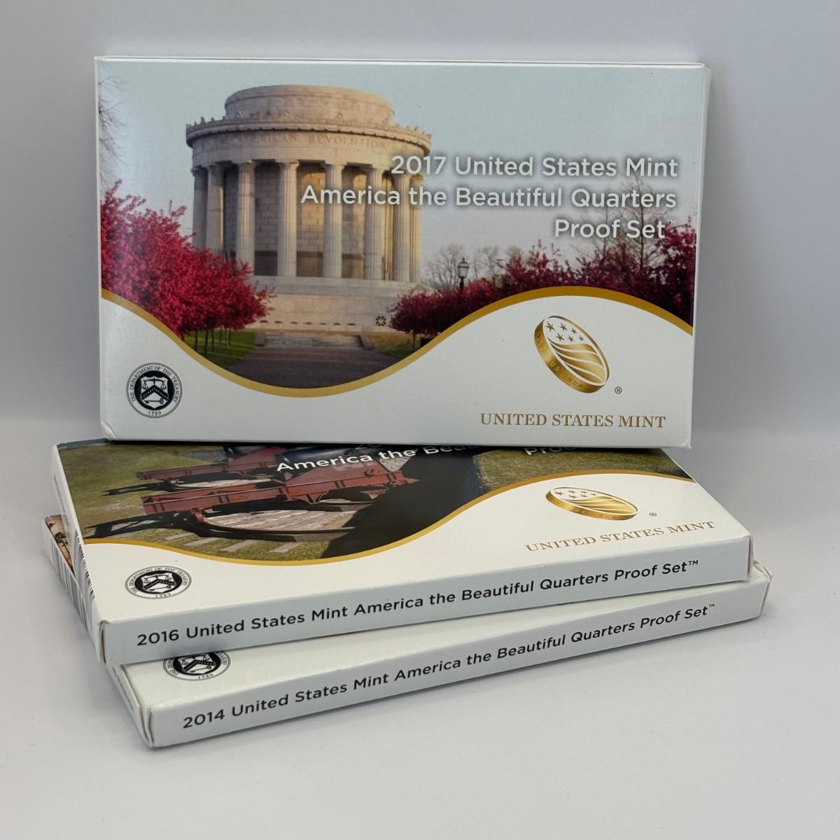 LOT:256: US Mint - America the Beautiful Quarters Proof Sets 2014, 2016 & 2017