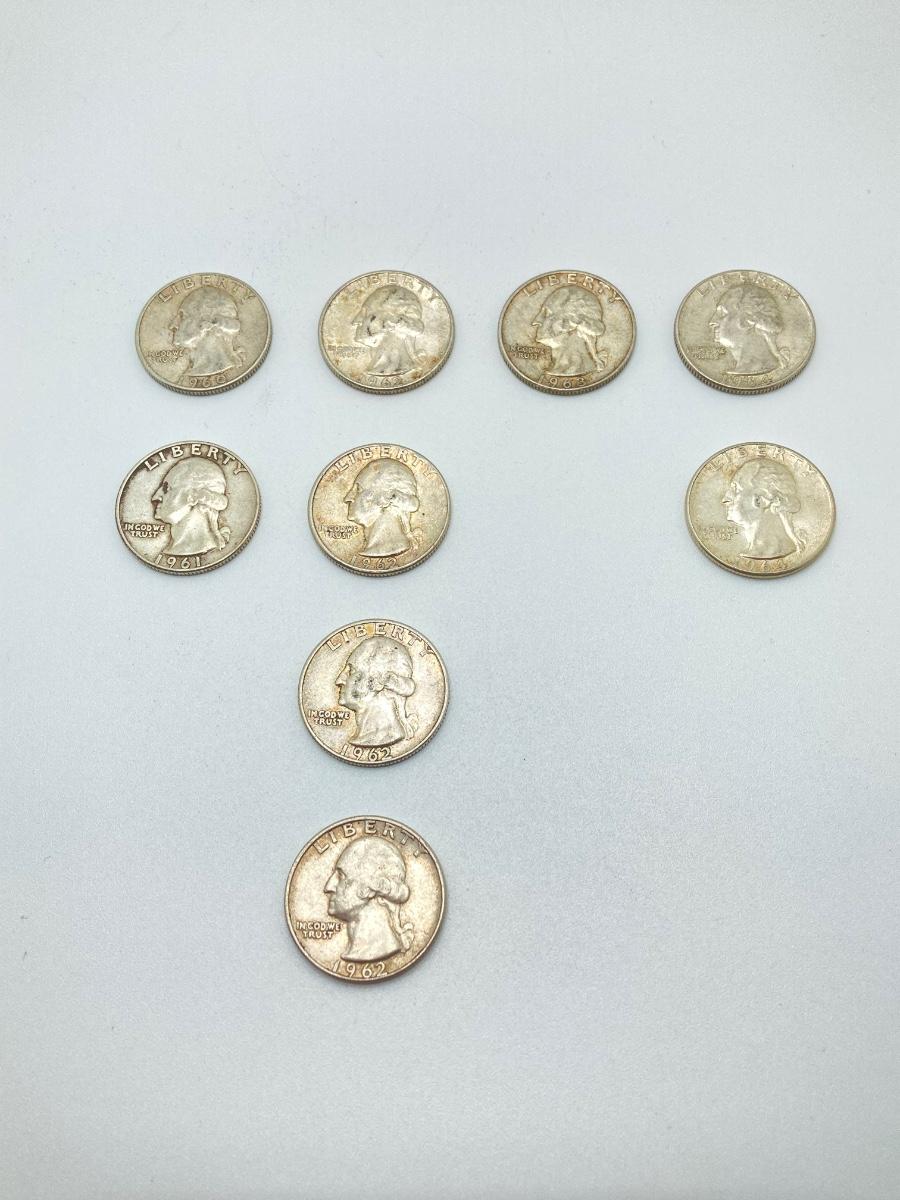 LOT 274j2: Twelve Silver US Washington Quarter Coins - 1950s and 1960s
