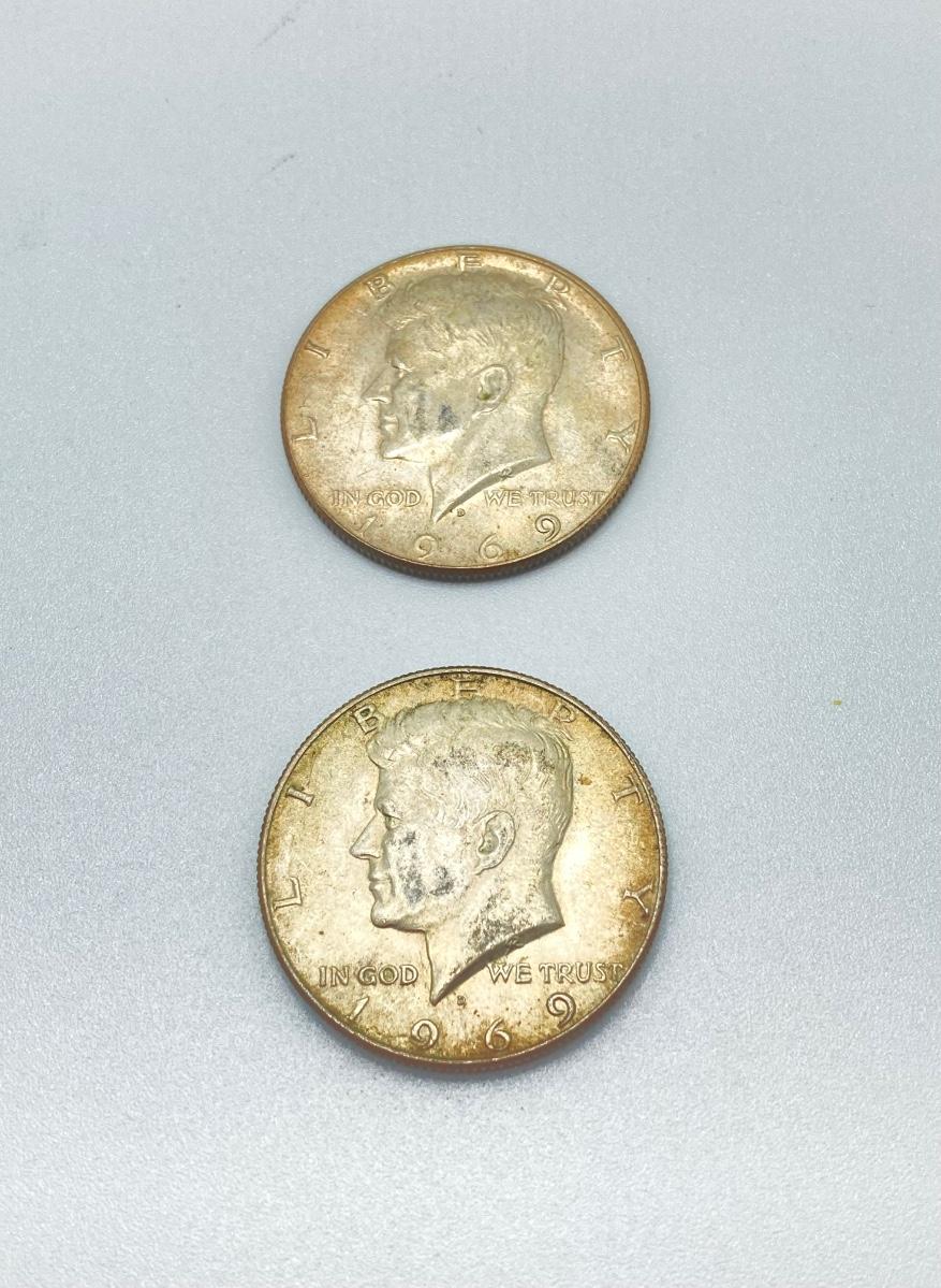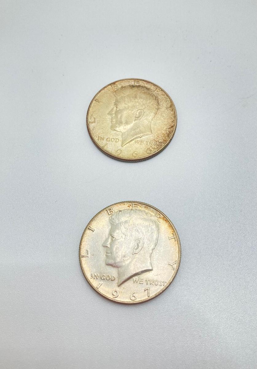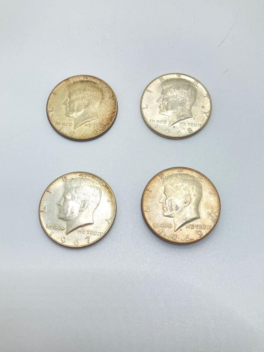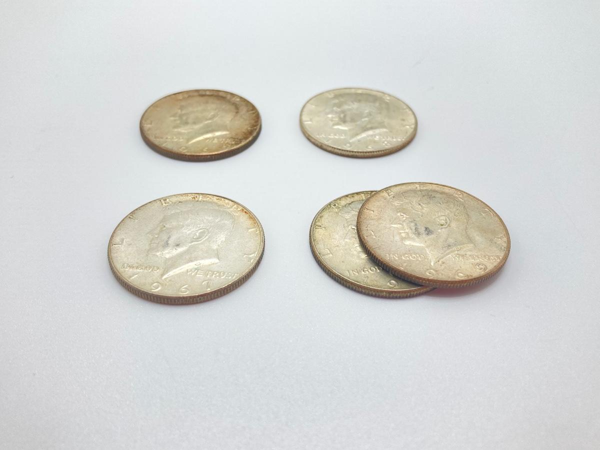 LOT 277j2: Five Silver US Kennedy Half Dollar Coins - 1965 to 1969