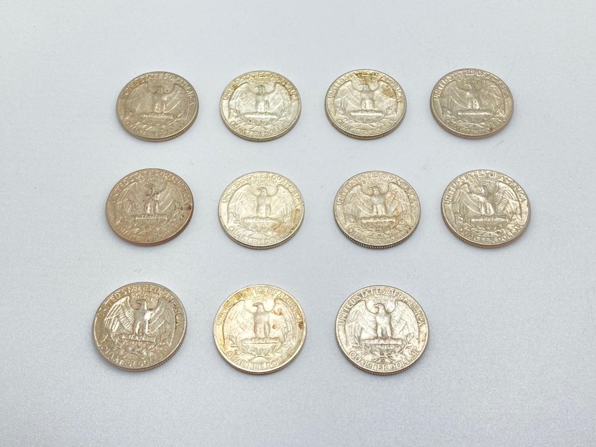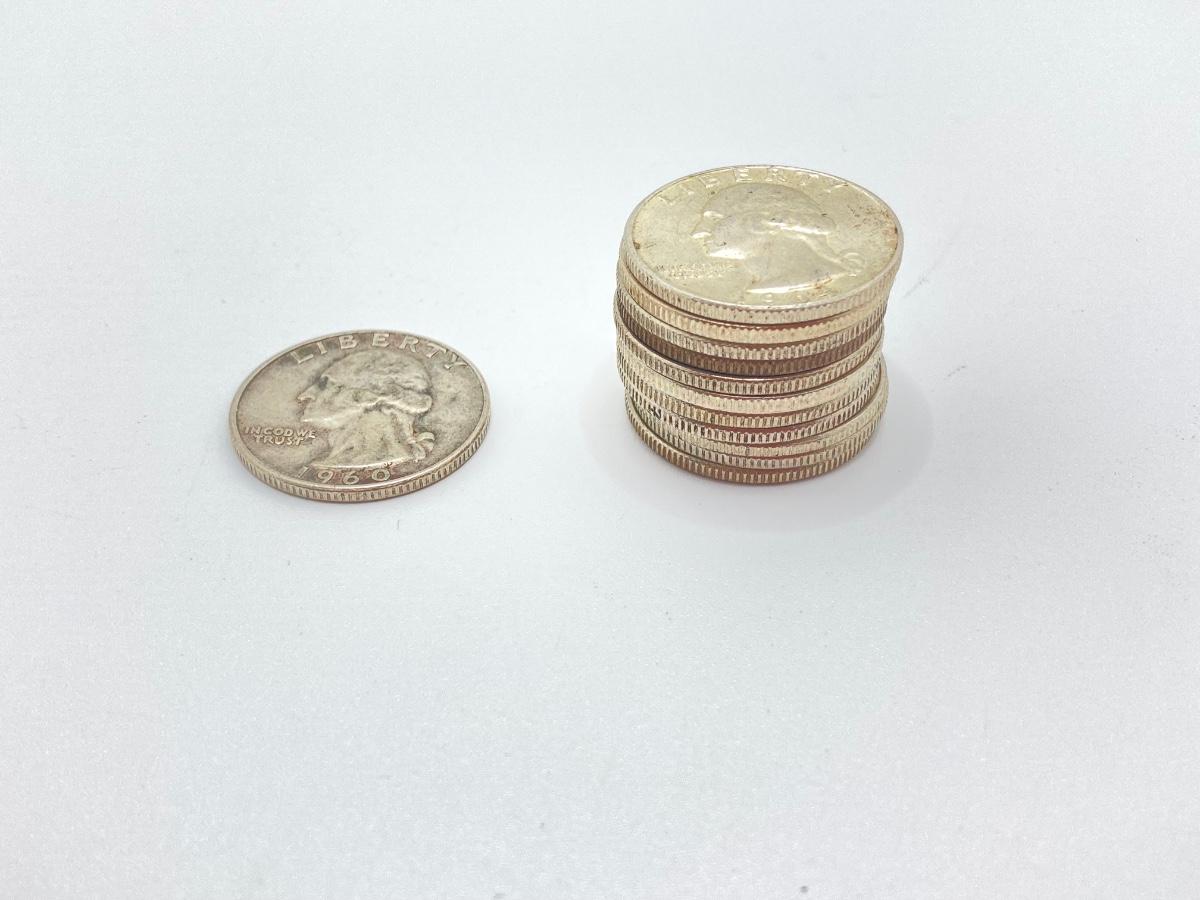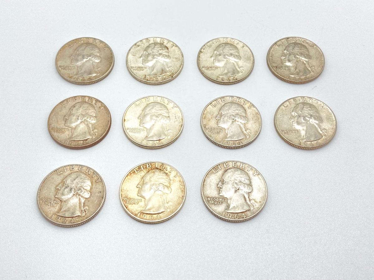 LOT 279j2: Twelve Silver US Washington Quarter Coins - 1960s