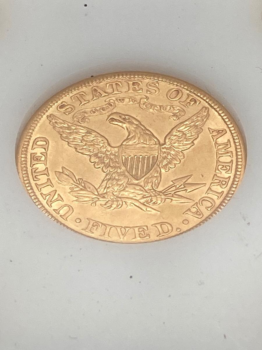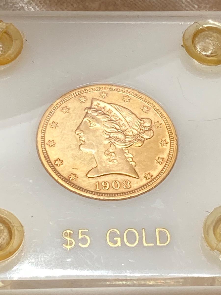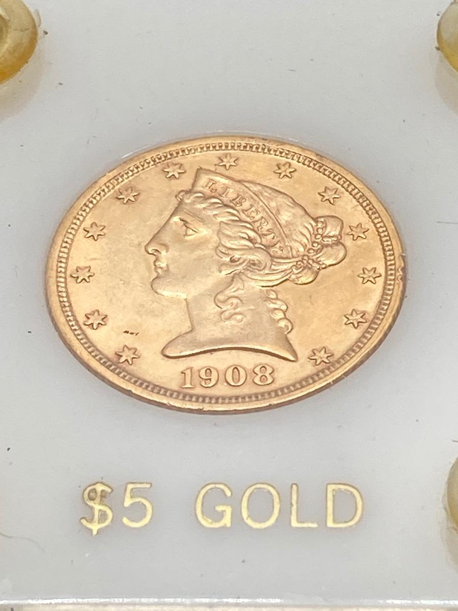 LOT 287j2: 1908 US Gold Liberty Head Coin $5