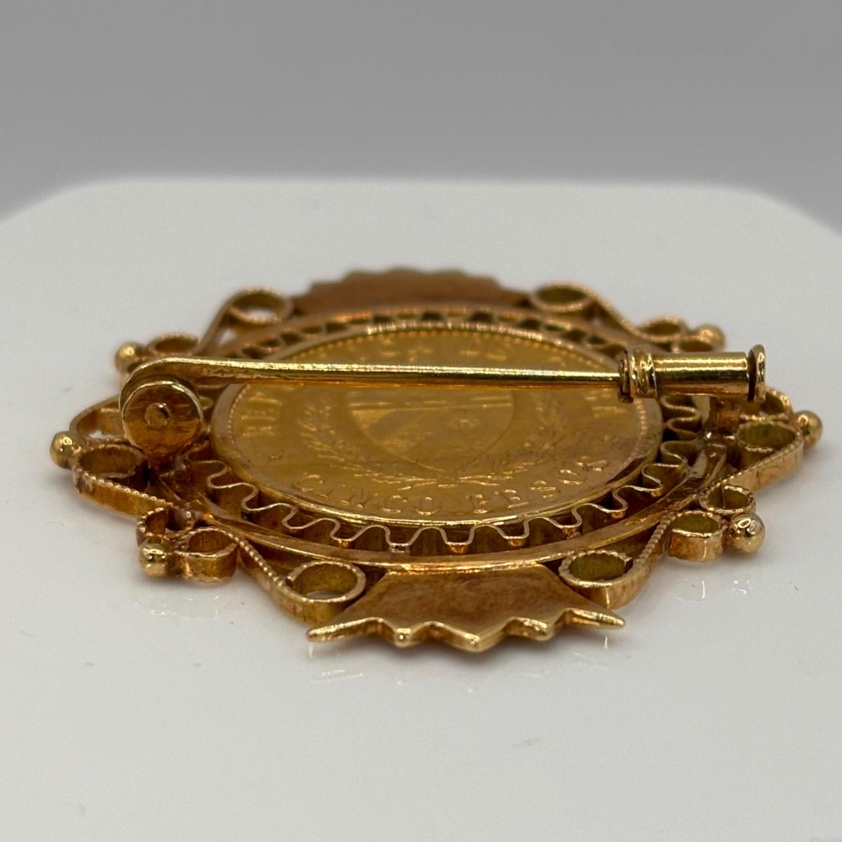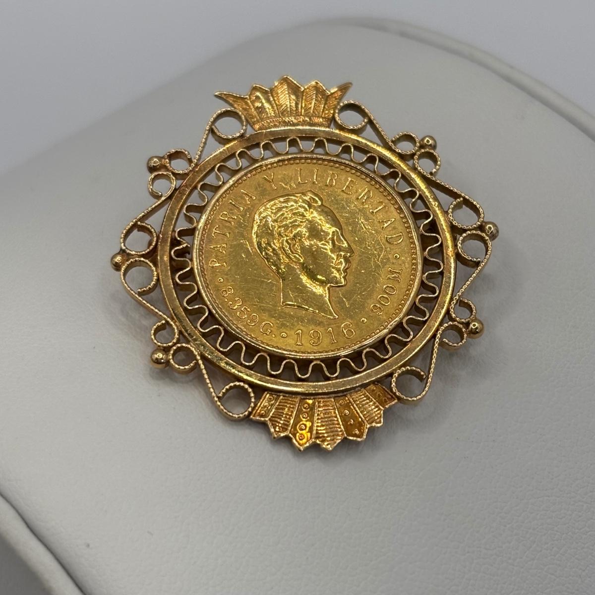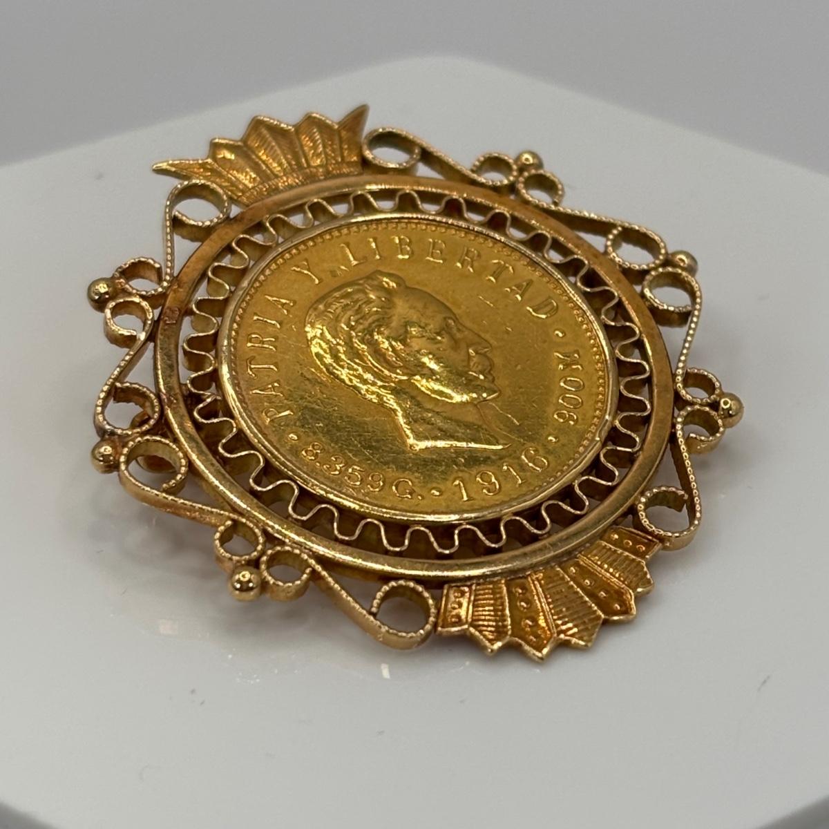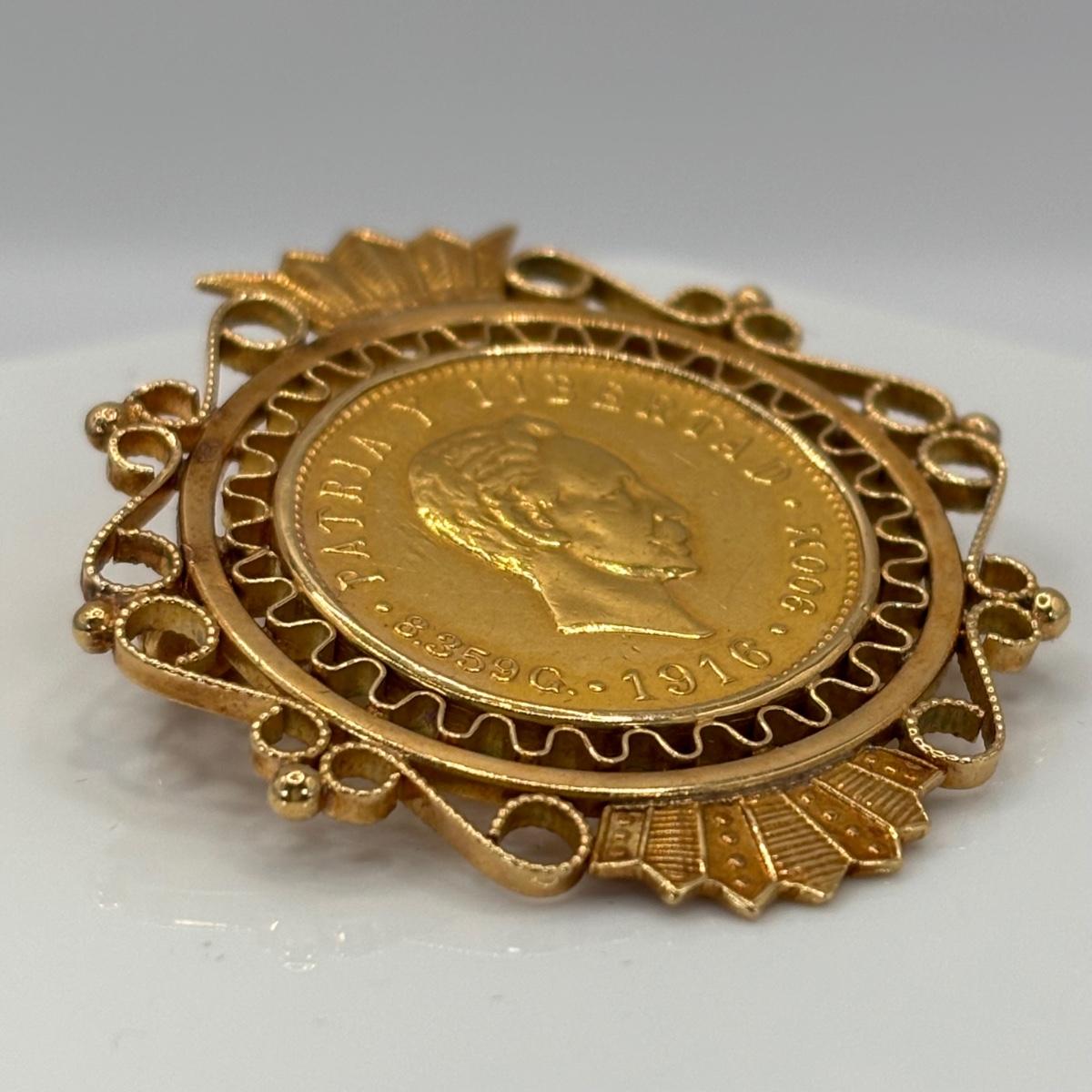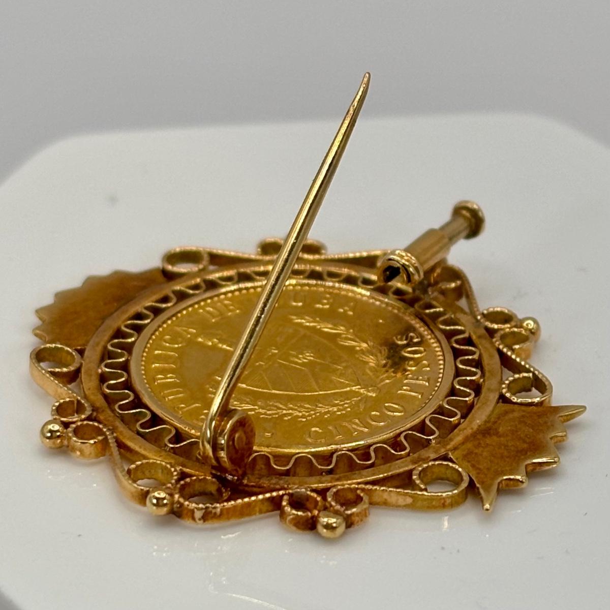 LOT 303: Antique 18 K Gold (Tested) 1916 Cuban 5 Peso Gold Coin Brooch with Trombone Clasp 15.3 g