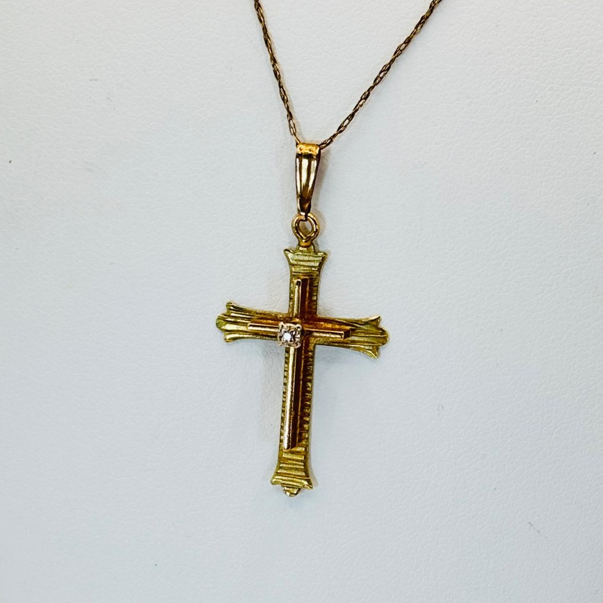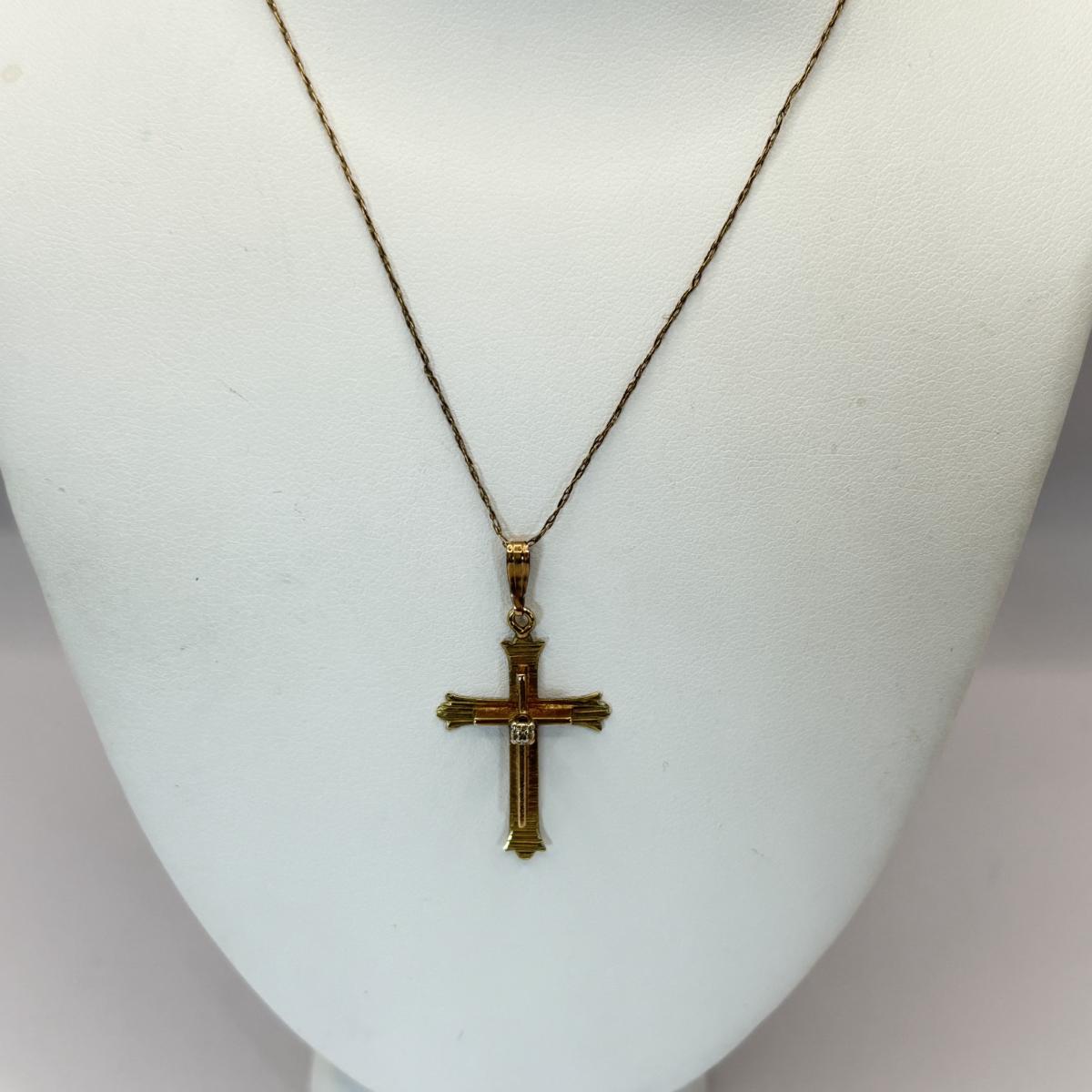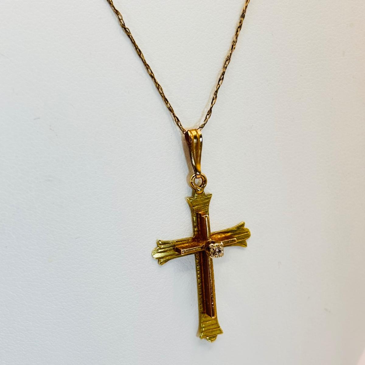 LOT 312: Vintage 14k Gold 22" Long Chain with Diamond Chip Cross Pendant 2.2 gtw