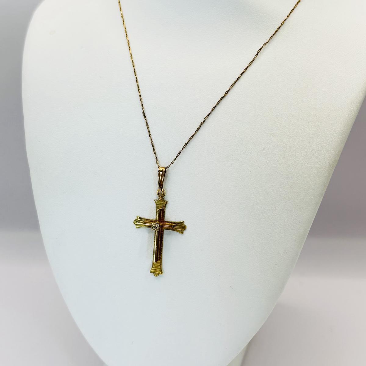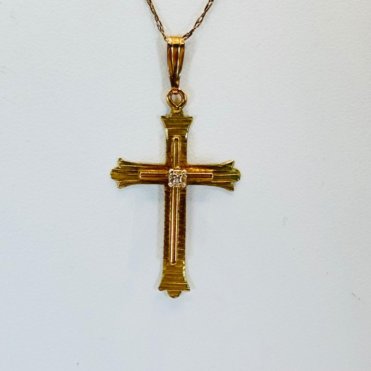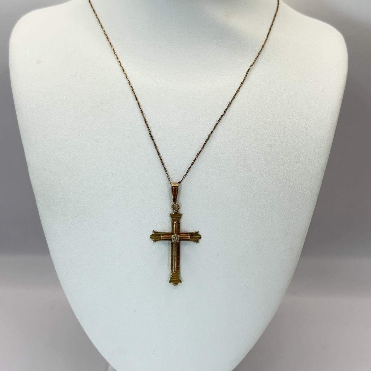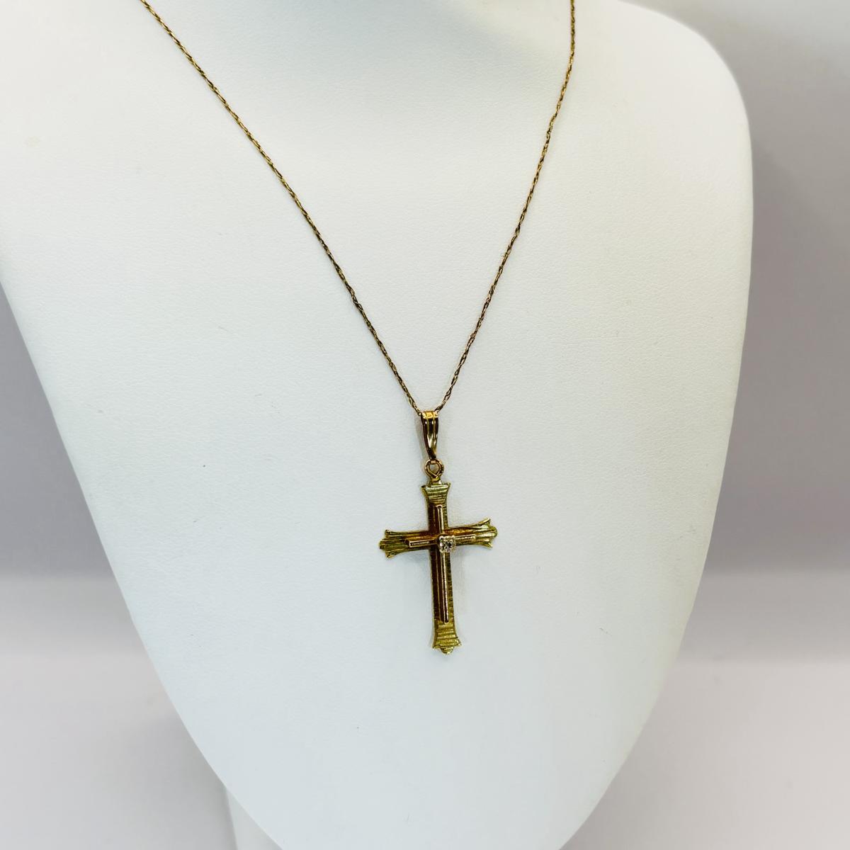 LOT 312: Vintage 14k Gold 22" Long Chain with Diamond Chip Cross Pendant 2.2 gtw