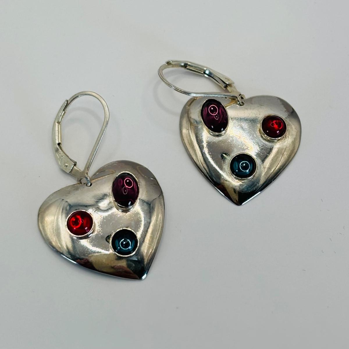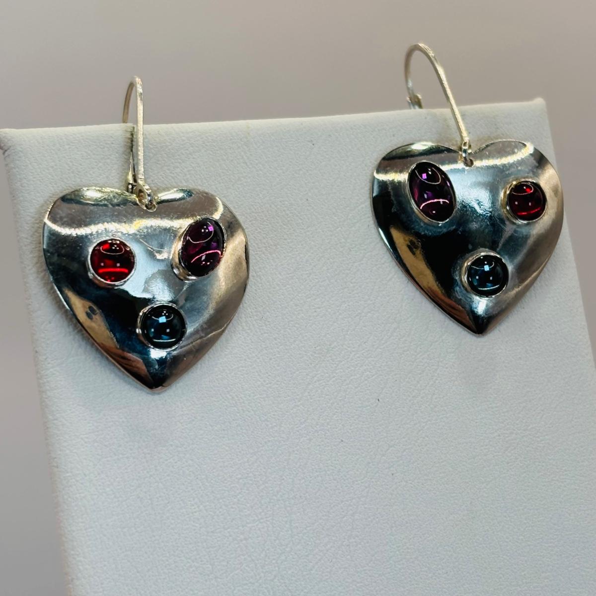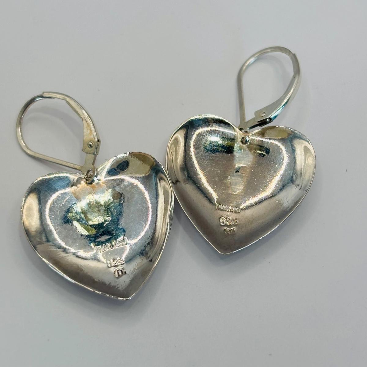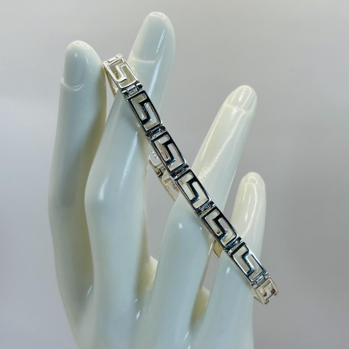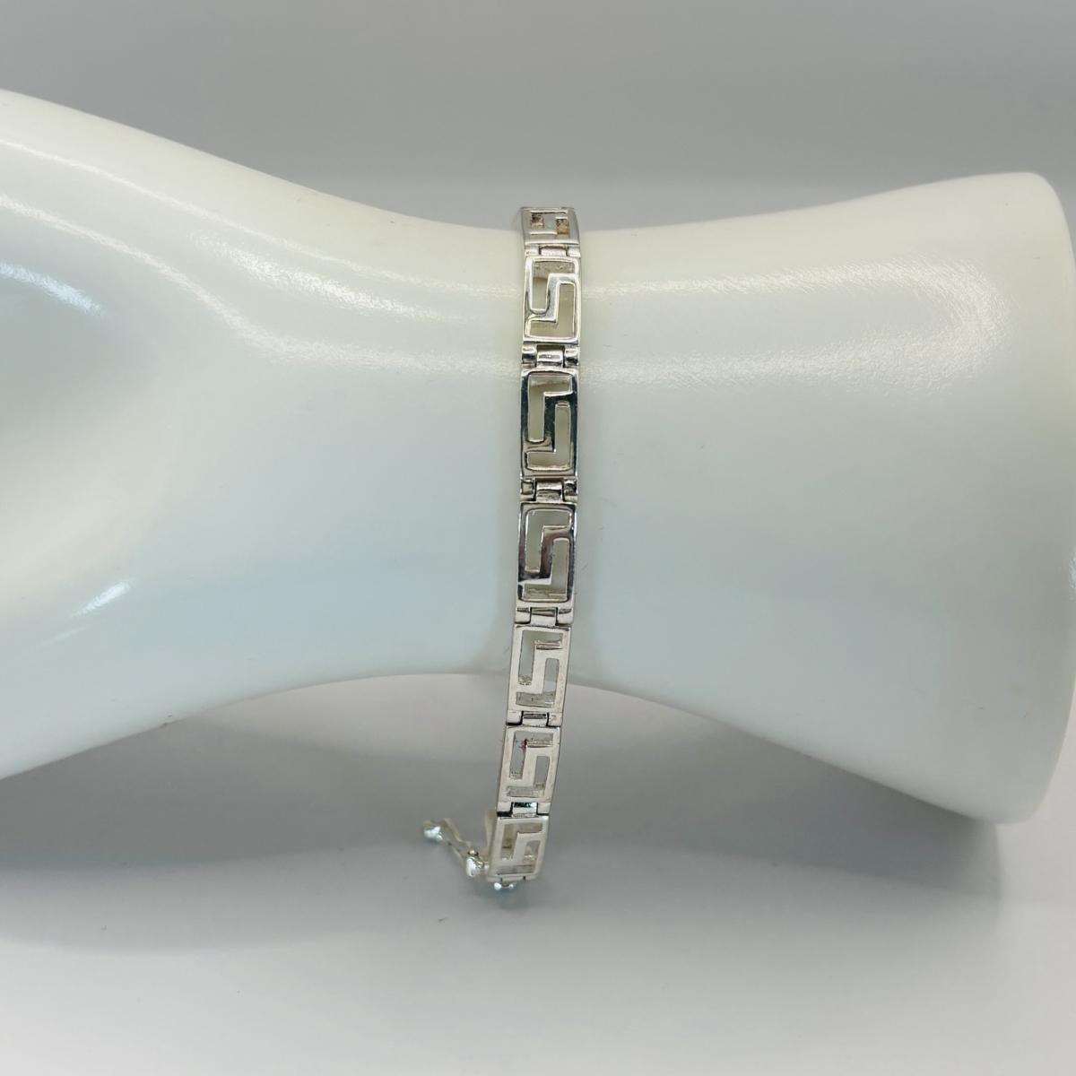 LOT 315: Sterling Silver 925 Pierced Heart Shaped Earrings with Gemstones and Sterling Silver 925 Greek Key Design Braclet with Saftey Clasp 7" Long and 13.1 G