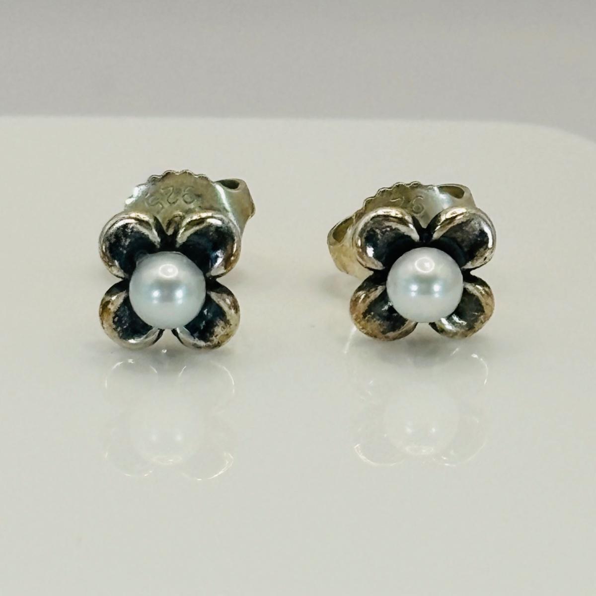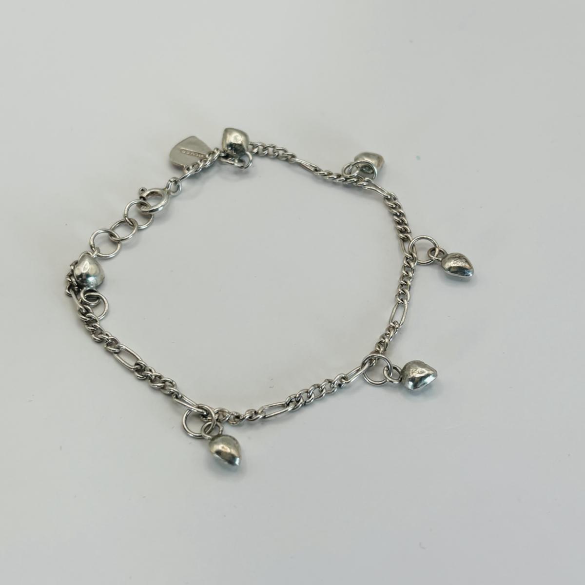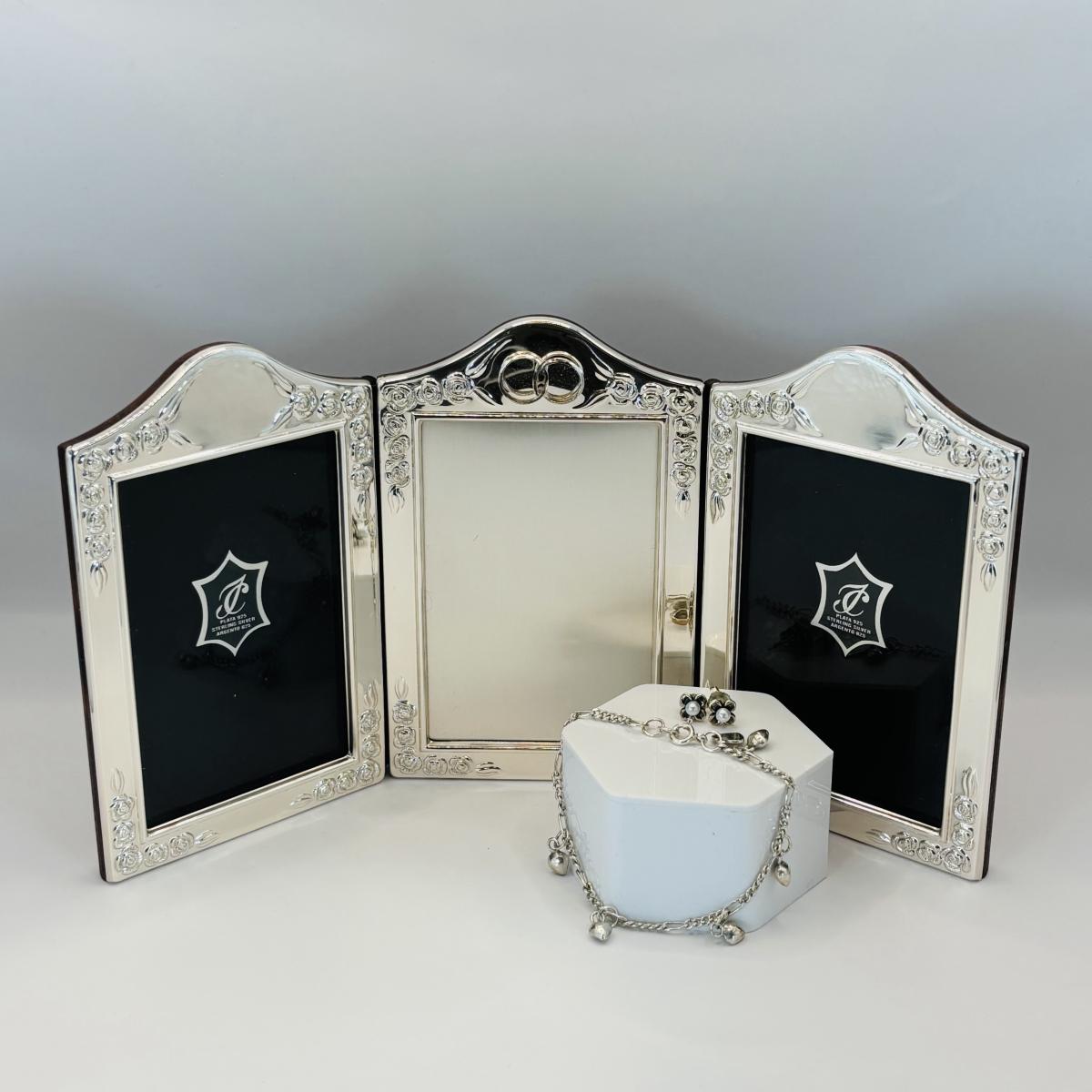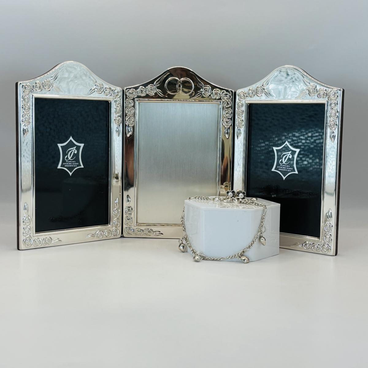 LOT 316: Sterling Silver 925 Heart Charm Bracelet 7" Long, James Avery Sterling Silver Pearl Flower Pierced Earrings and Sterling Silver 925 Wedding Picture Frame