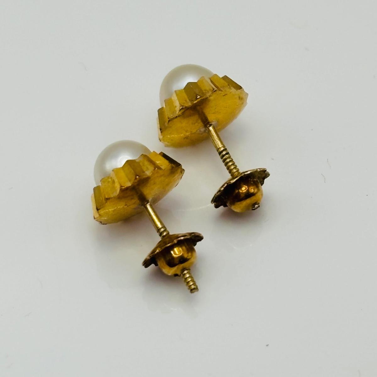 LOT 321: Vintage Cultured Pearl with 18K Gold Pierced Post Earrings with Screw Backs 1.4 gtw