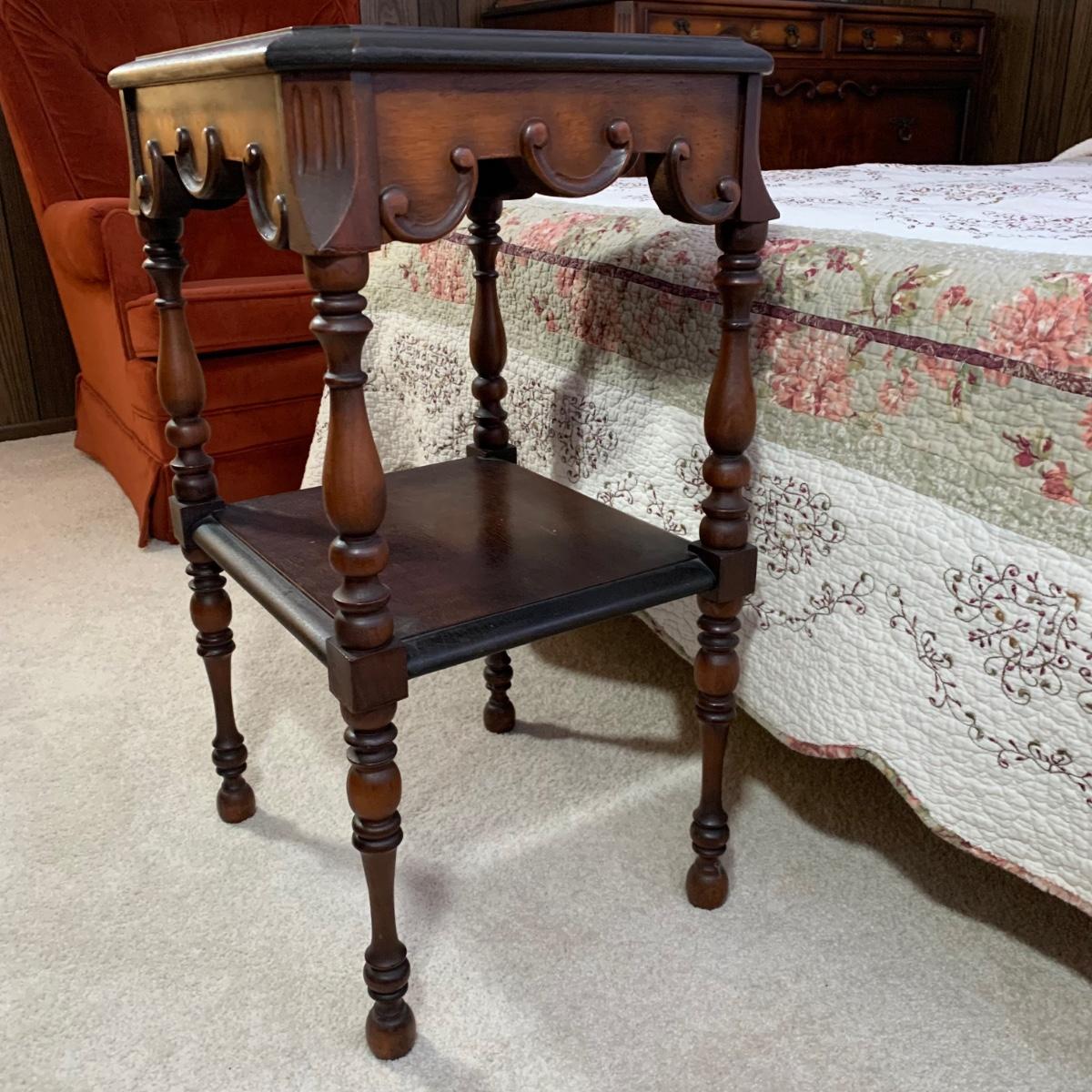 LOT 4 B: Vintage French 2 Tier Side Table & Matching Headboard