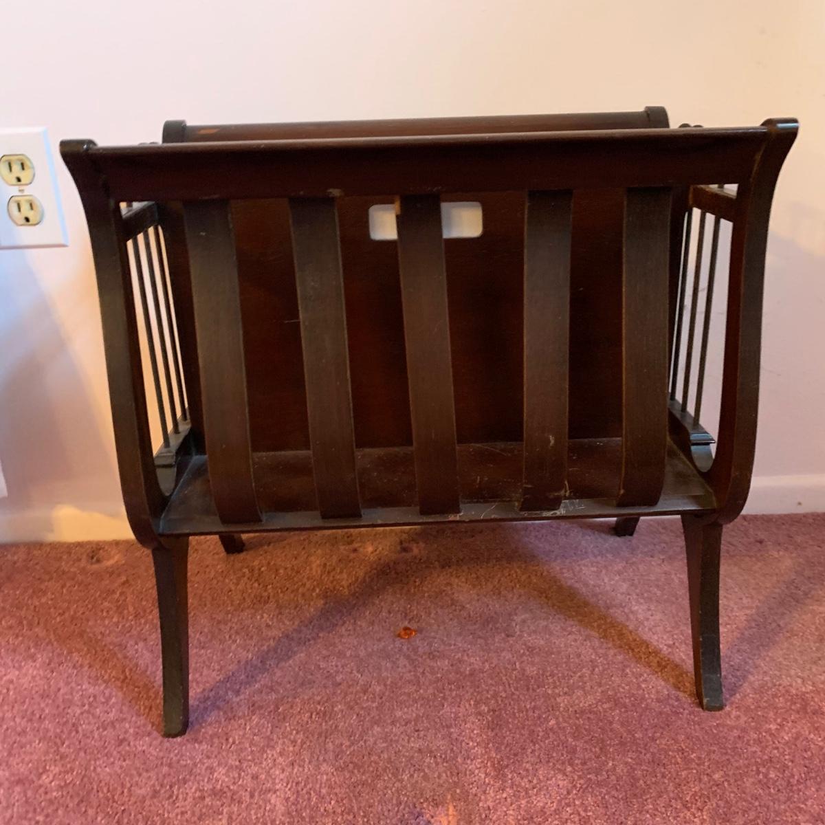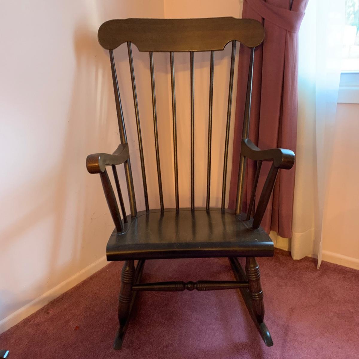 LOT 40 L: Vintage Rocking Chair & J.B. Van Sciver Co. Harp Shaped Magazine Rack