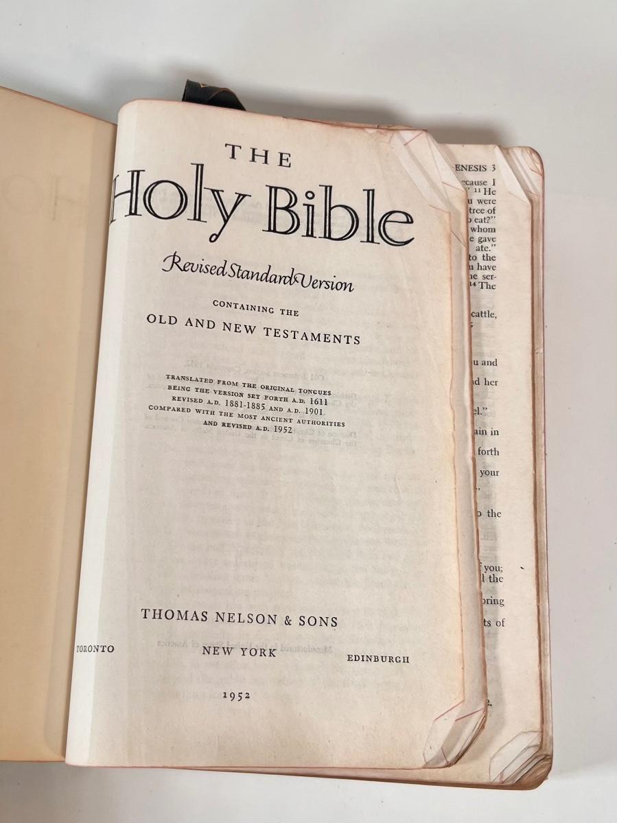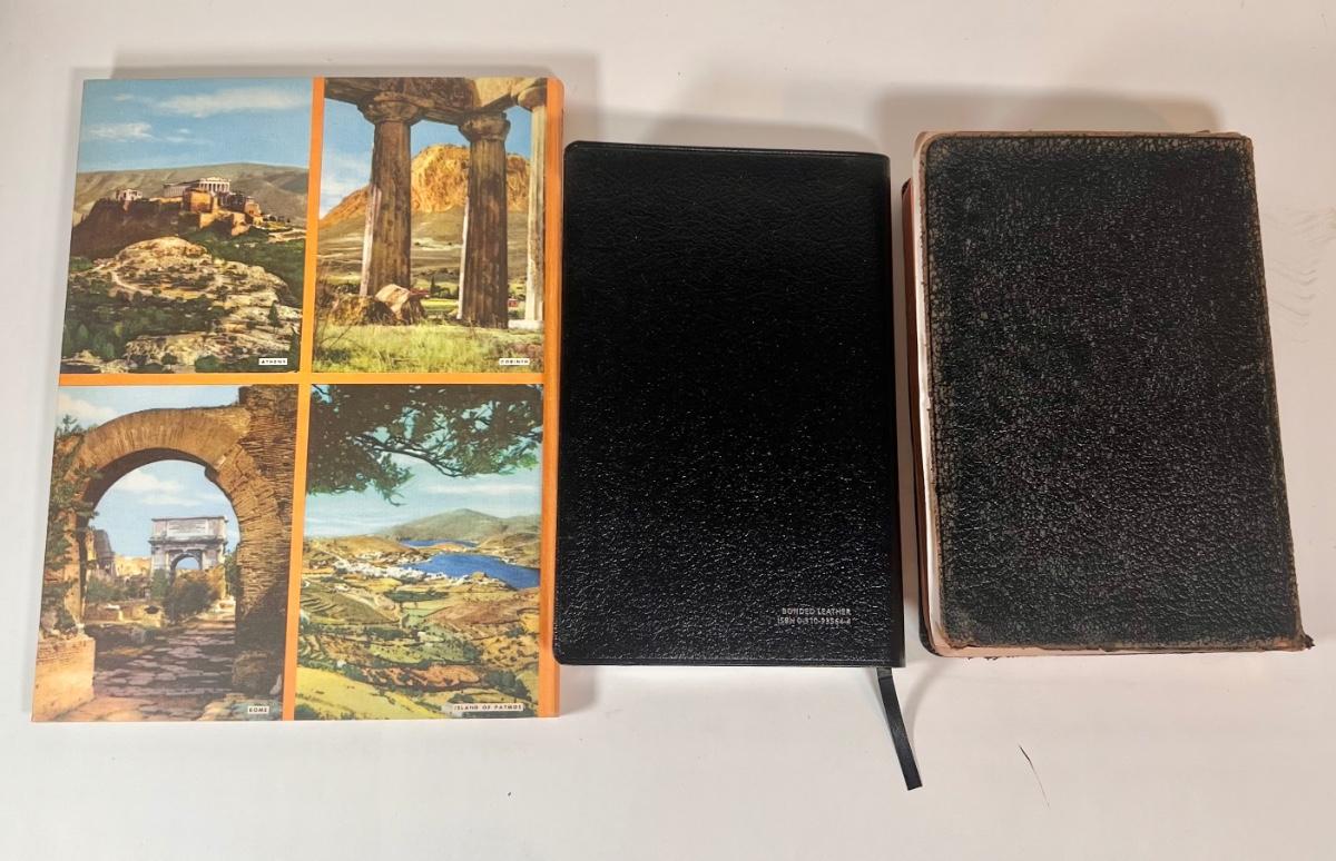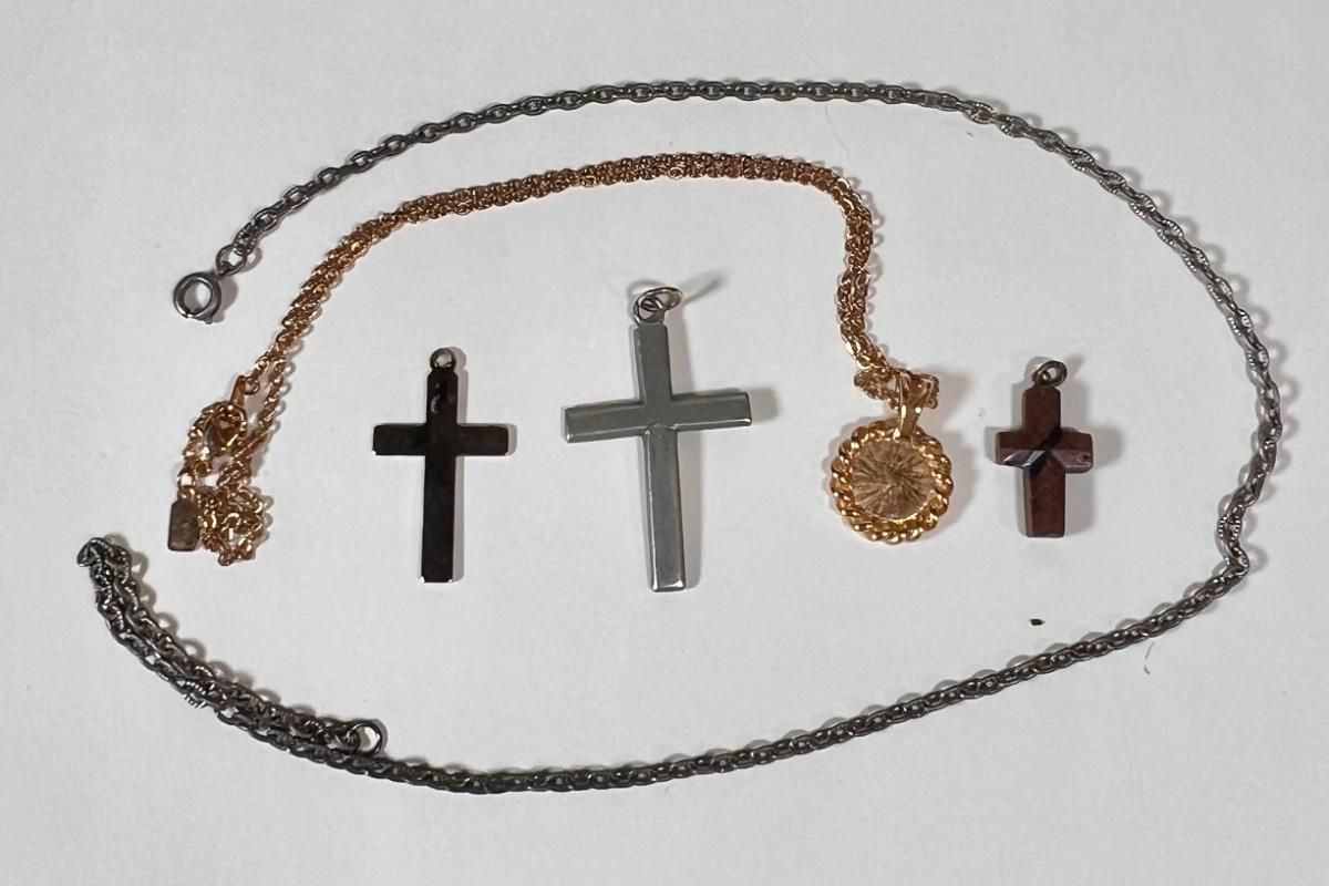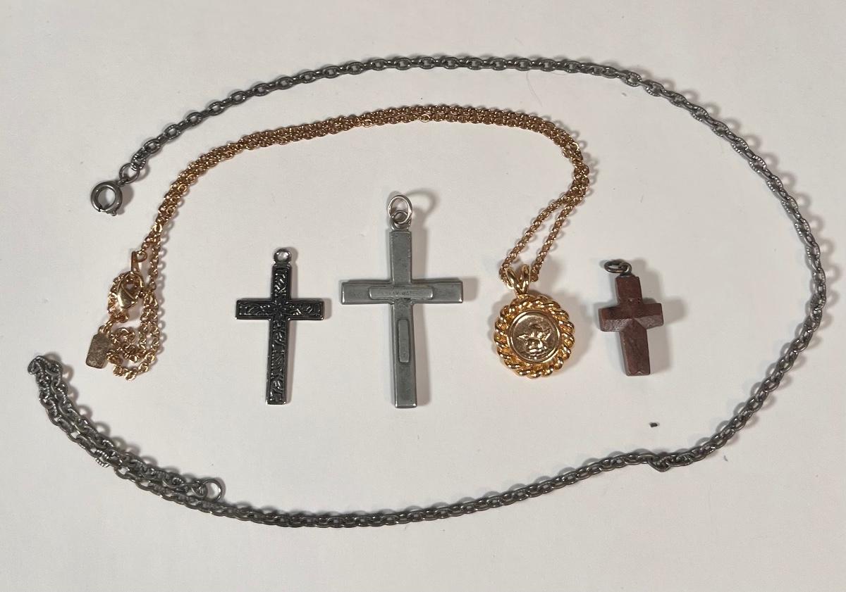 LOT 75L: 2001 Growth Corporate Pair Crosses, Lutheran Wood & Metal Cross, Yellow Prayer Cross, Small Cross Pendants, The Book of Mormon, & Various Editions of The Holy Bible