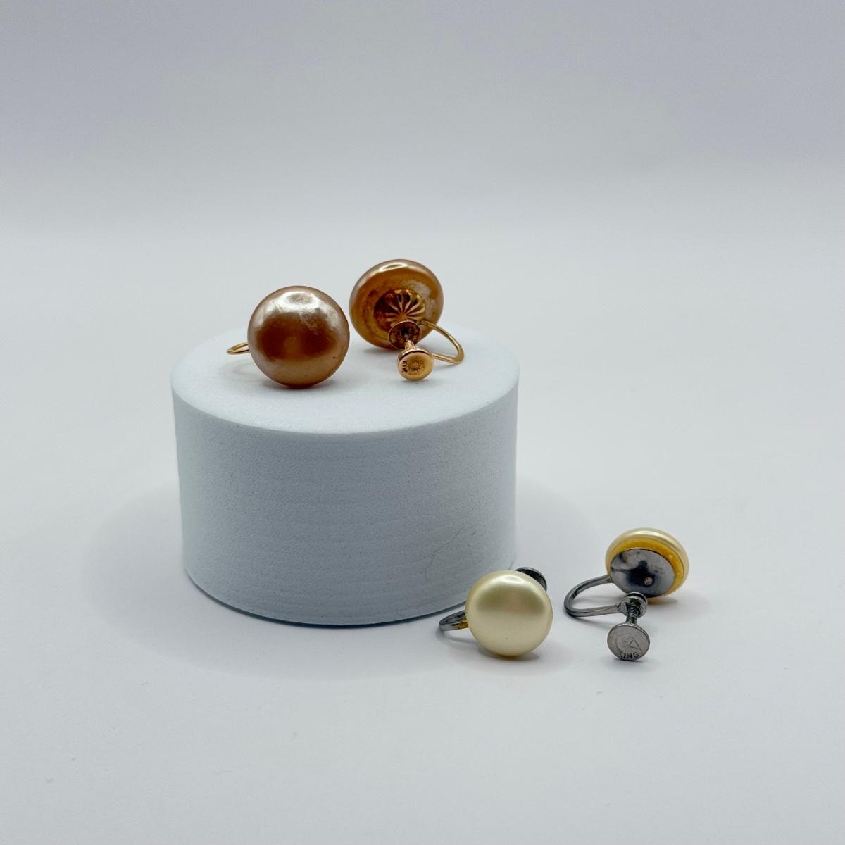 LOT 83J: Vintage Screwback Earrings - 10k Gold (5.1g) & Sterling Silver (3.2g)