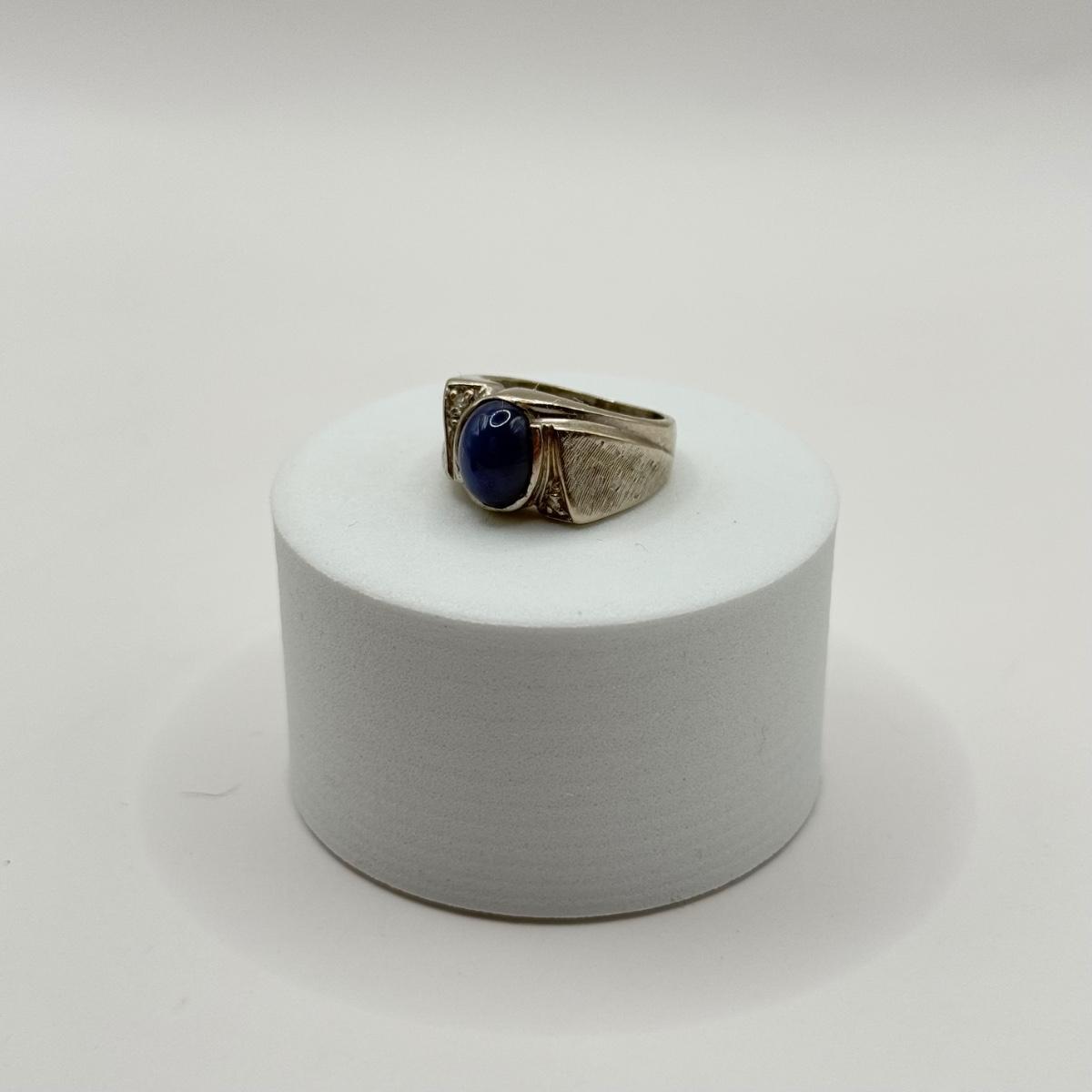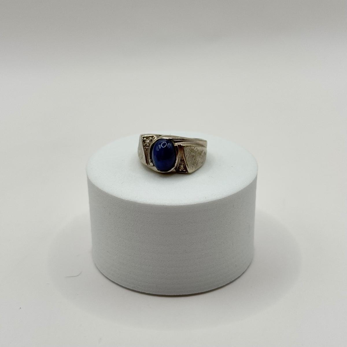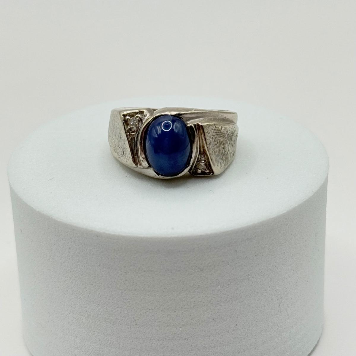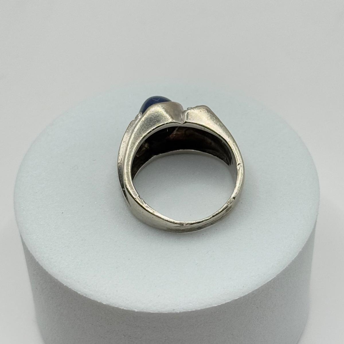 LOT 87J: 14k White Gold Ring w/ Blue Stone Size 5 (6.8g)