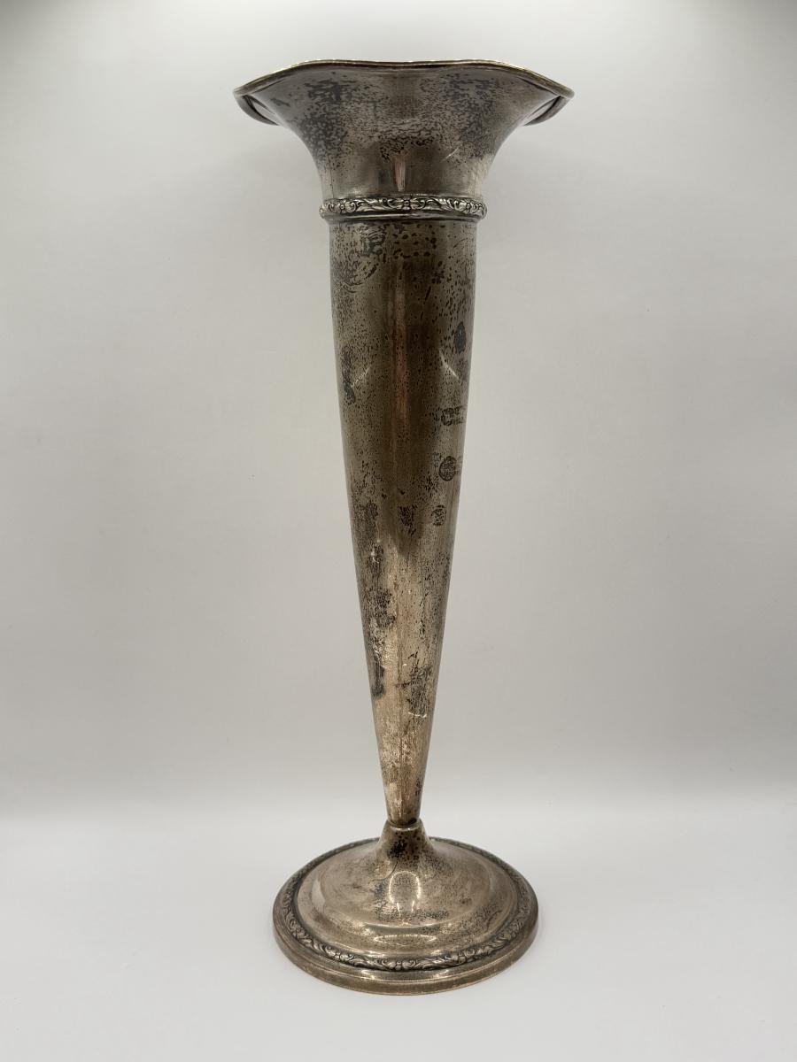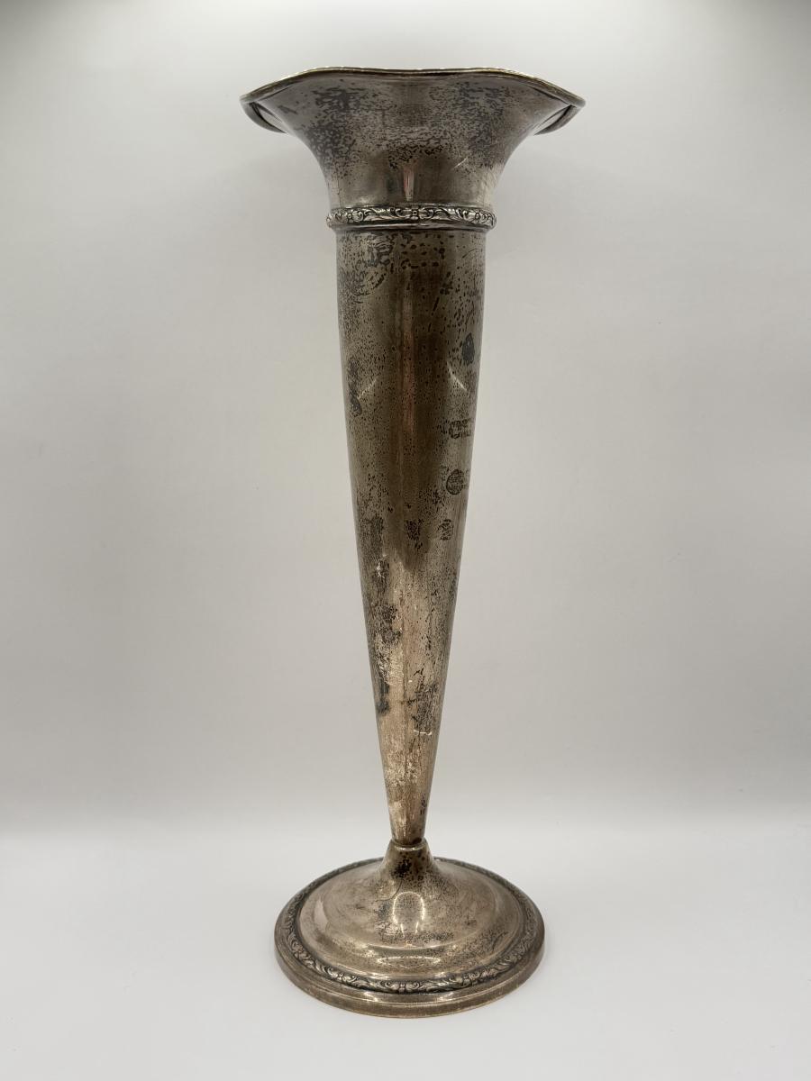LOT 121K: Vintage Sterling Silver Cement Loaded Vase 672, 121N