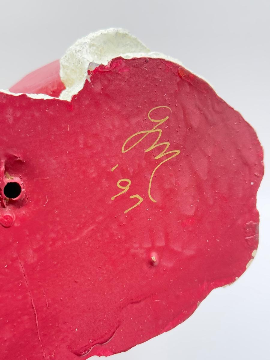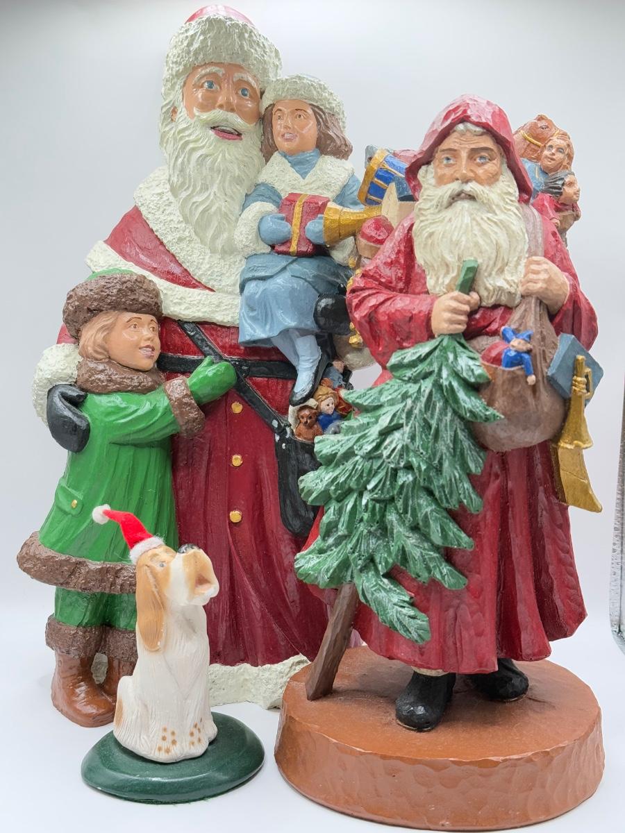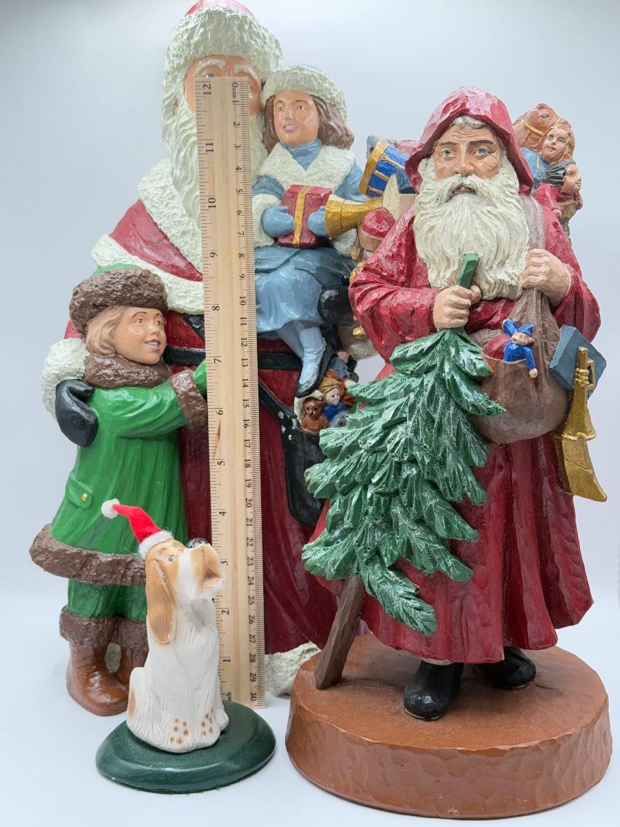 LOT 124K: 1995 Byer’s Choice The Carolers Dog w/ Santa Hat & 1990s Signed Hand Painted Santa Figures
