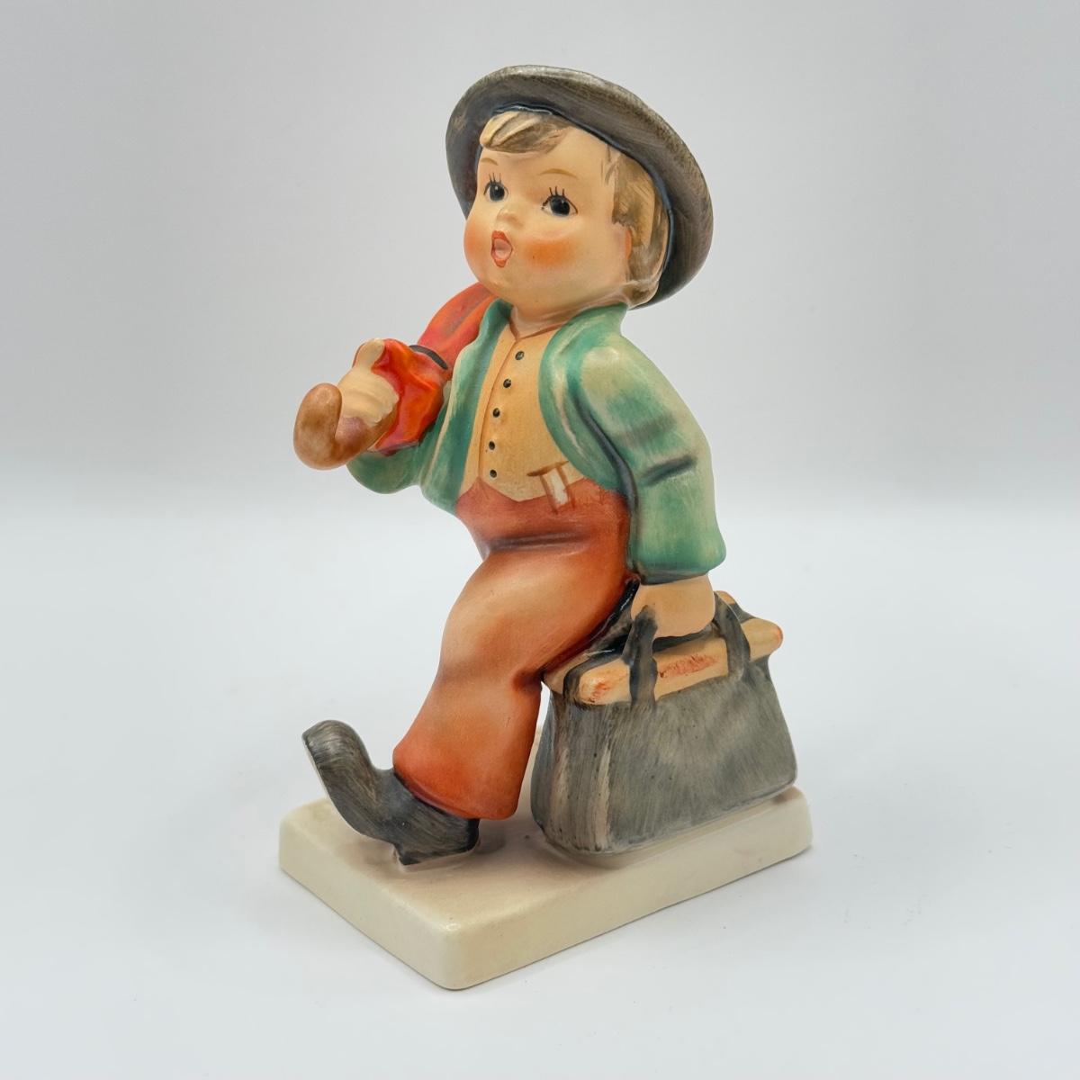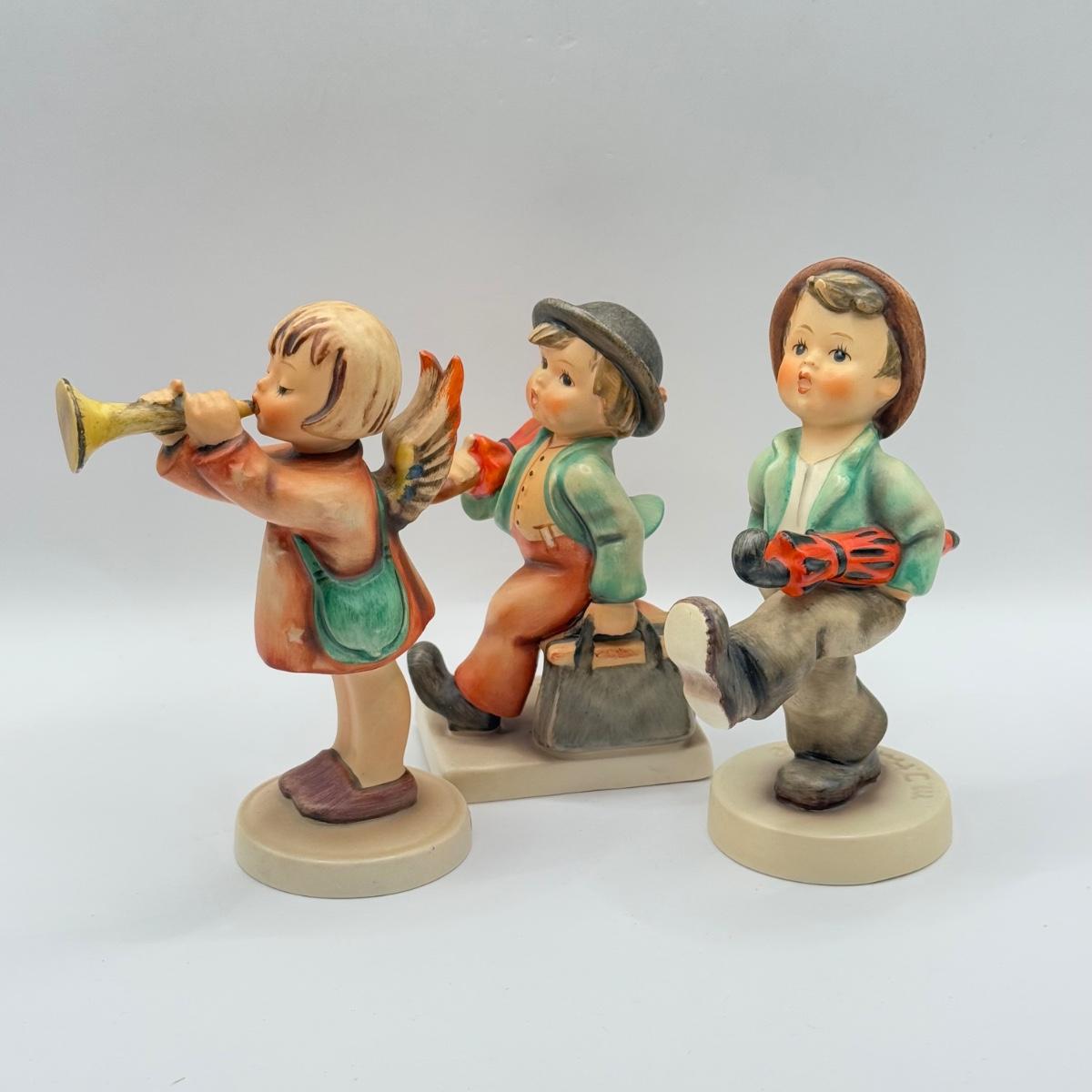 LOT 136K: Vintage Goebel MI Hummel Porcelain Figurines - "Little Gabriel" 32/0, "Happy Traveler" 109/0 & "Merry Wanderer" 11/0