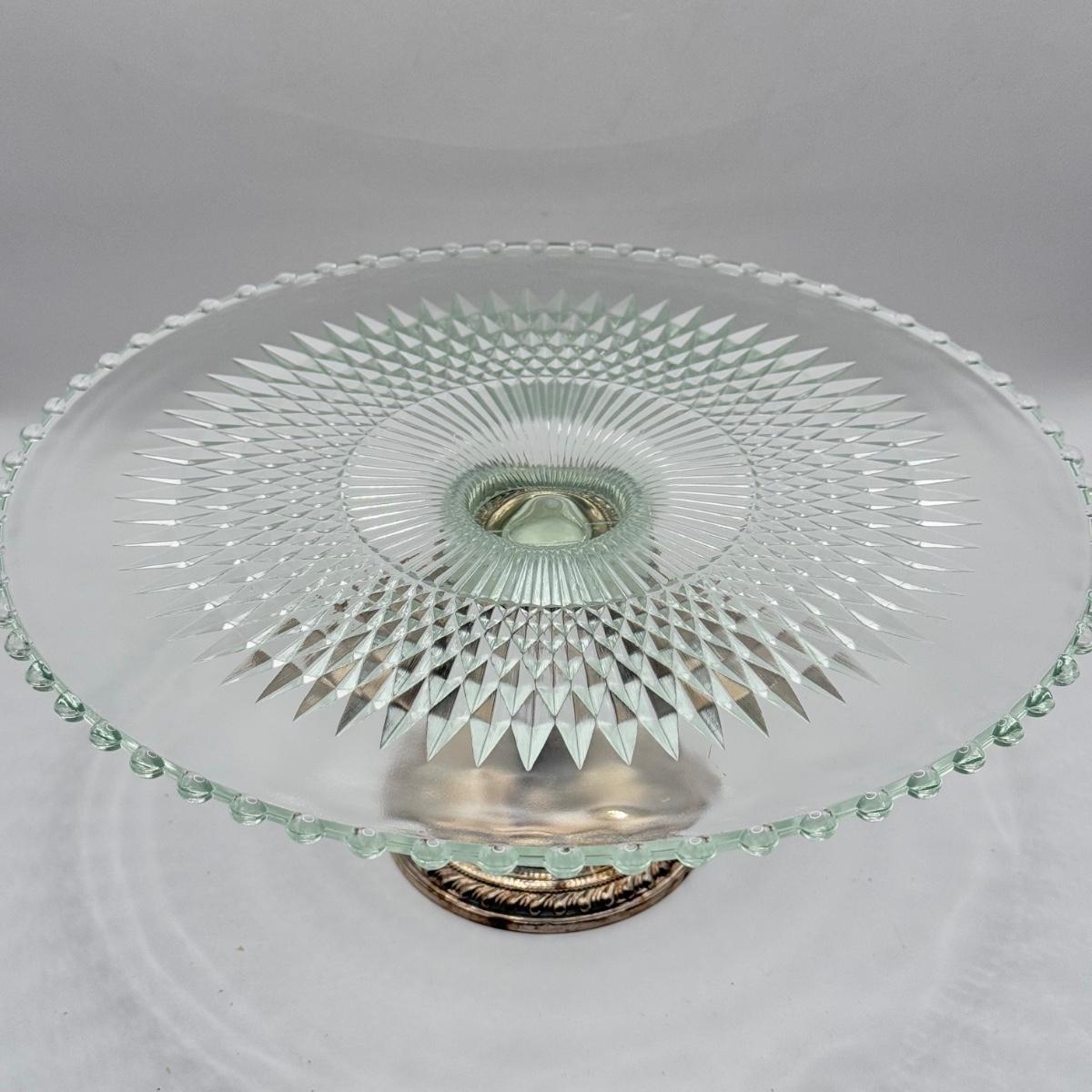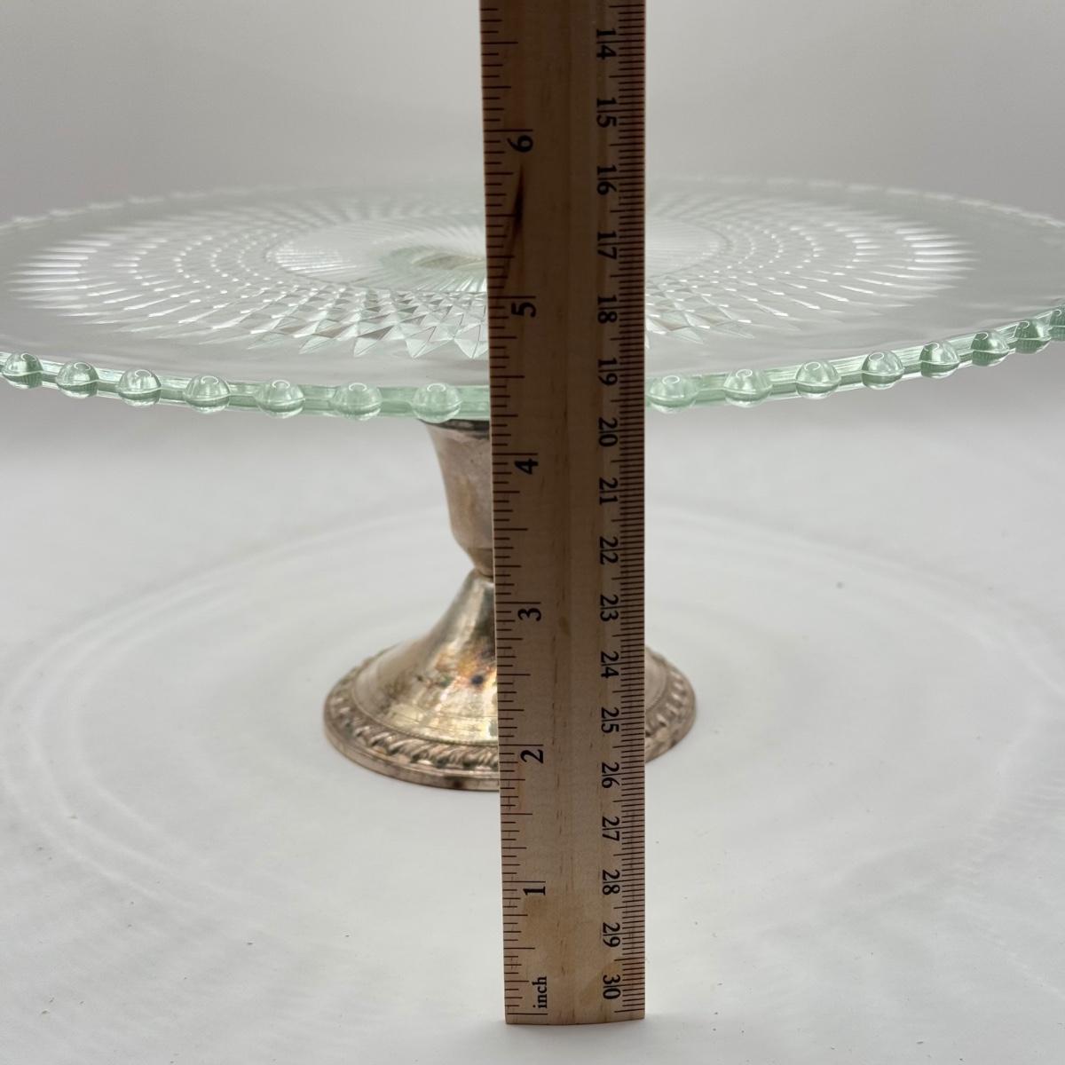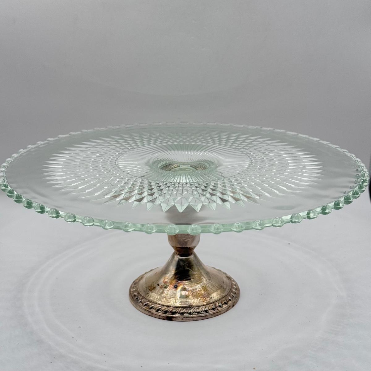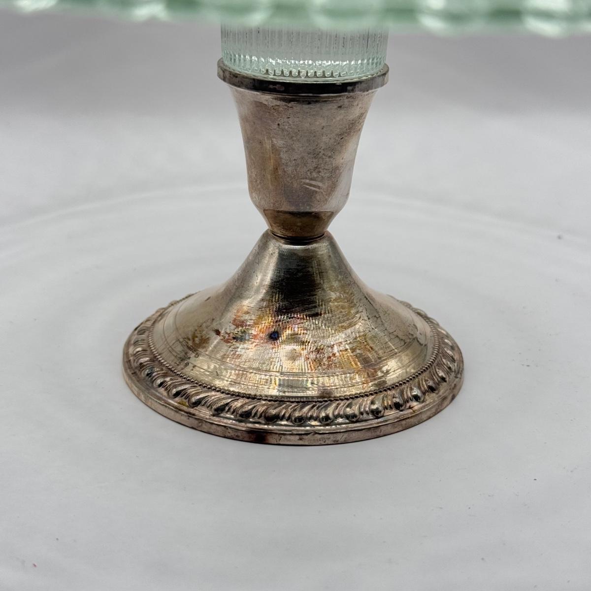 LOT 149K: Duchin Creation Glass Cake Plate w/ Weighted Sterling Silver Base