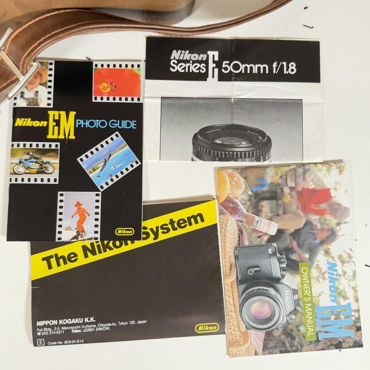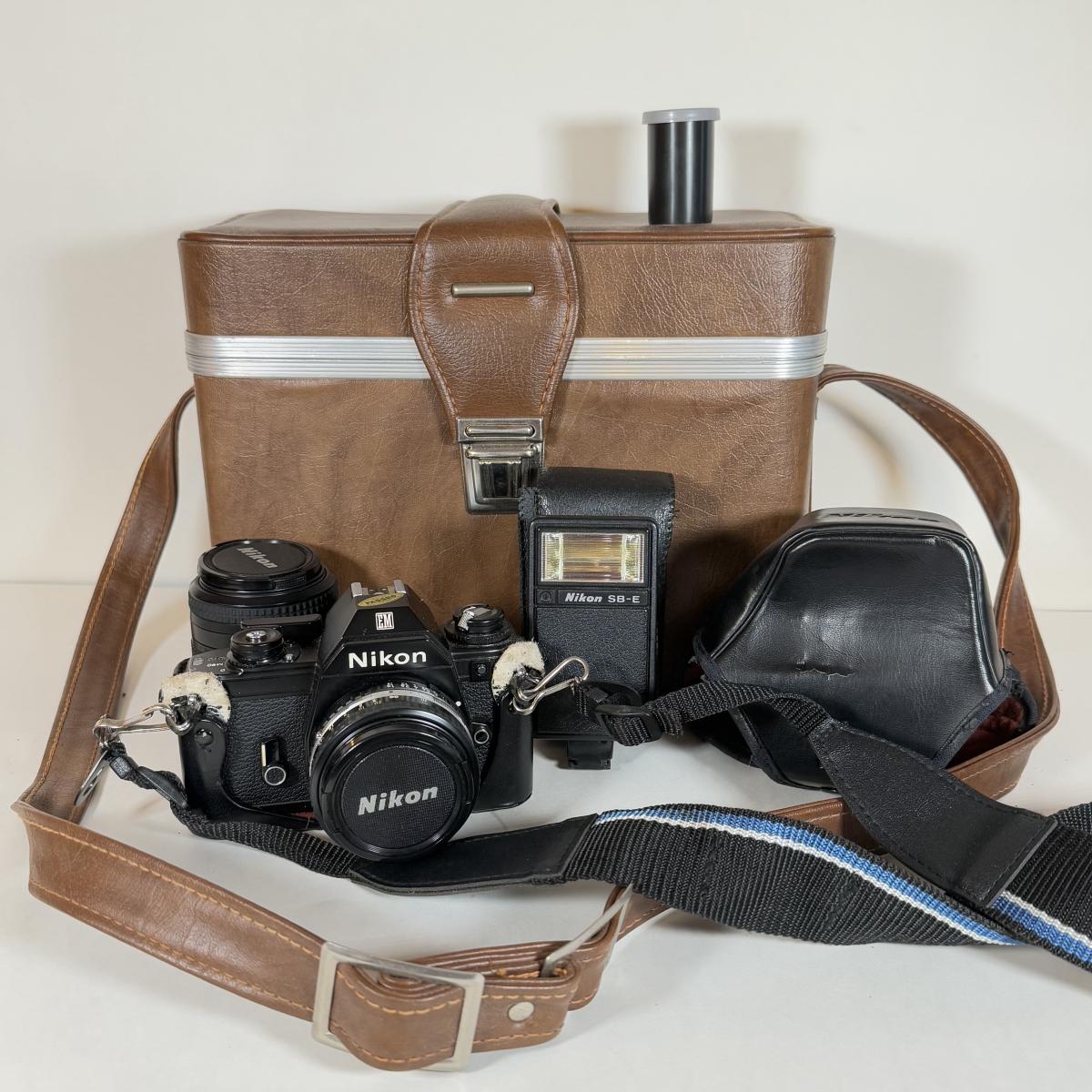 LOT 158B: Nikon EM 35mm Film Camera w/ Flash SB-E, Bag, Lens & Paperwork
