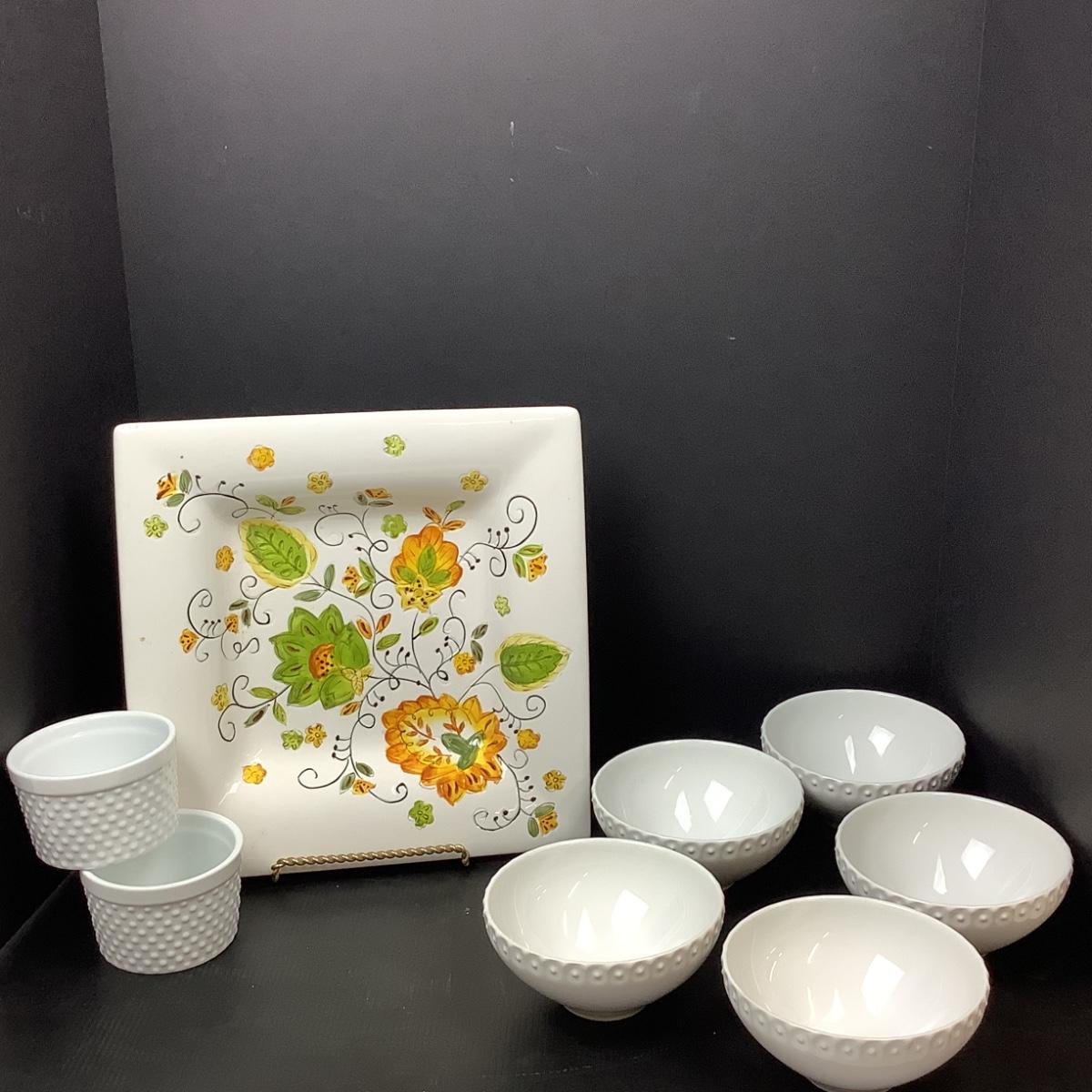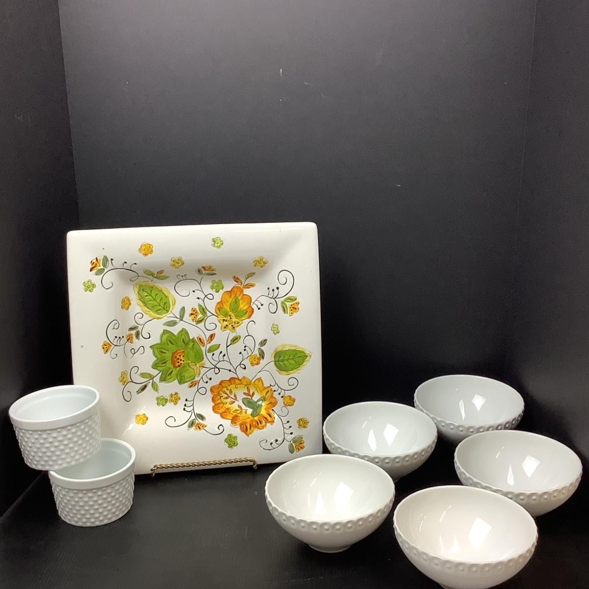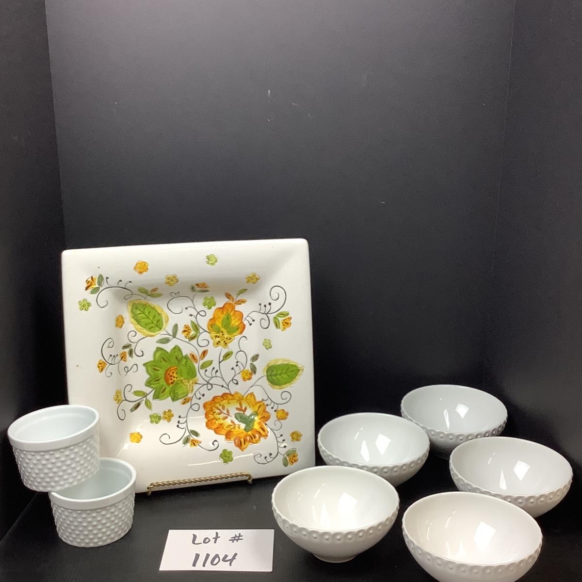Lot # 1104. Decorative Square Plate & Beautiful White Bowls
