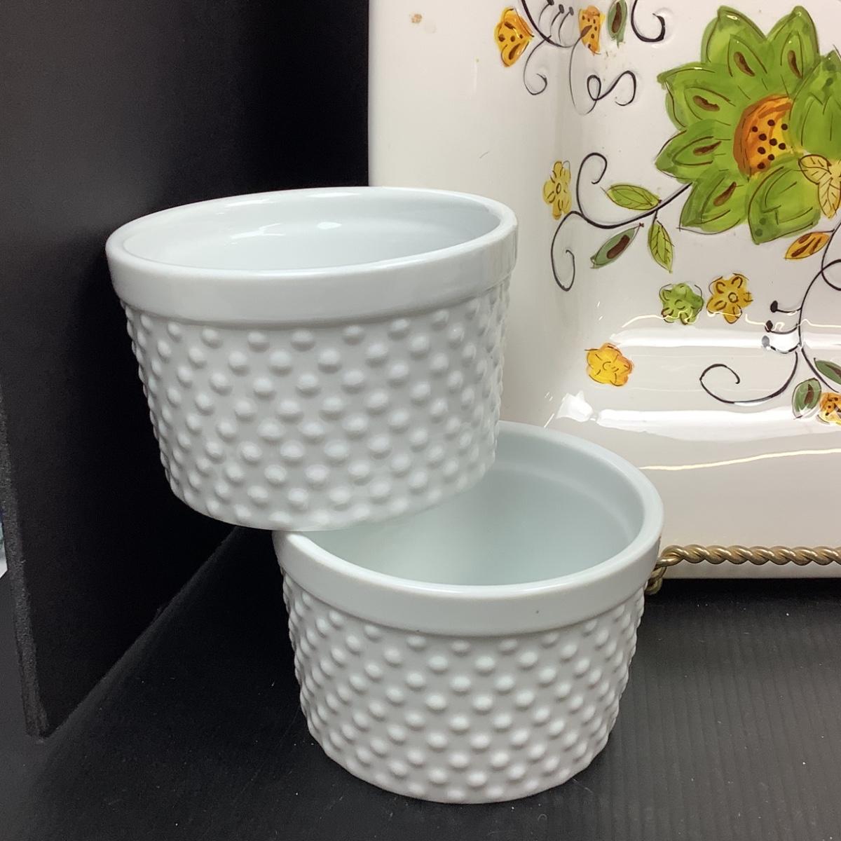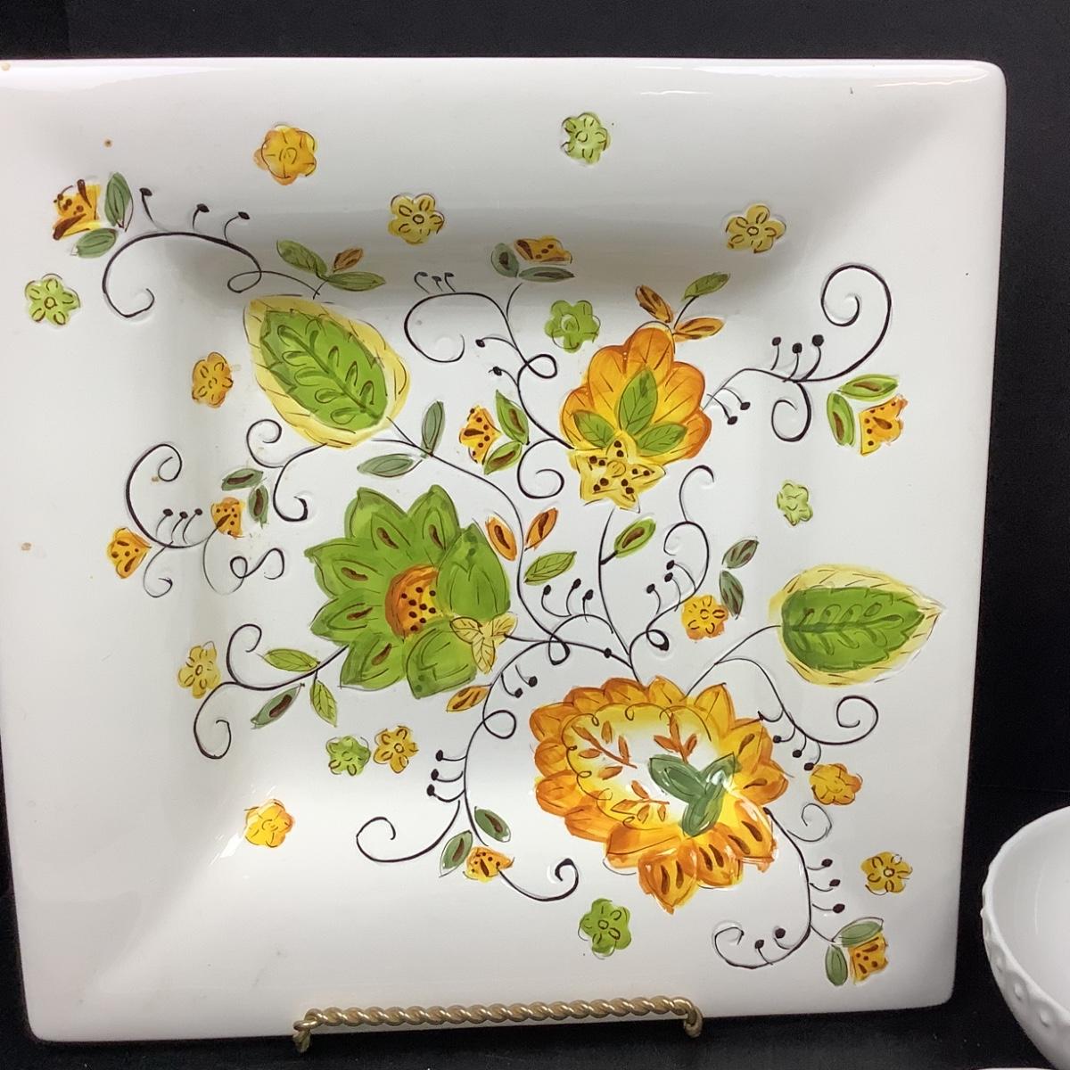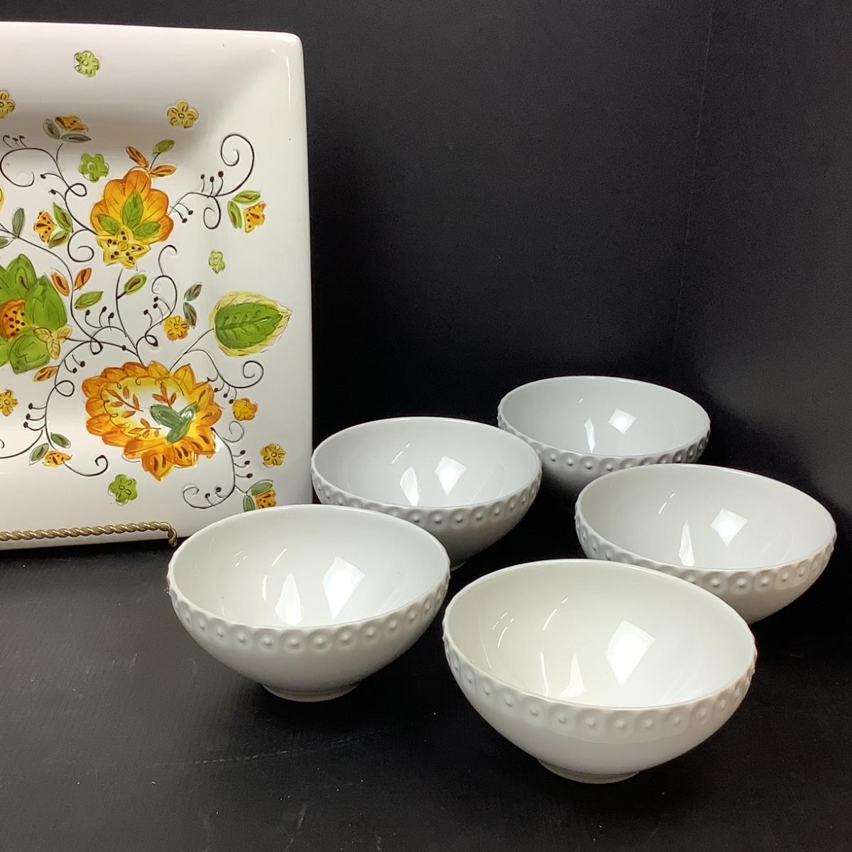 Lot # 1104. Decorative Square Plate & Beautiful White Bowls