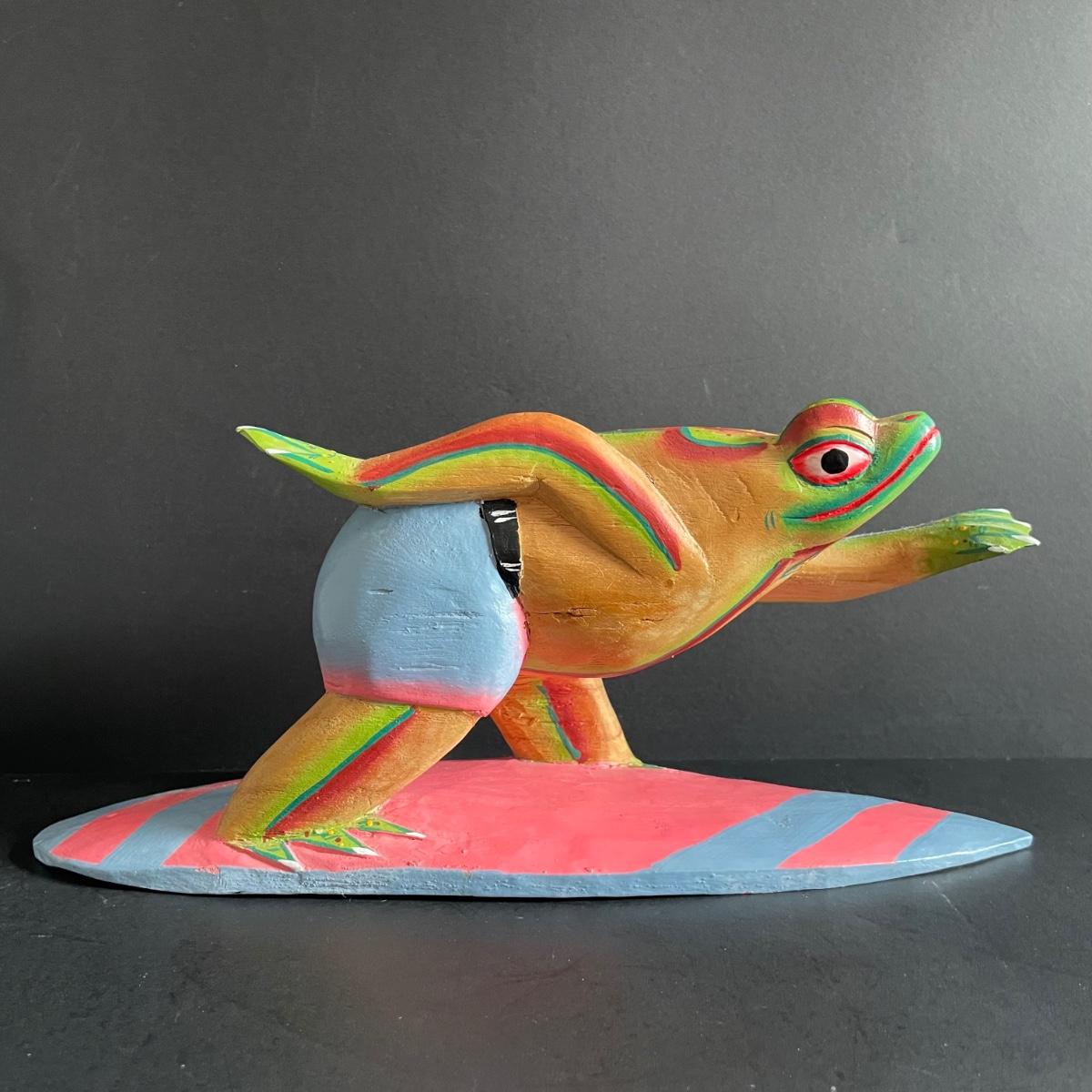 LOT:22 Colorful Collection of Hand Carved Tropical Beach Scenes and Two (2) Vibrant Hand Painted Folk Art Masks