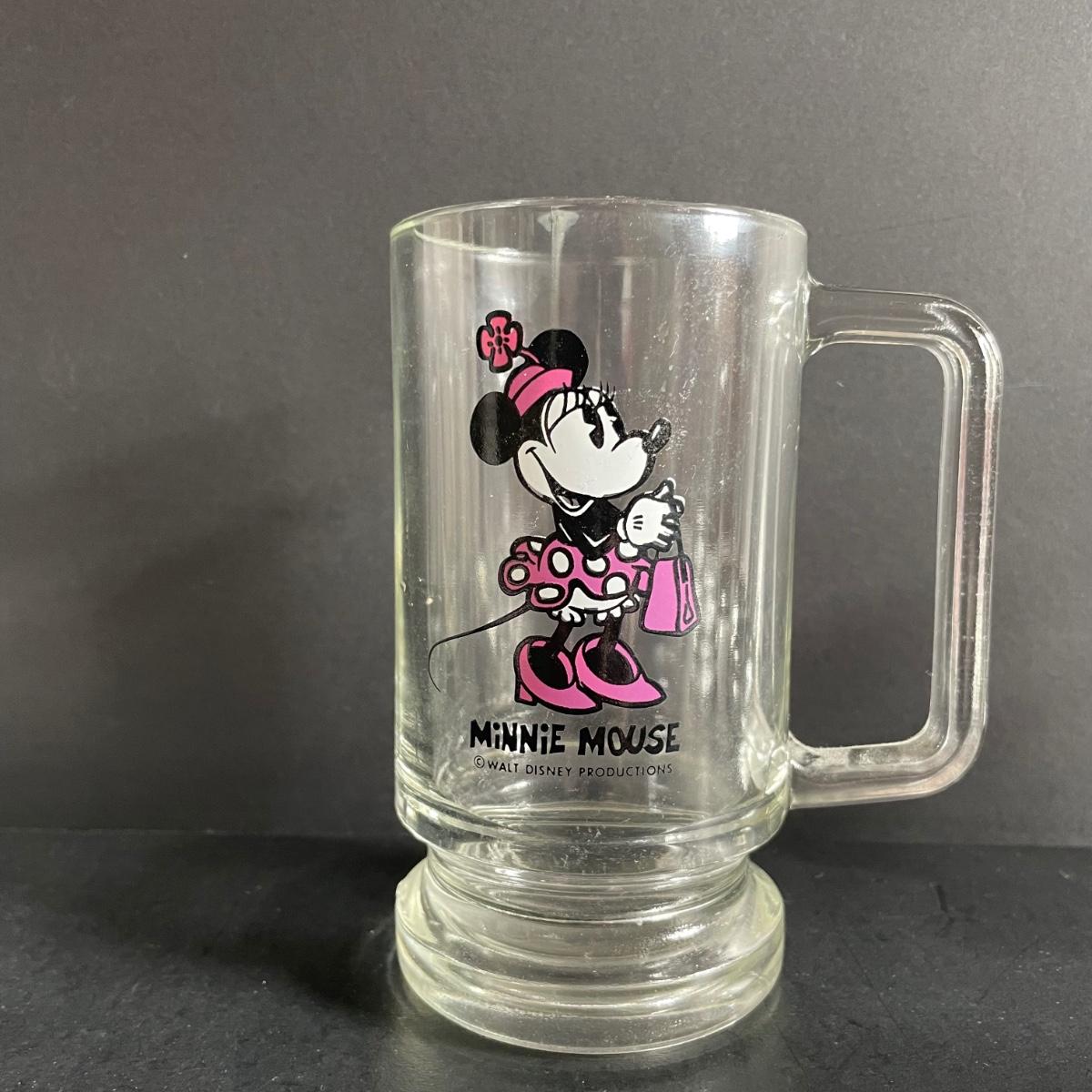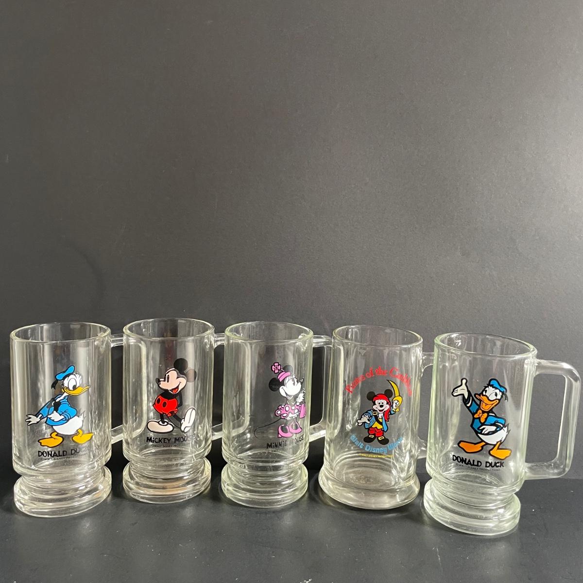 LOT 24: Winnie the Pooh & Piglet Souvenir Mugs (4.5”H), and Five (5) Vintage Glass Mugs of Assorted Disney Characters by Walt Disney Productions