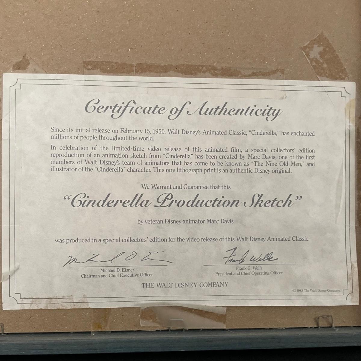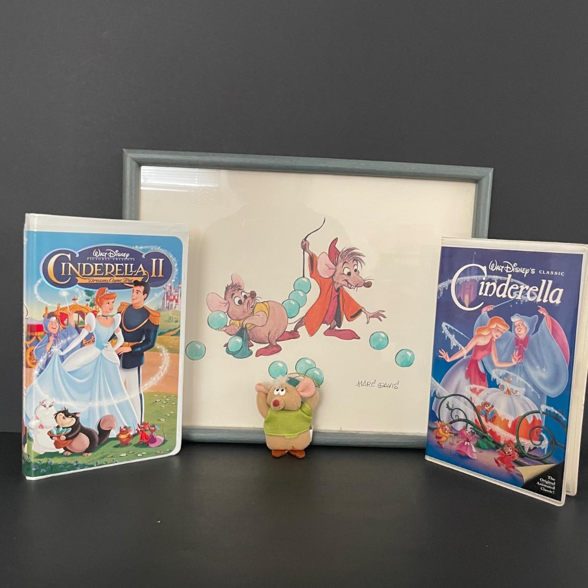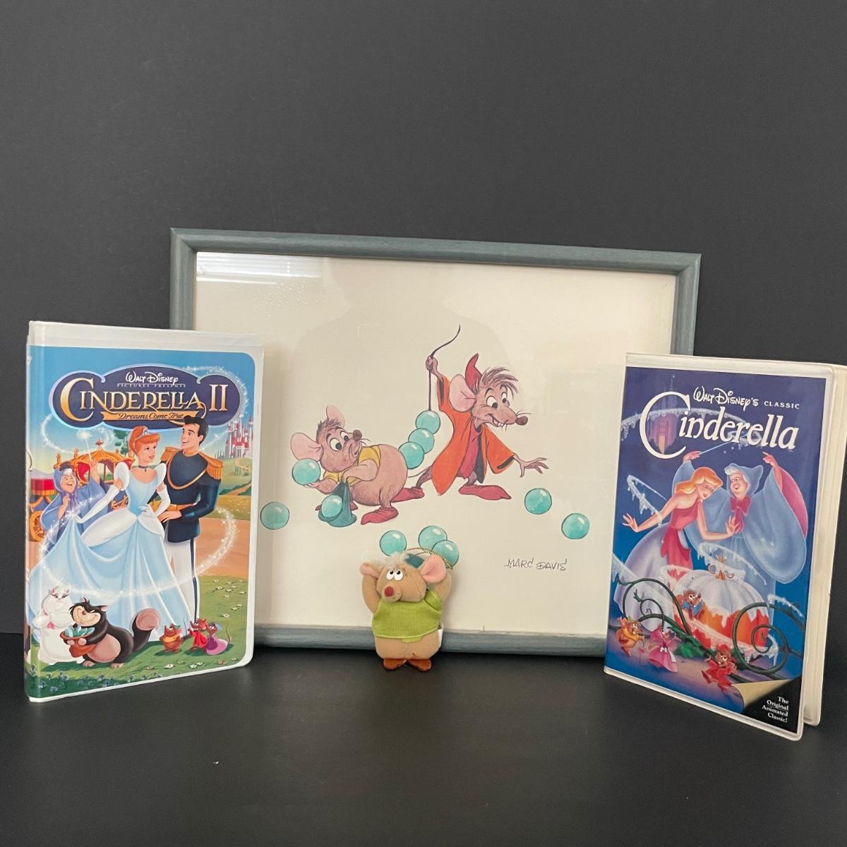 LOT 25: Vintage Cinderella and Cinderella II VHS Tapes with a Collector’s Edition Reproduction of an Animation Sketch from Cinderella (12” x 15”)