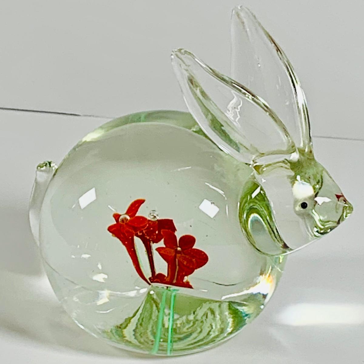 LOT 29: Art Glass Animal Paperweights, Dog, Rabbit and Bird