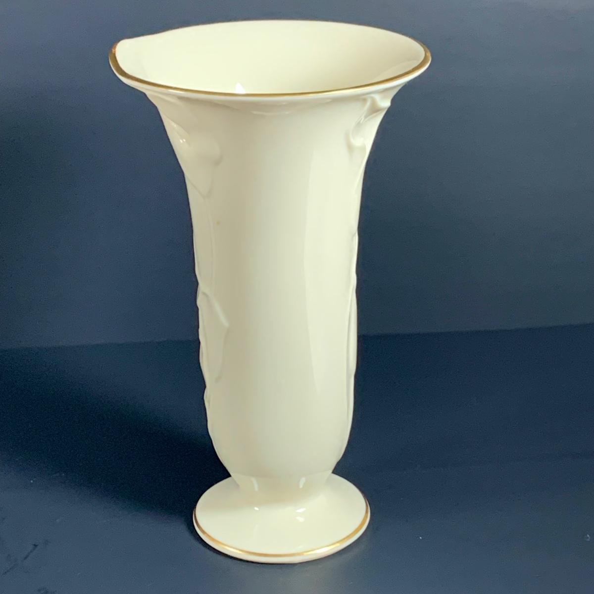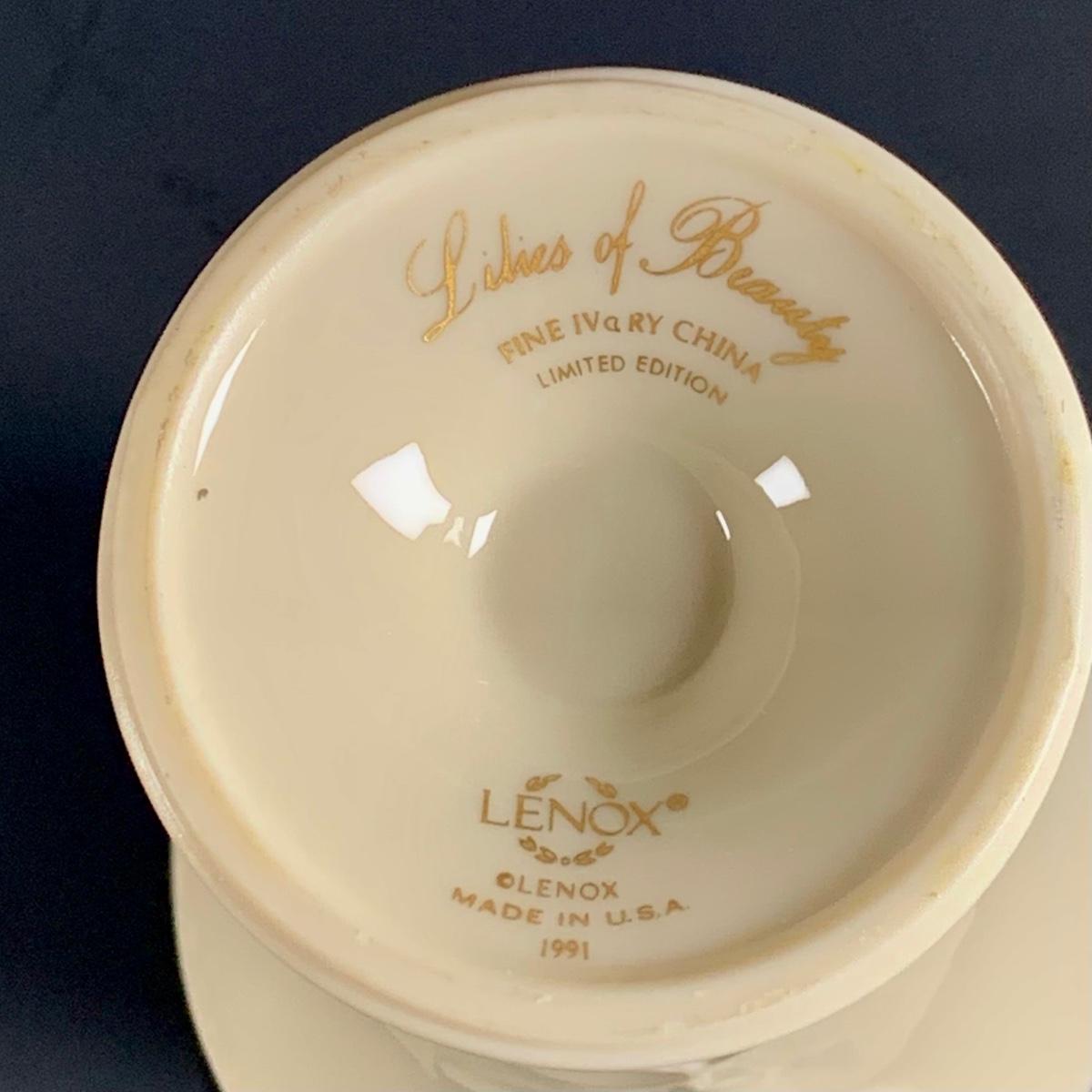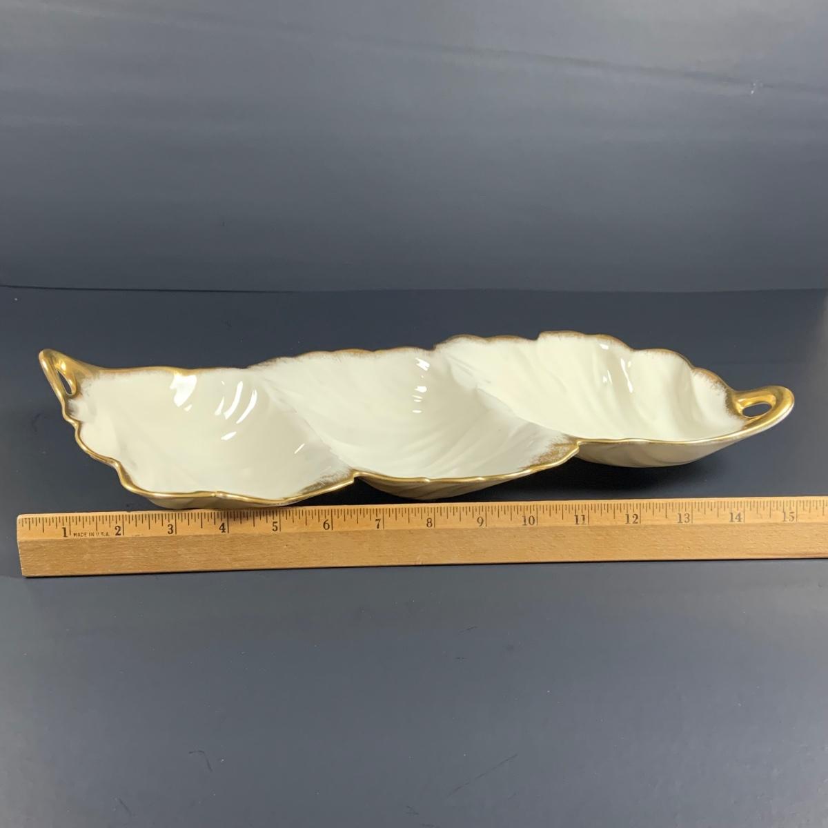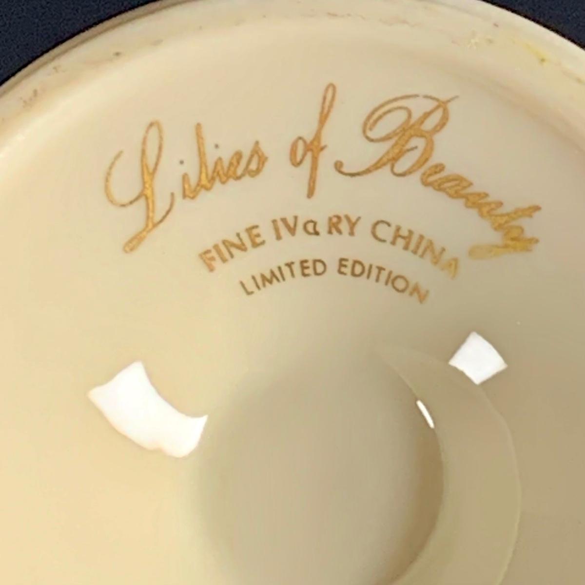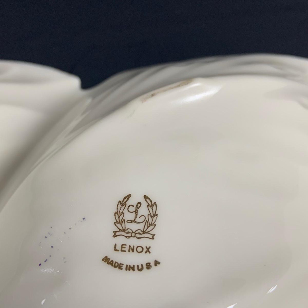 LOT 30: Lovely Lenox China Collection - Lilies of Beauty Vase, Triple Leaf Serving Dish with Gold Trim and February Birthstone Frame