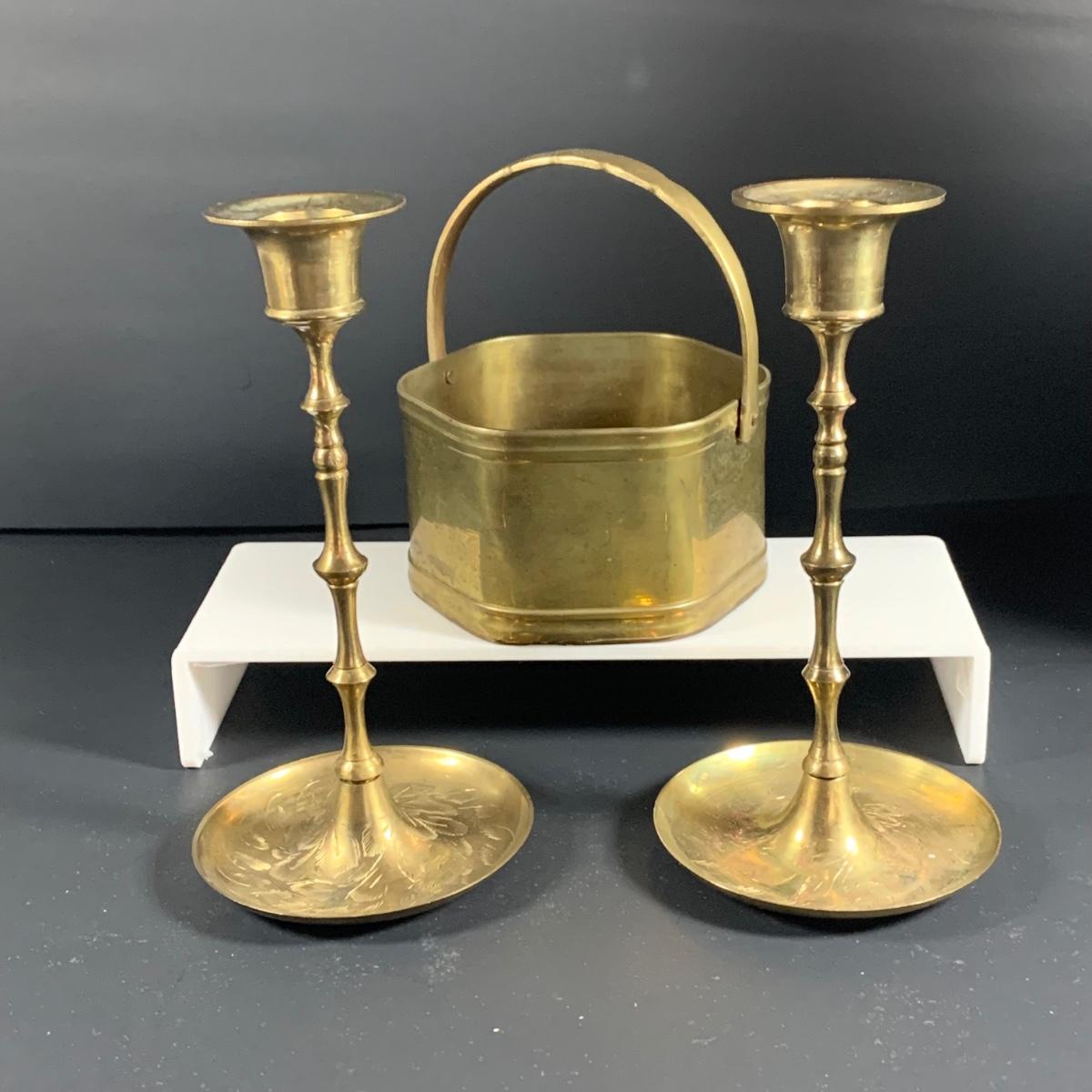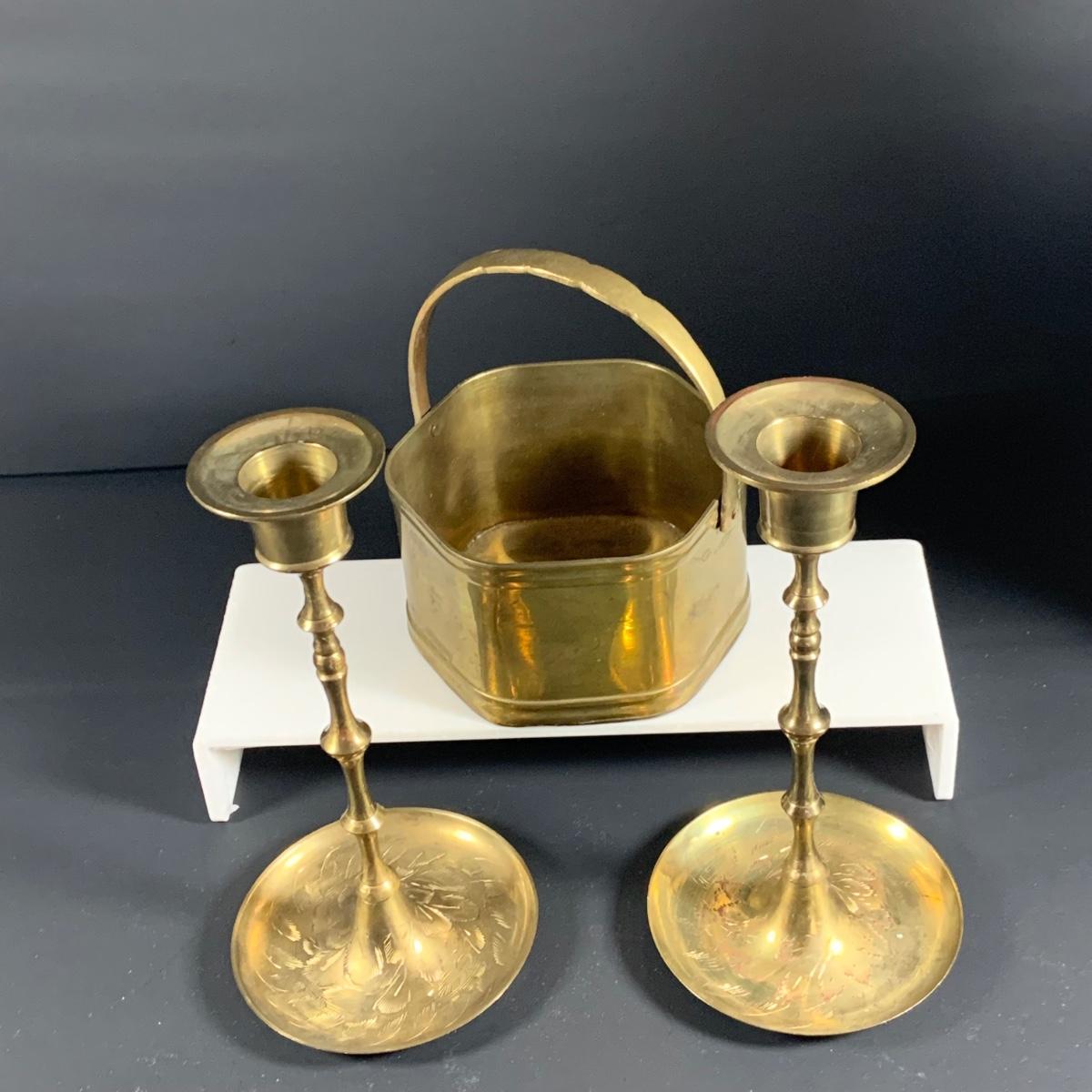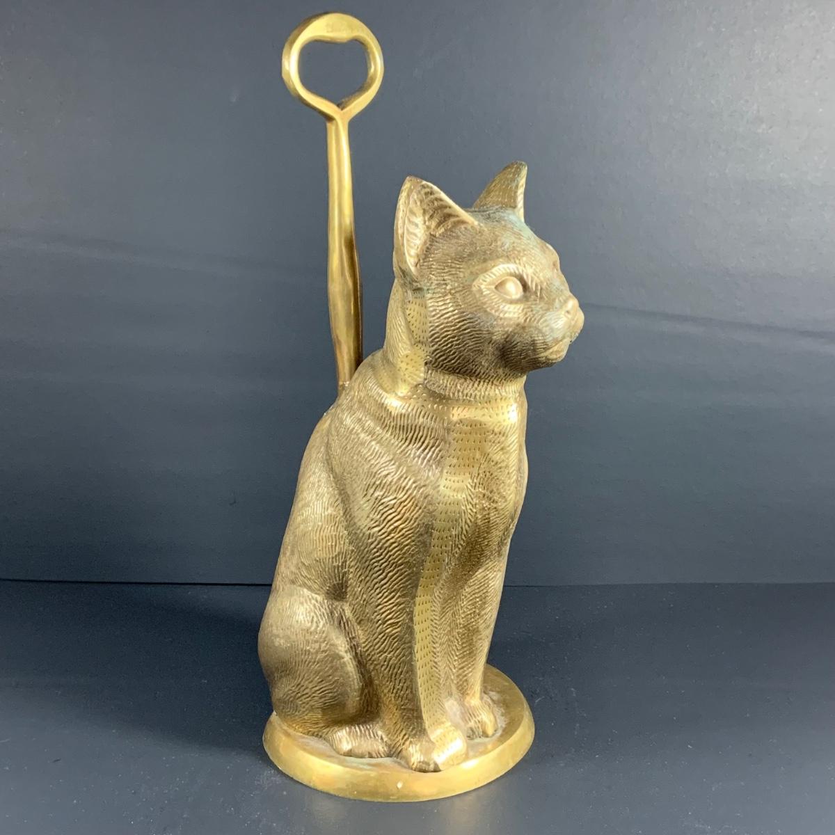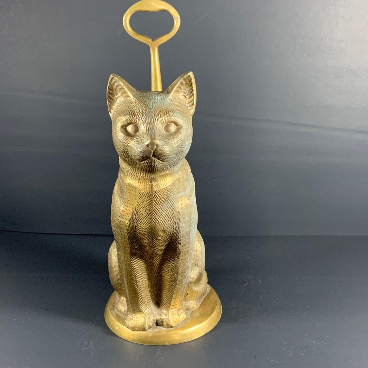 LOT32: Big Brass Collection Featuring a Brass Cat Door Stop, Candle Stick Solders, Bells. Basket and More