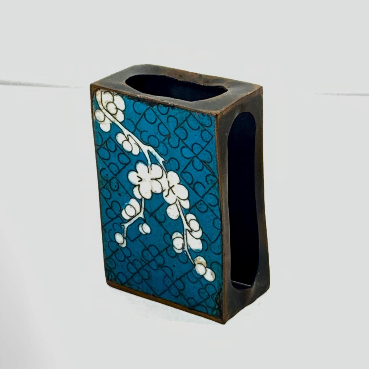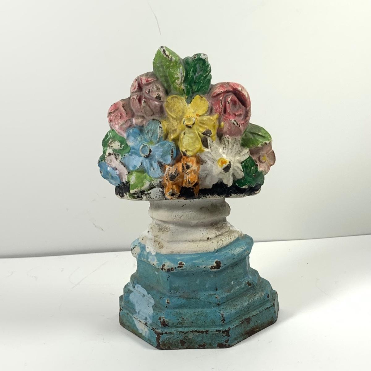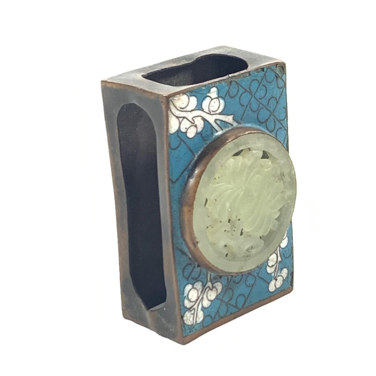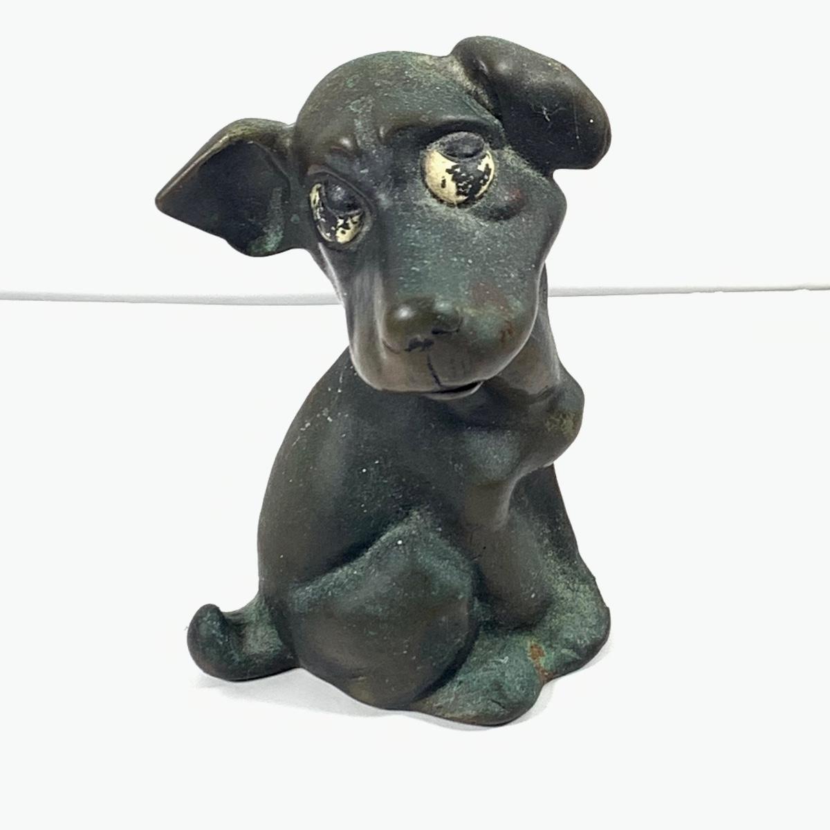 LOT 45: Cast Iron Dog Door and Flower Stop, Chinese Cloisonne and Carved Stone Matchbox Case and Vintage Bronze Dog and Onyx Pin/Trinke Tray