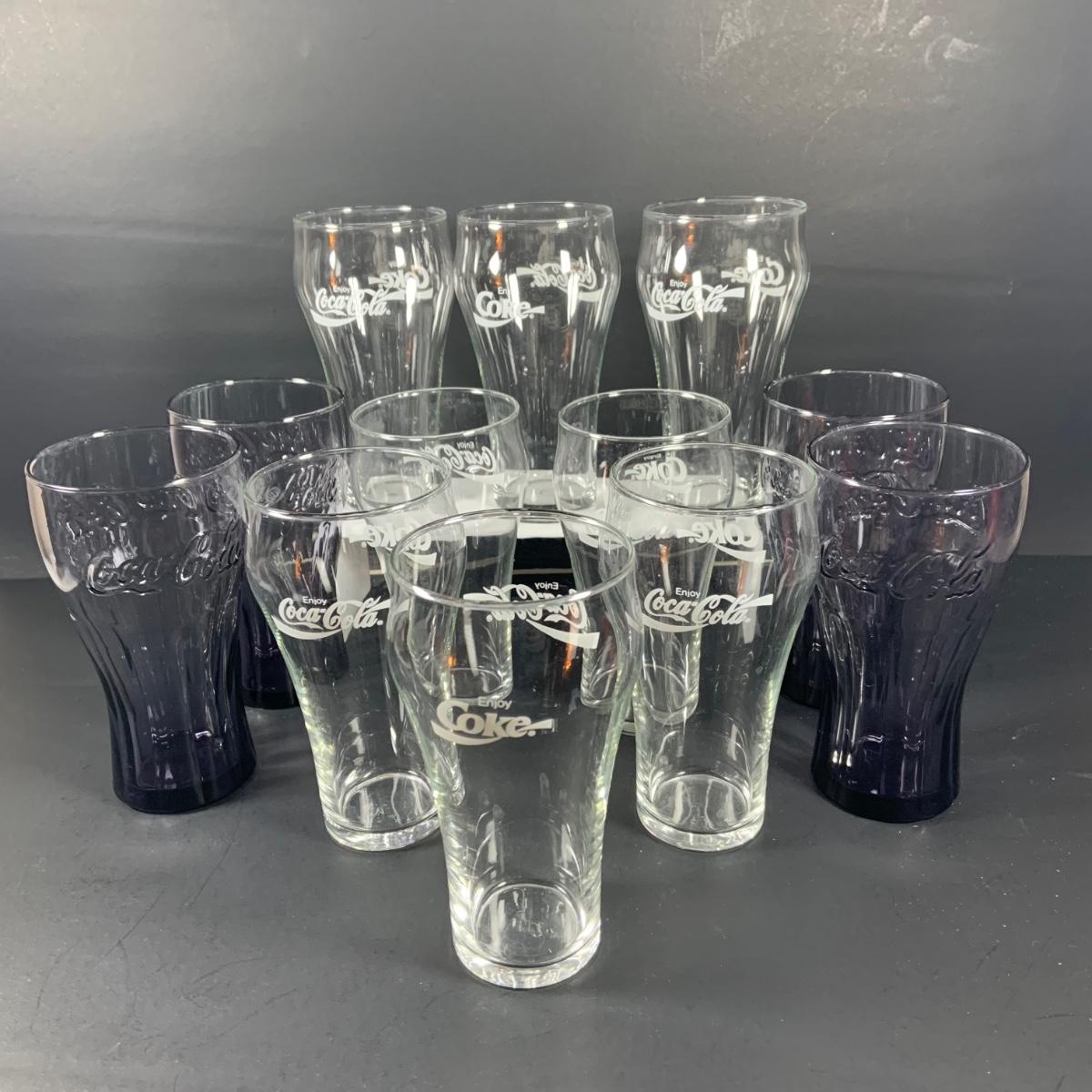 LOT 54: Collection of Vintage Coke - Coca Cola Drinking Glasses - 4 Purple and 8 Clear