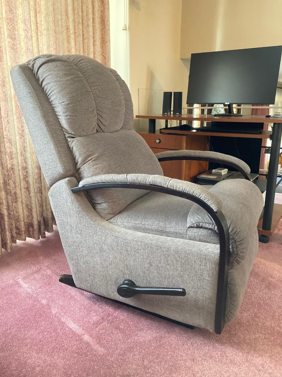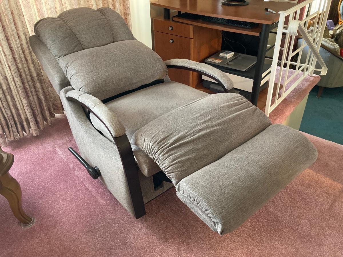 LOT 59: LA-Z-BOY Gray Upholstered Rocker Recliner Chair