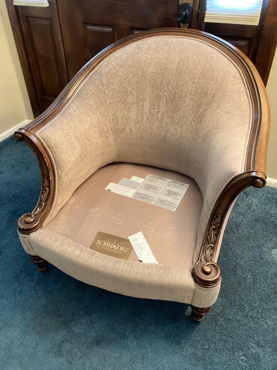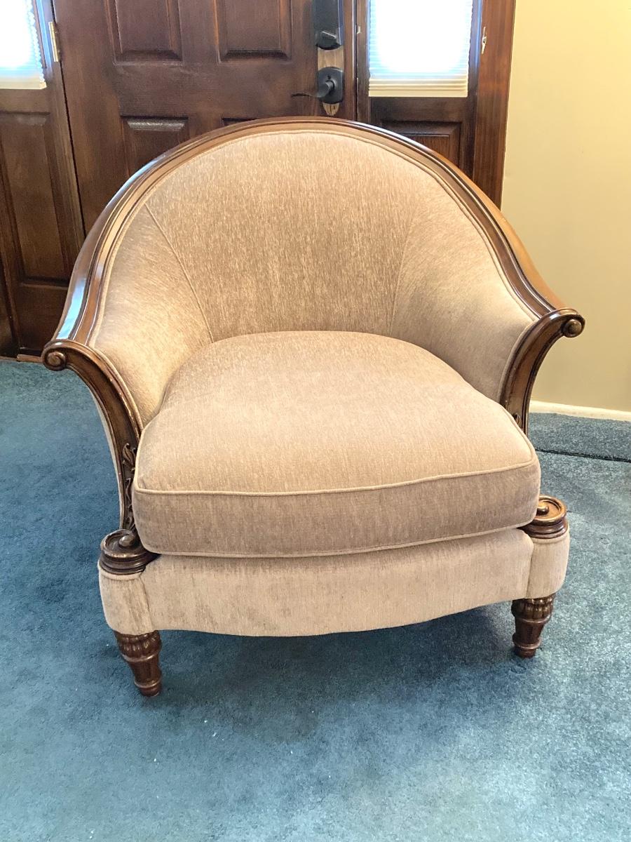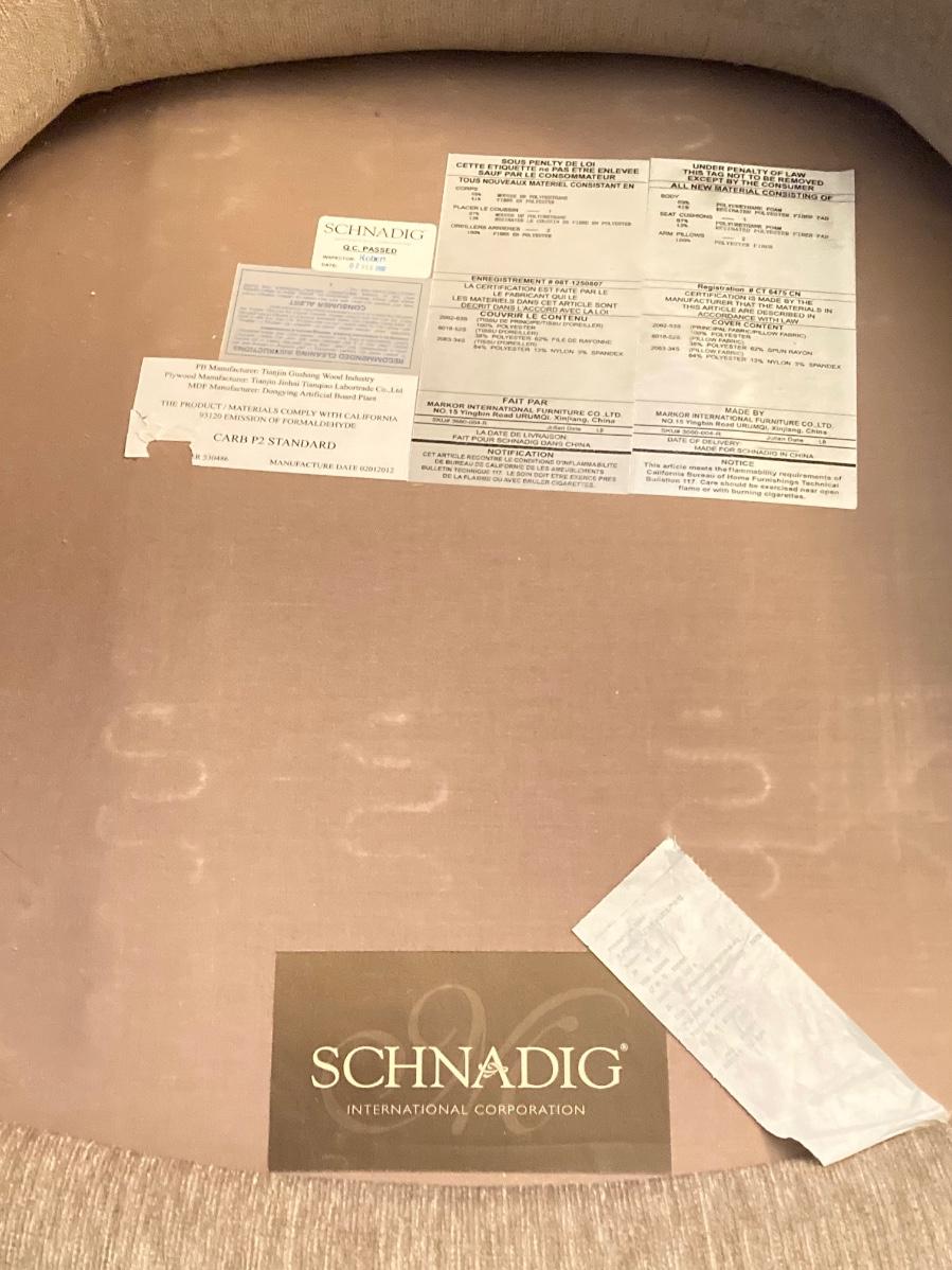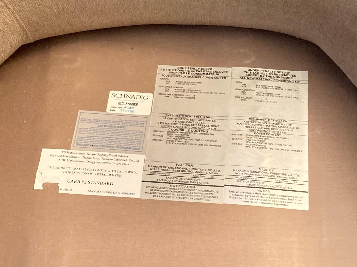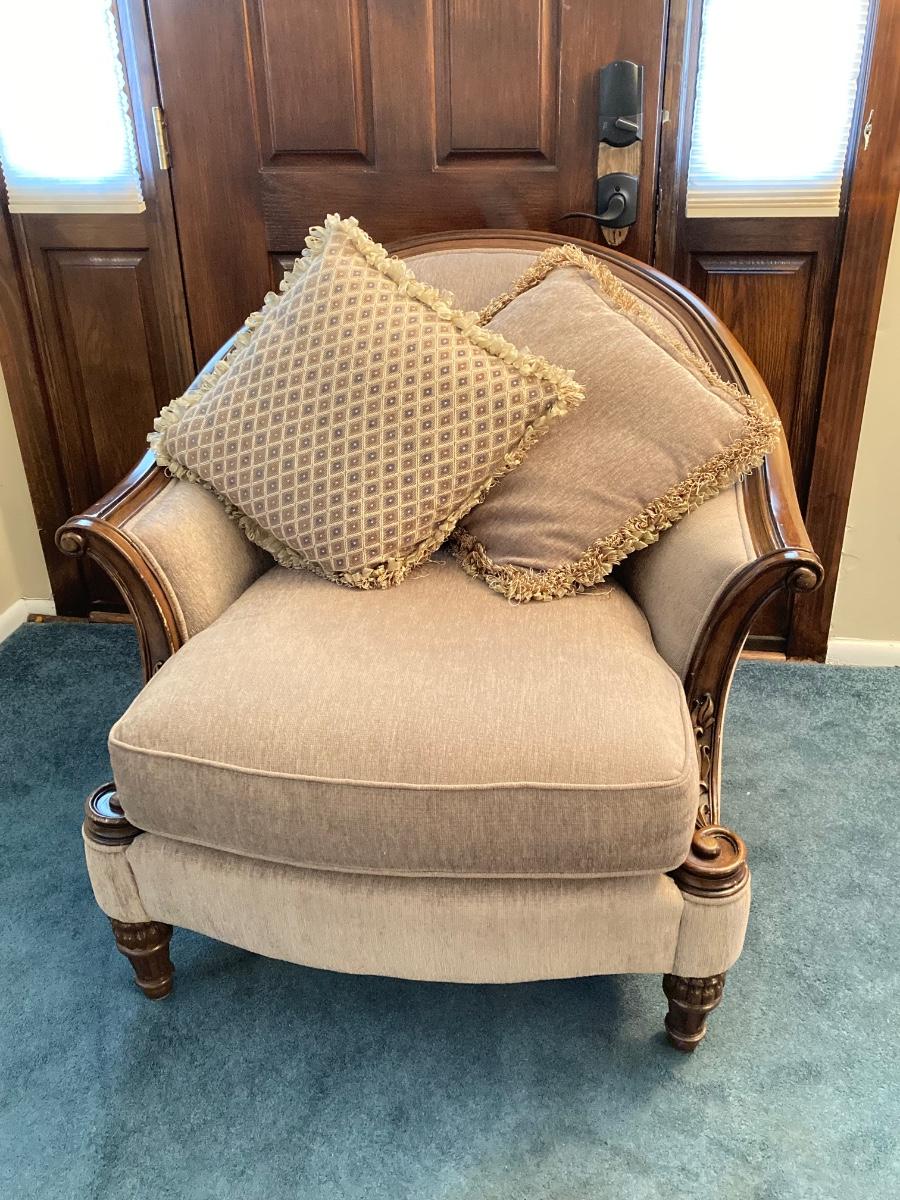 LOT 61: Schnadig International Corporation Upholstered Arm Chair with Two Accent Pillows