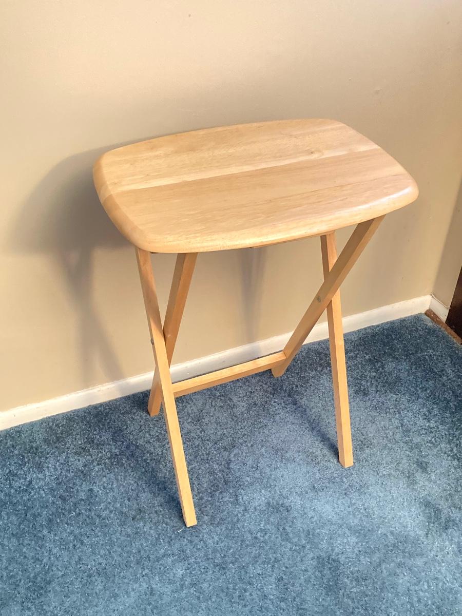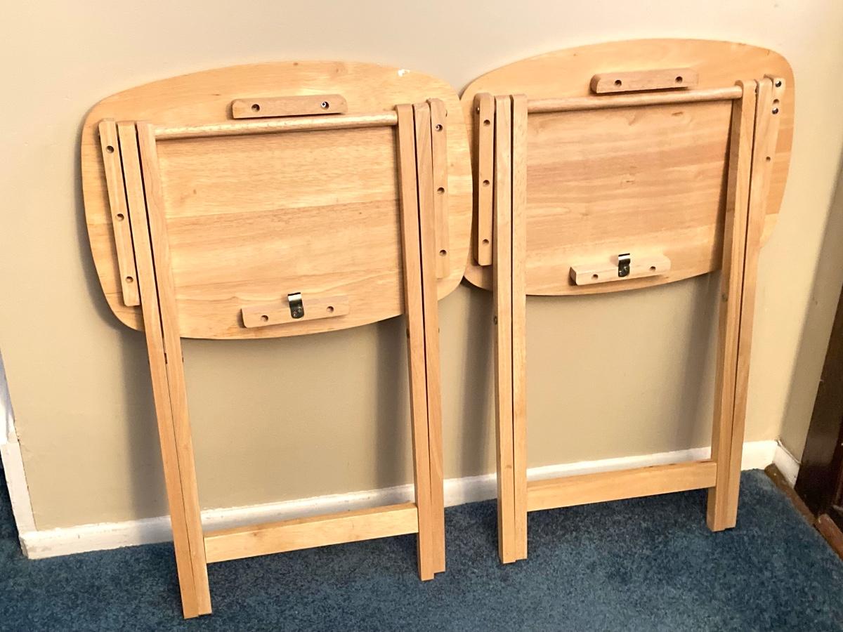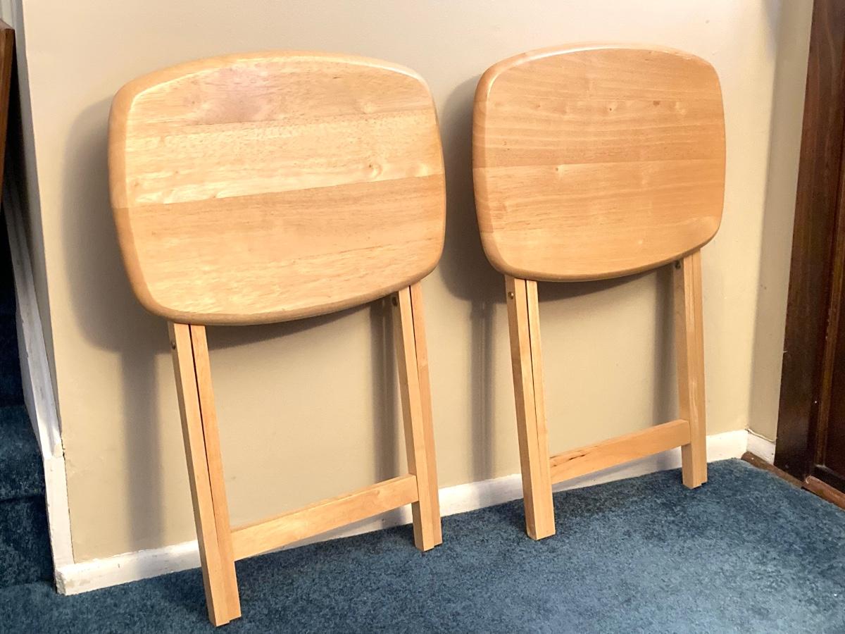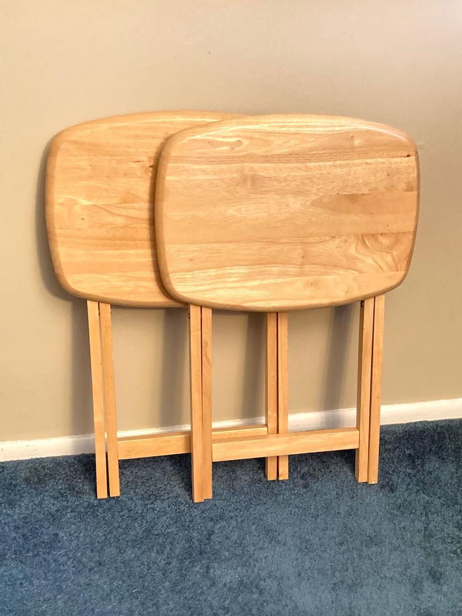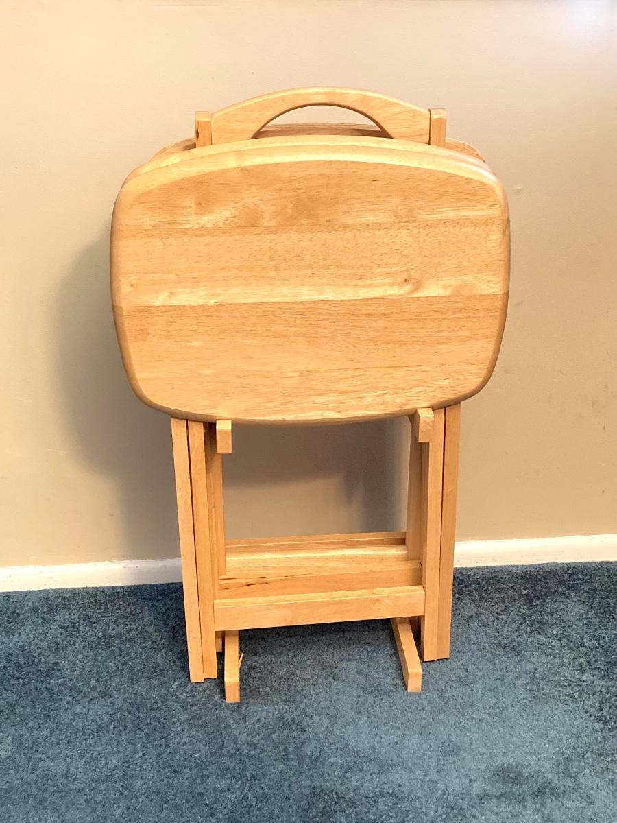 LOT 64: Set of Four Wood TV Tables with Holding Stand
