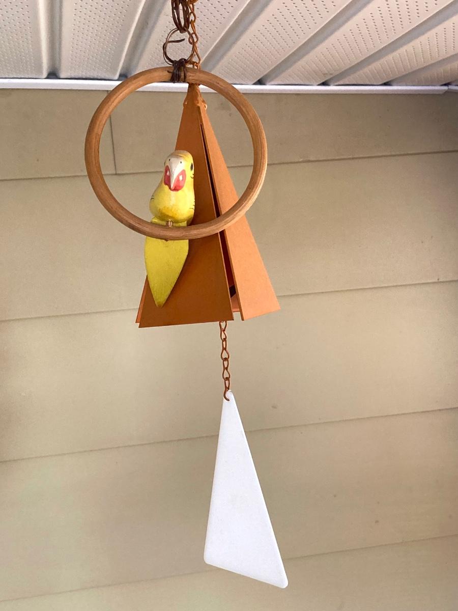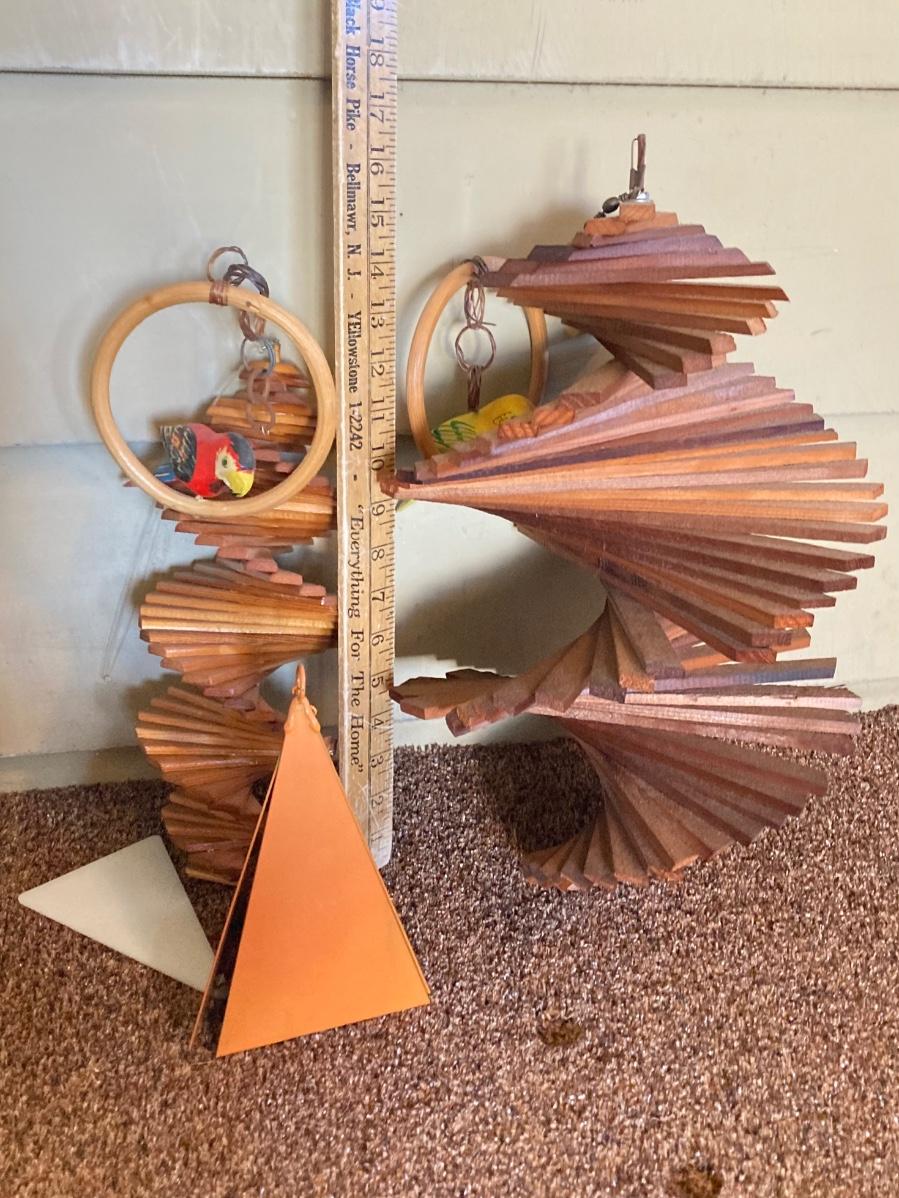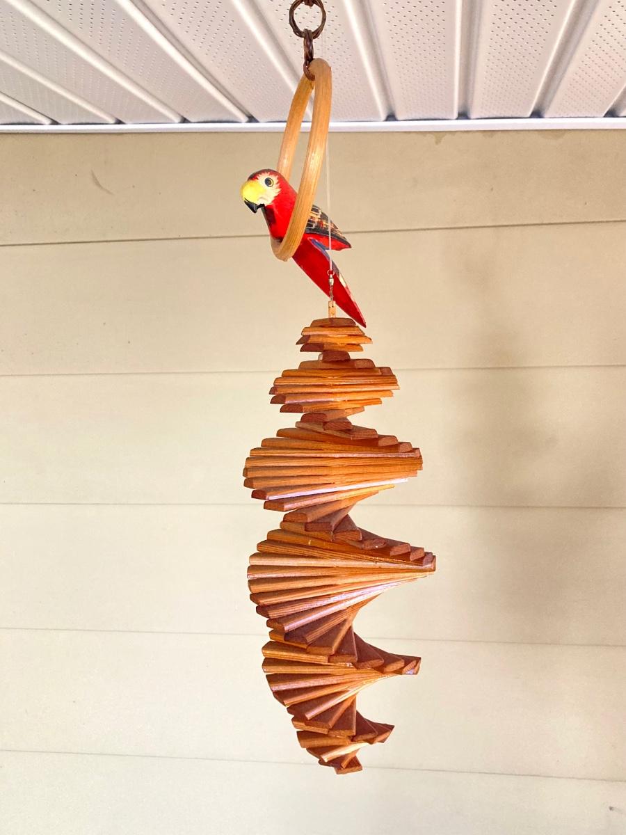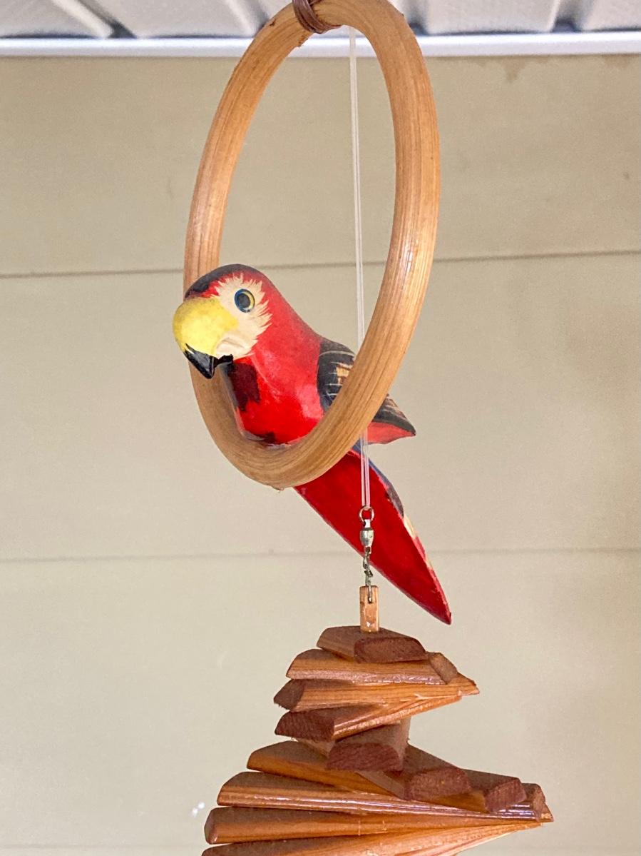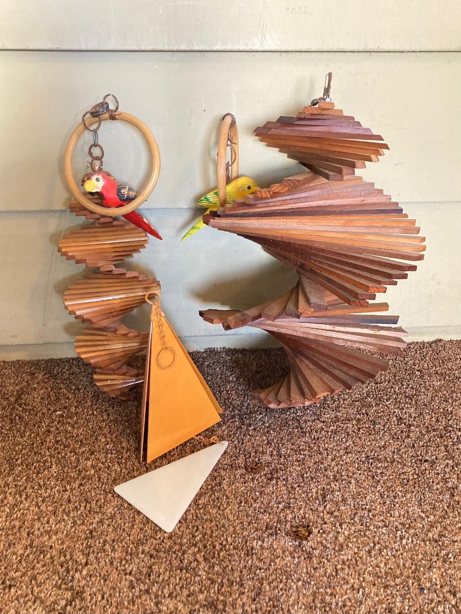 LOT 68: Decorative Vintage Wood Spinners, Carved Parrots and Metal Chimes