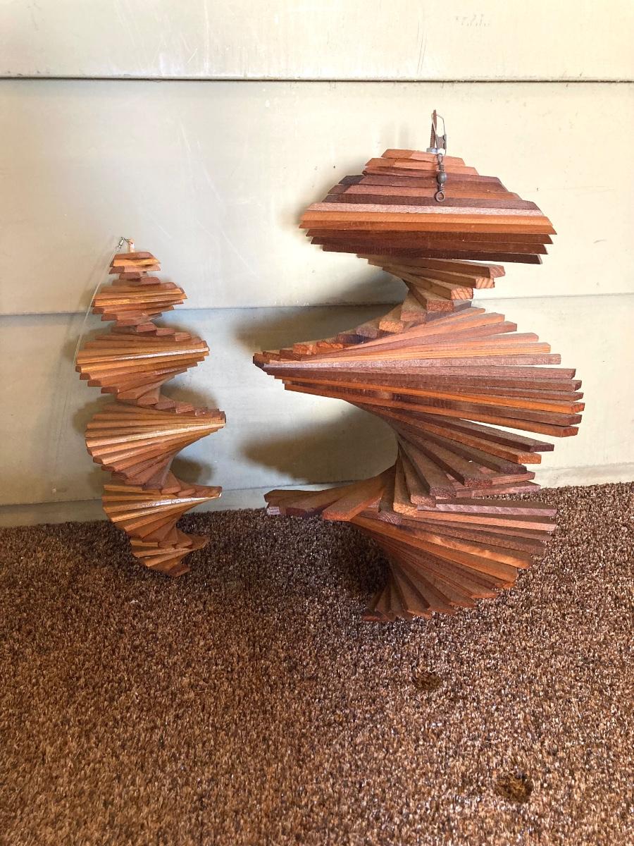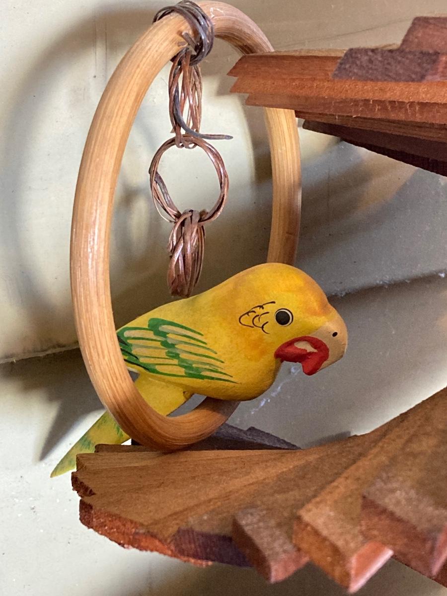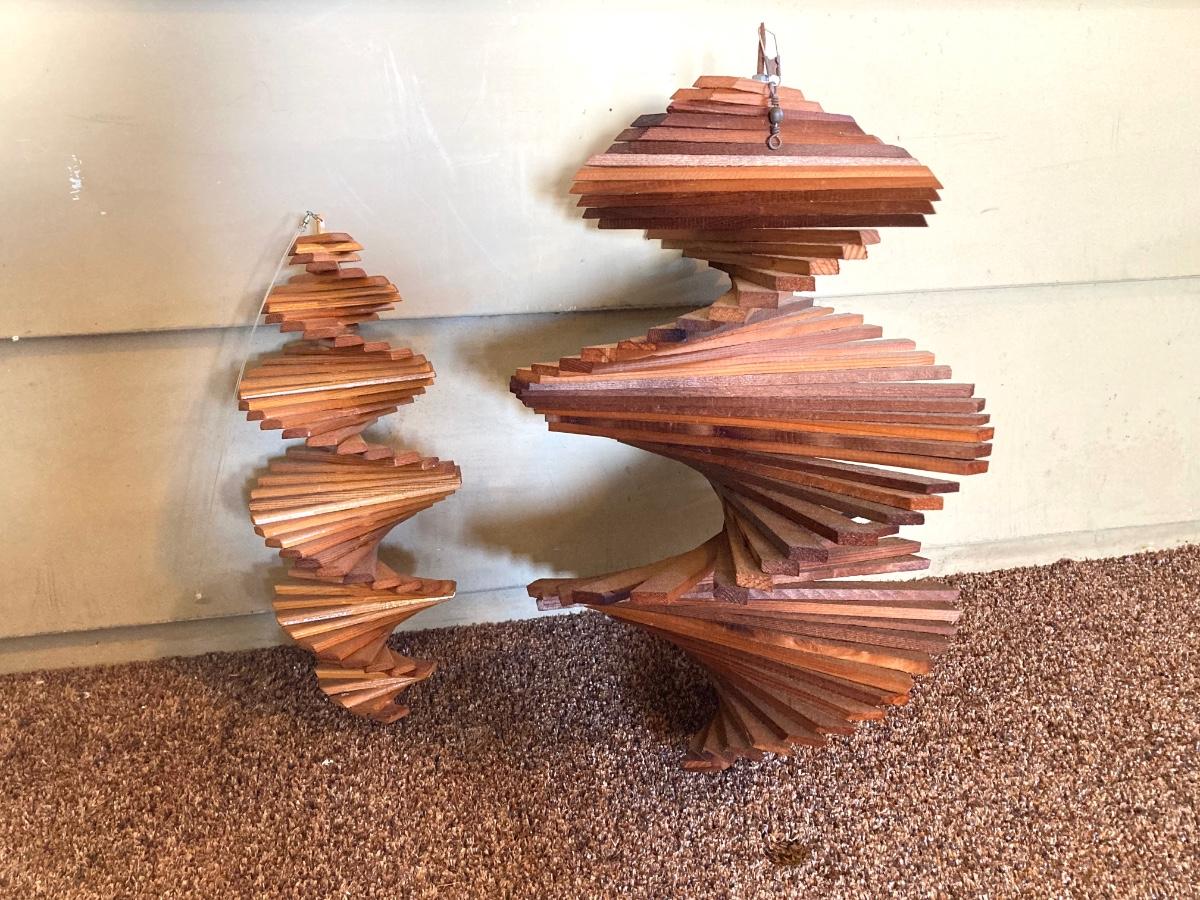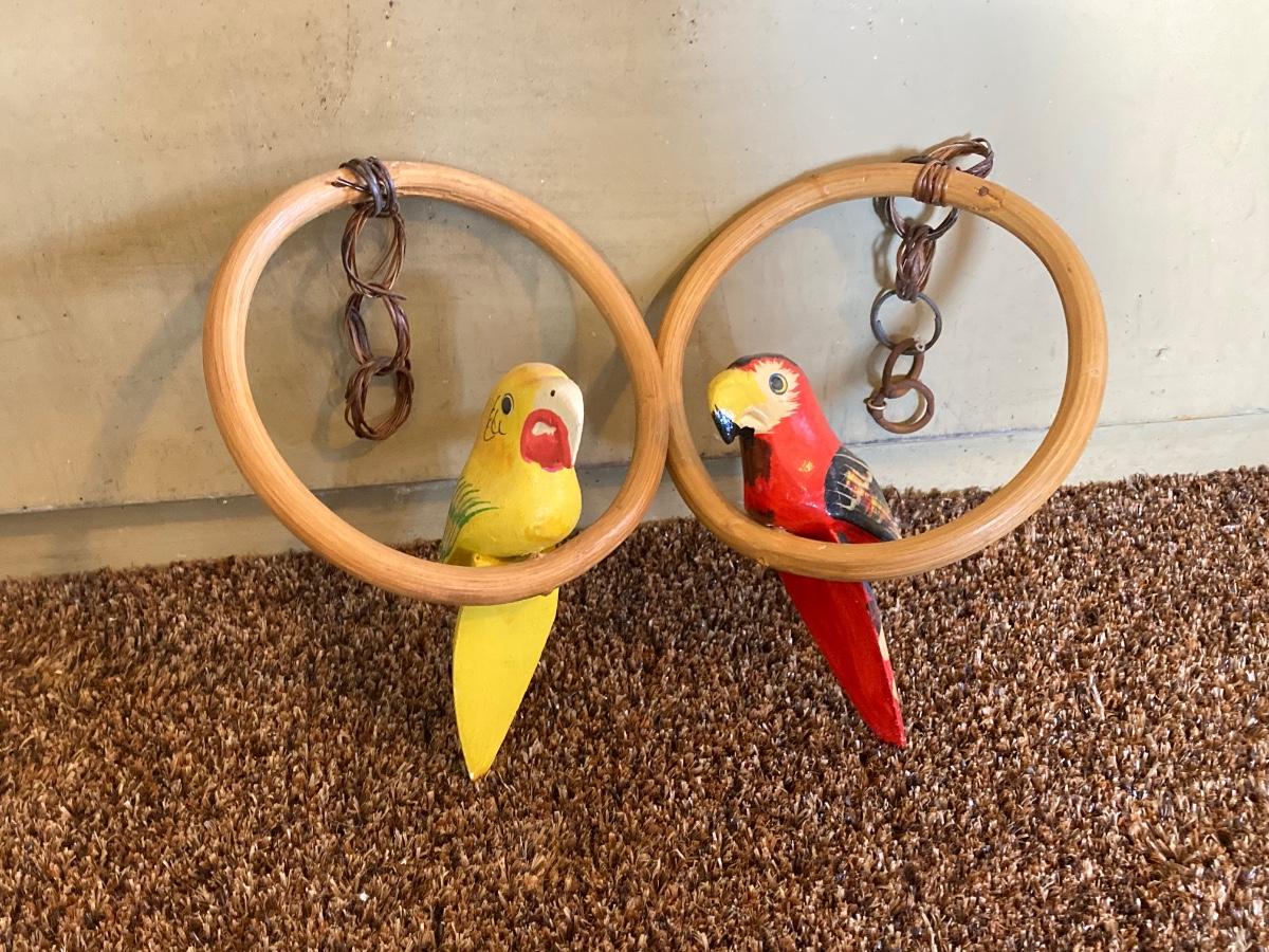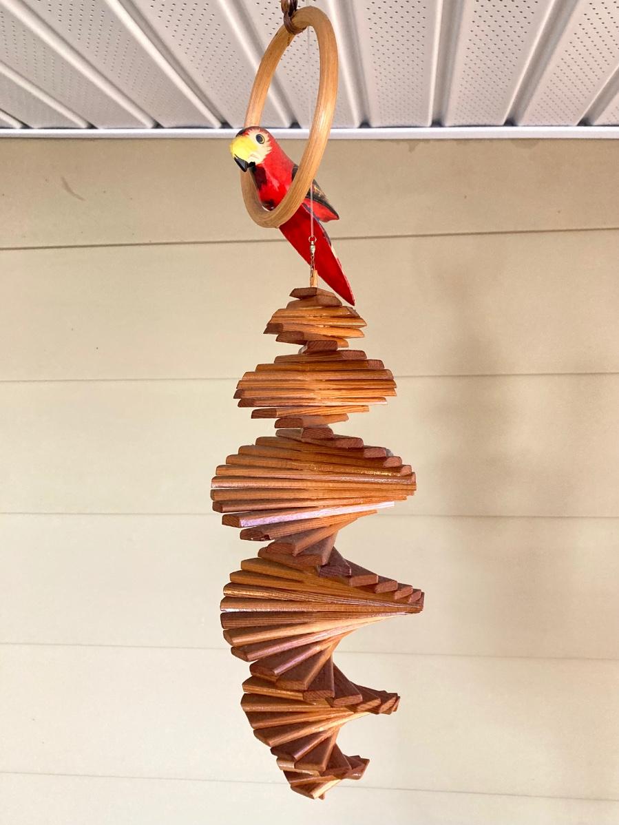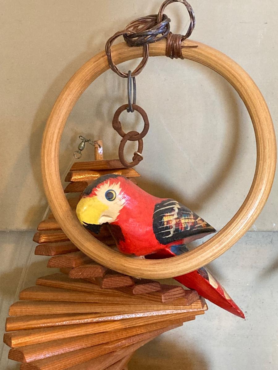LOT 68: Decorative Vintage Wood Spinners, Carved Parrots and Metal Chimes