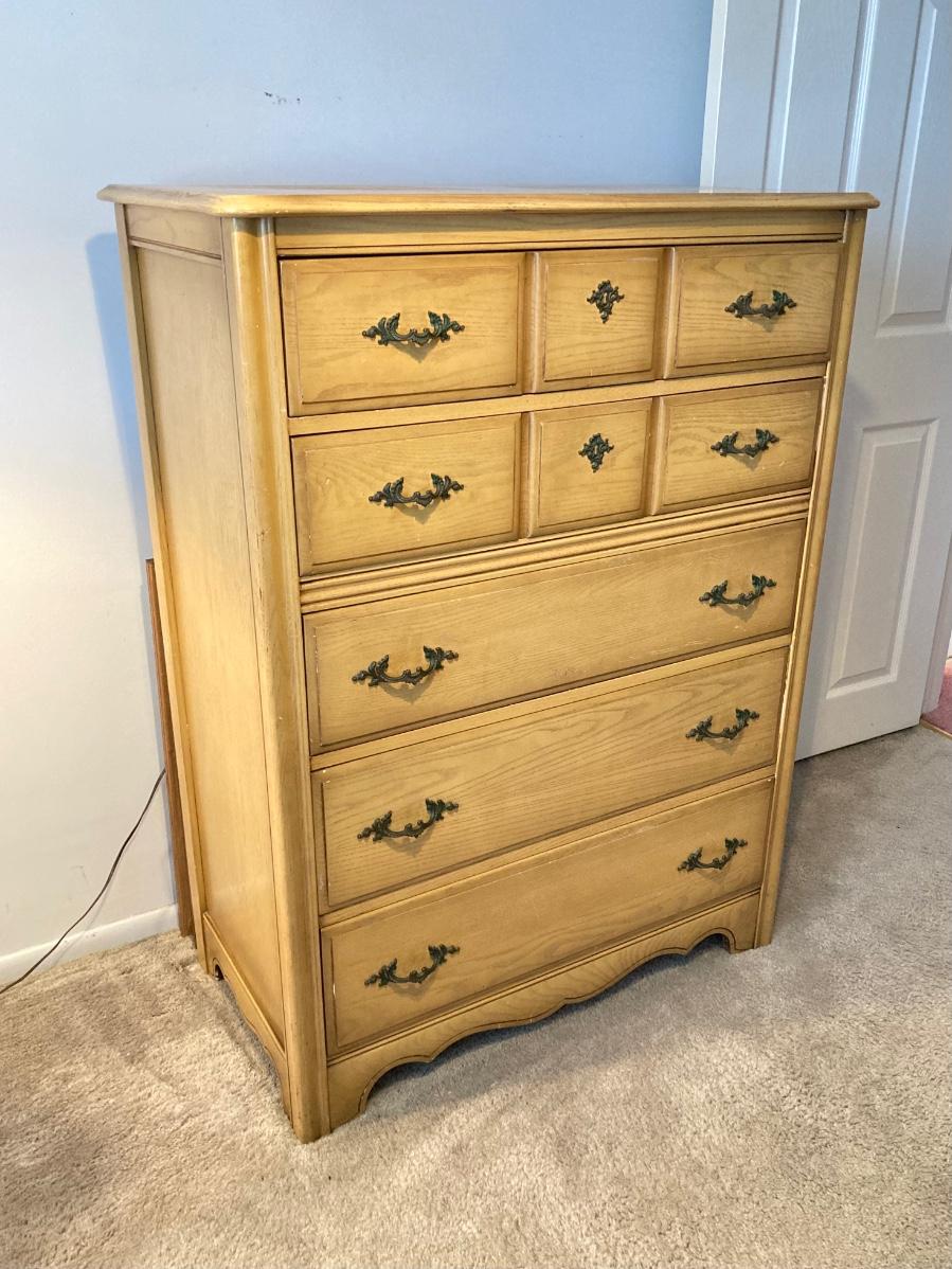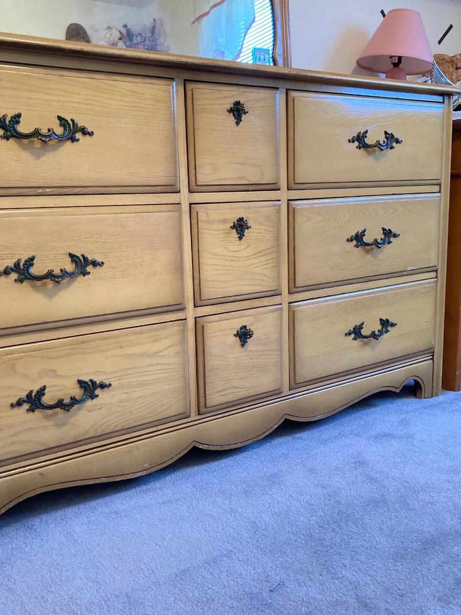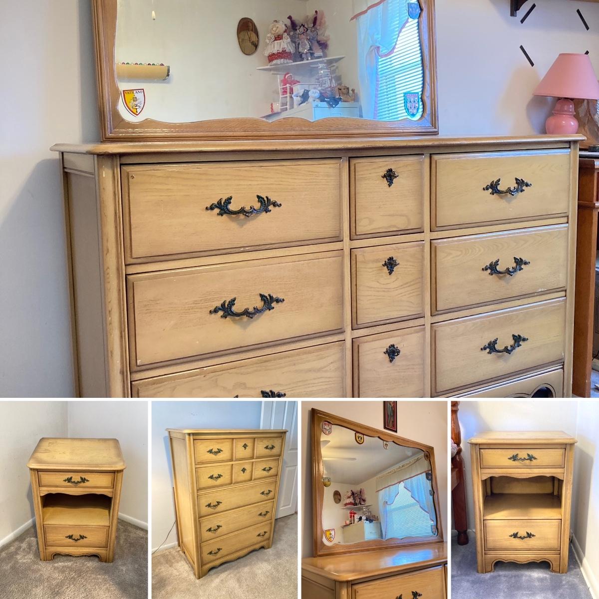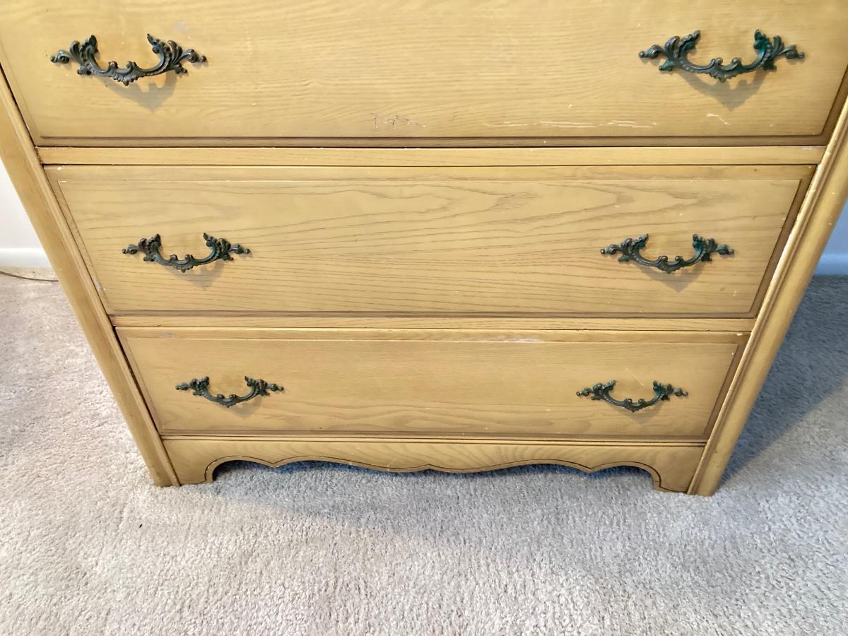 LOT 74: Vintage Five Piece Parchment Bedroom Set