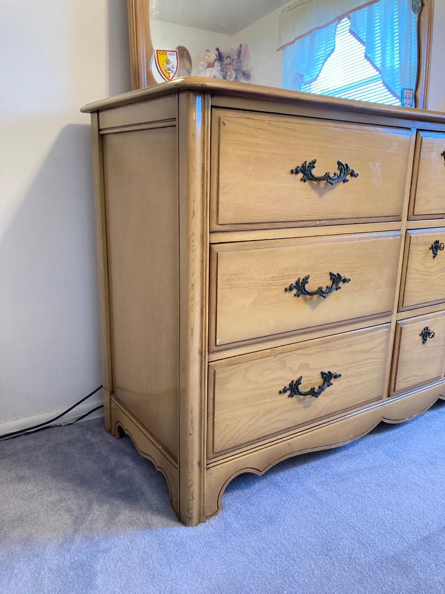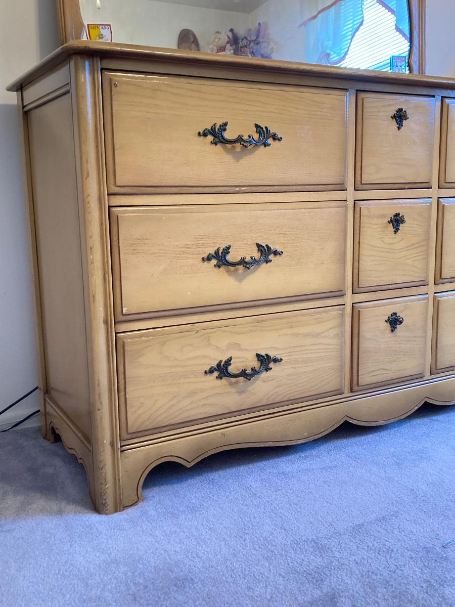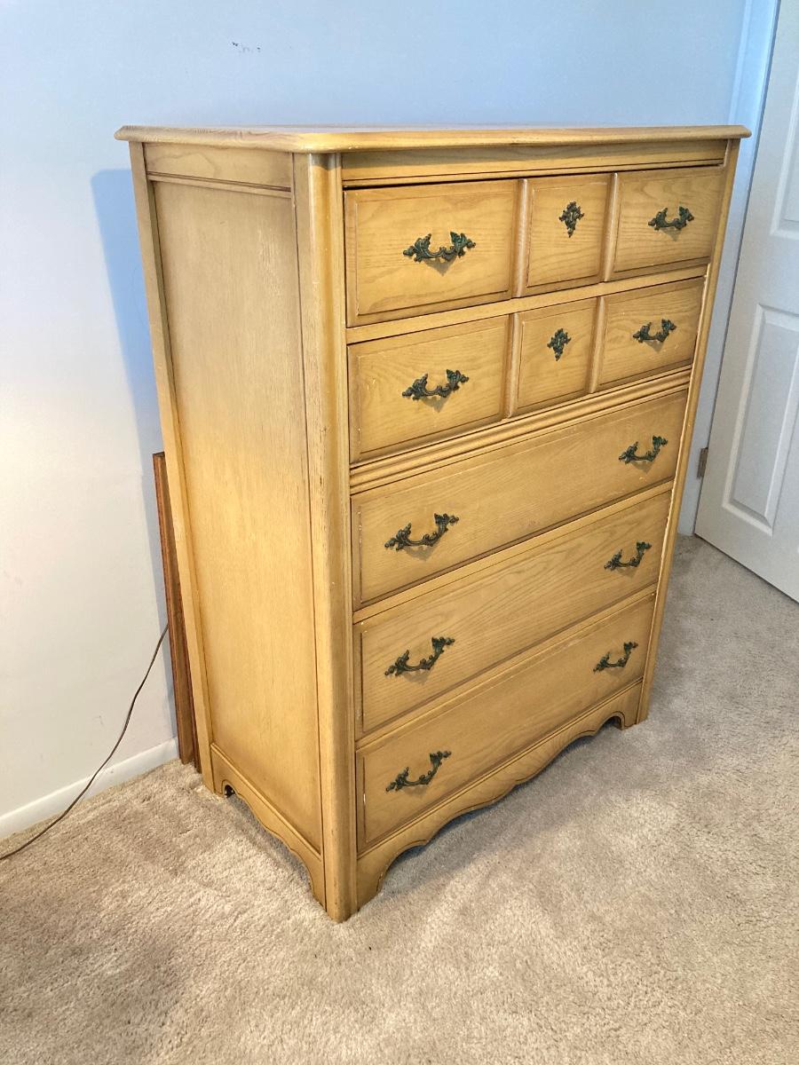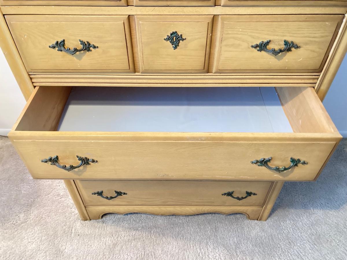 LOT 74: Vintage Five Piece Parchment Bedroom Set