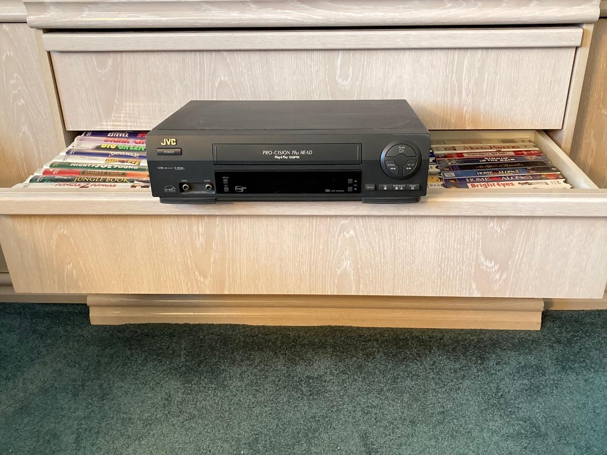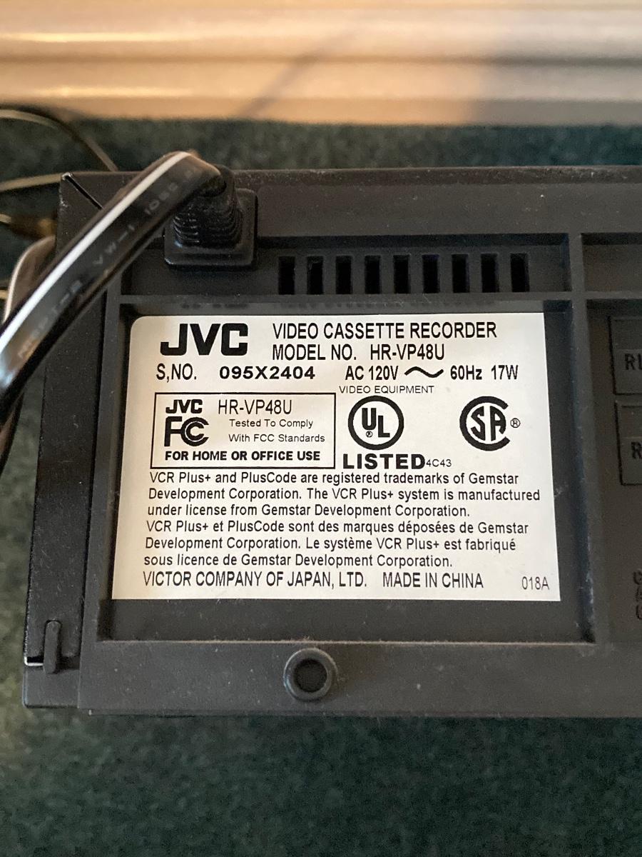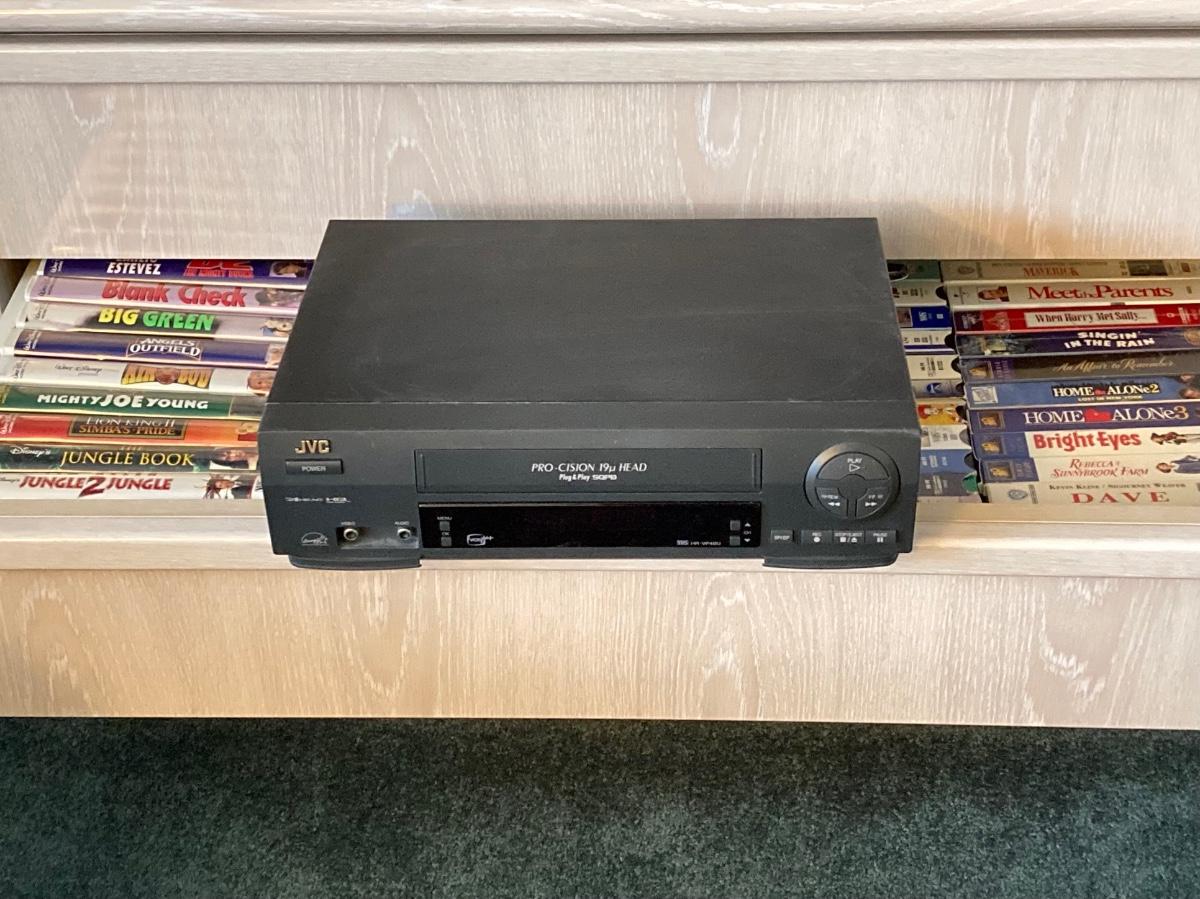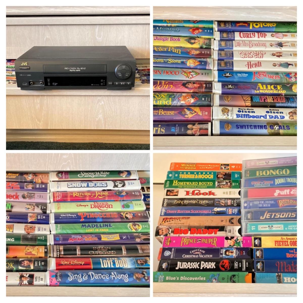 LOT 77: JVC VHS Video Cassette Recorder Player Model No HR-VP48U and Collection of Tapes and CDs
