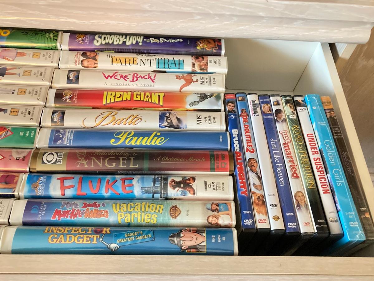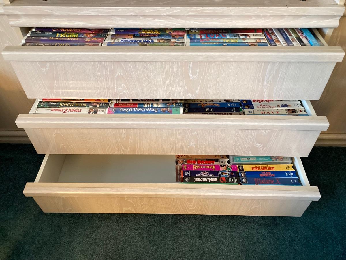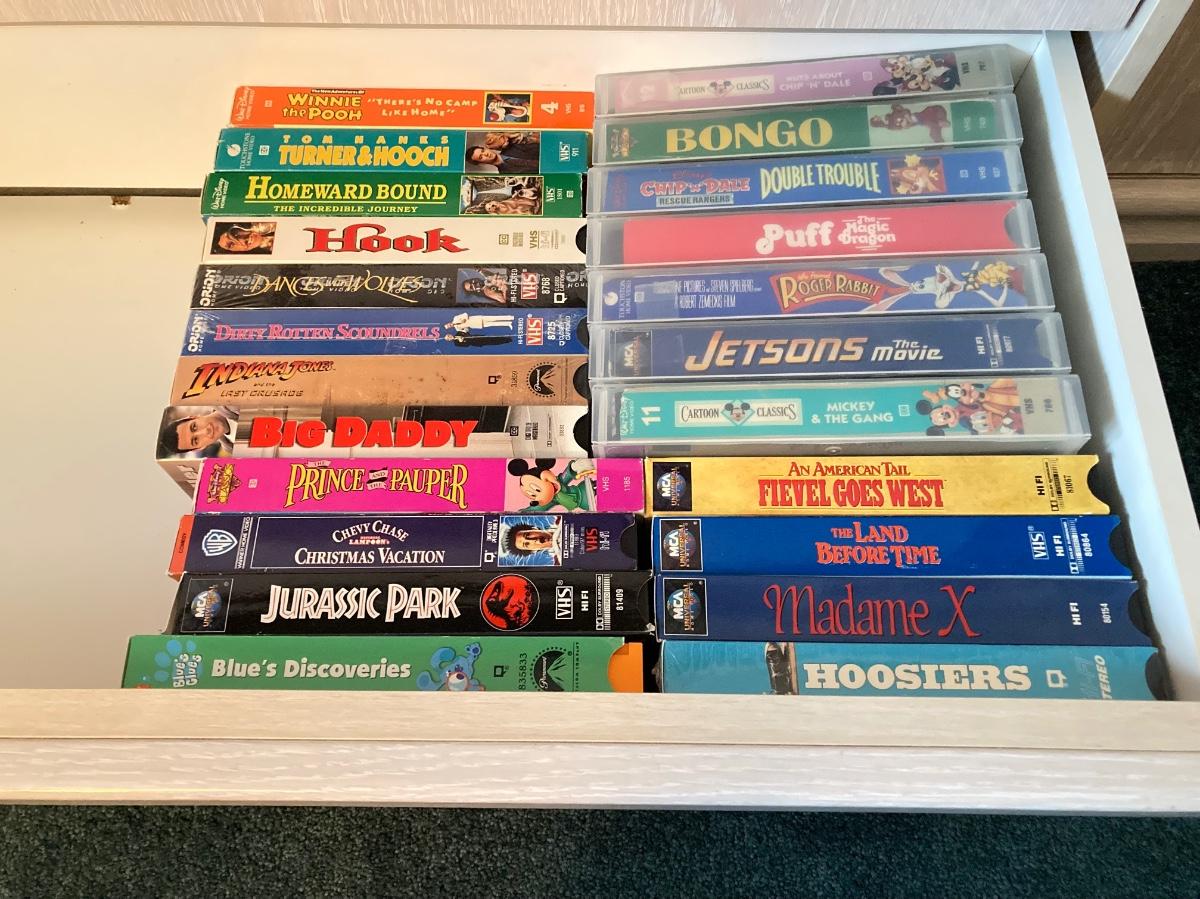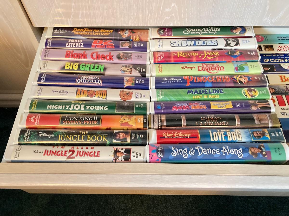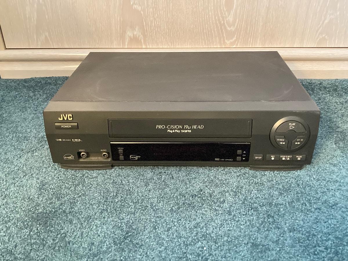 LOT 77: JVC VHS Video Cassette Recorder Player Model No HR-VP48U and Collection of Tapes and CDs