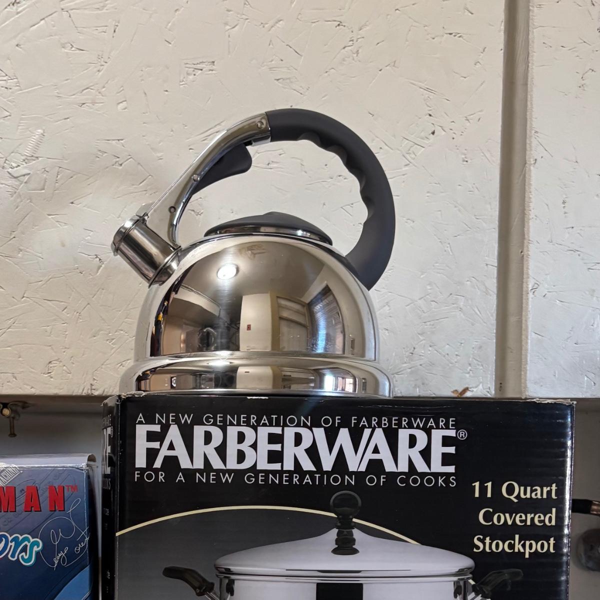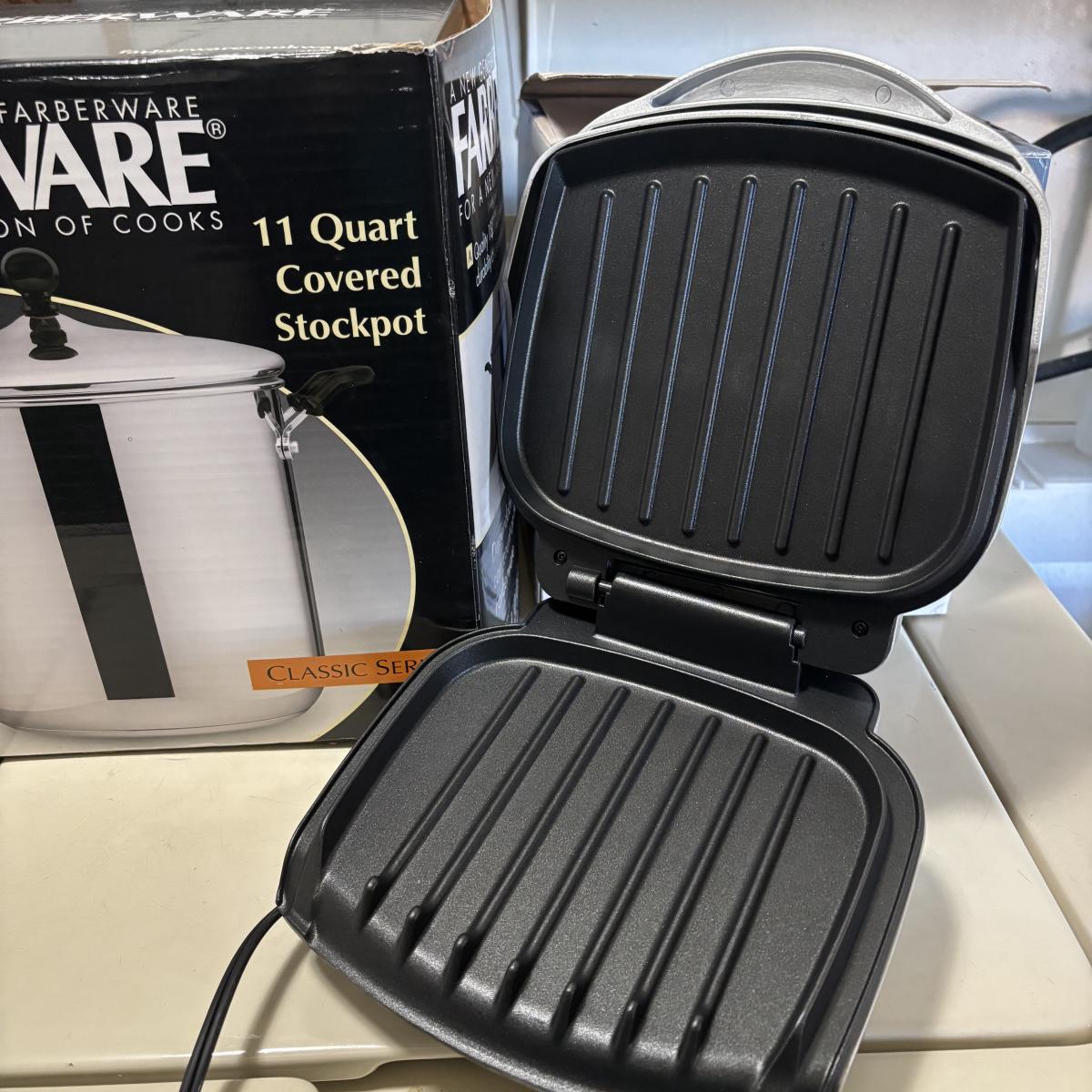 LOT 83: Farberware 11-qt Stockpot, George Forman Grill & Epicurious Teapot