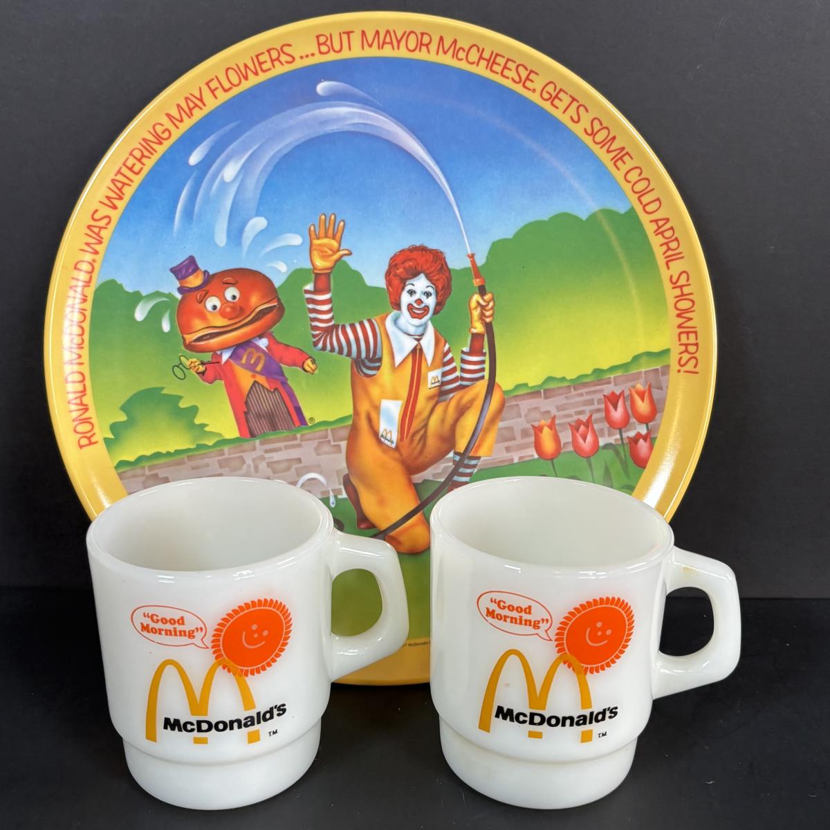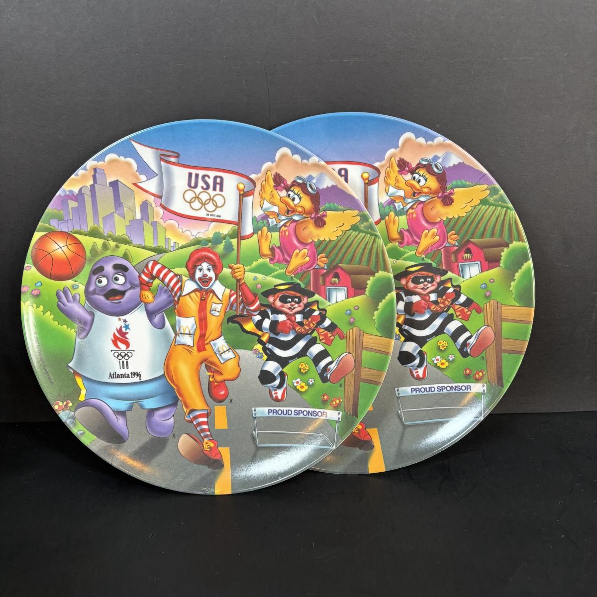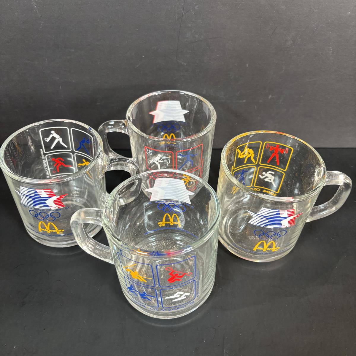 LOT 92: McDonalds Anchor Hocking Fire King Mugs, 1984 Olympic Glass Mugs, 1996 Atlanta Olympic Plates & the Four Seasons Plates