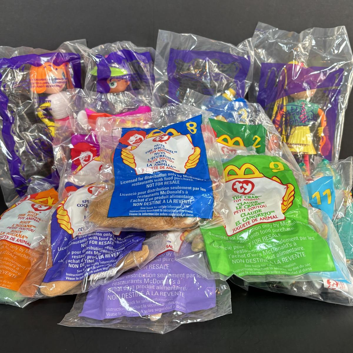 LOT 100: NIP McDonalds Happy Meal Toys: Betty Spaghetty-Complete set of 4 & 1999 Ty Teenie Beanie Babies Complete Set of 12