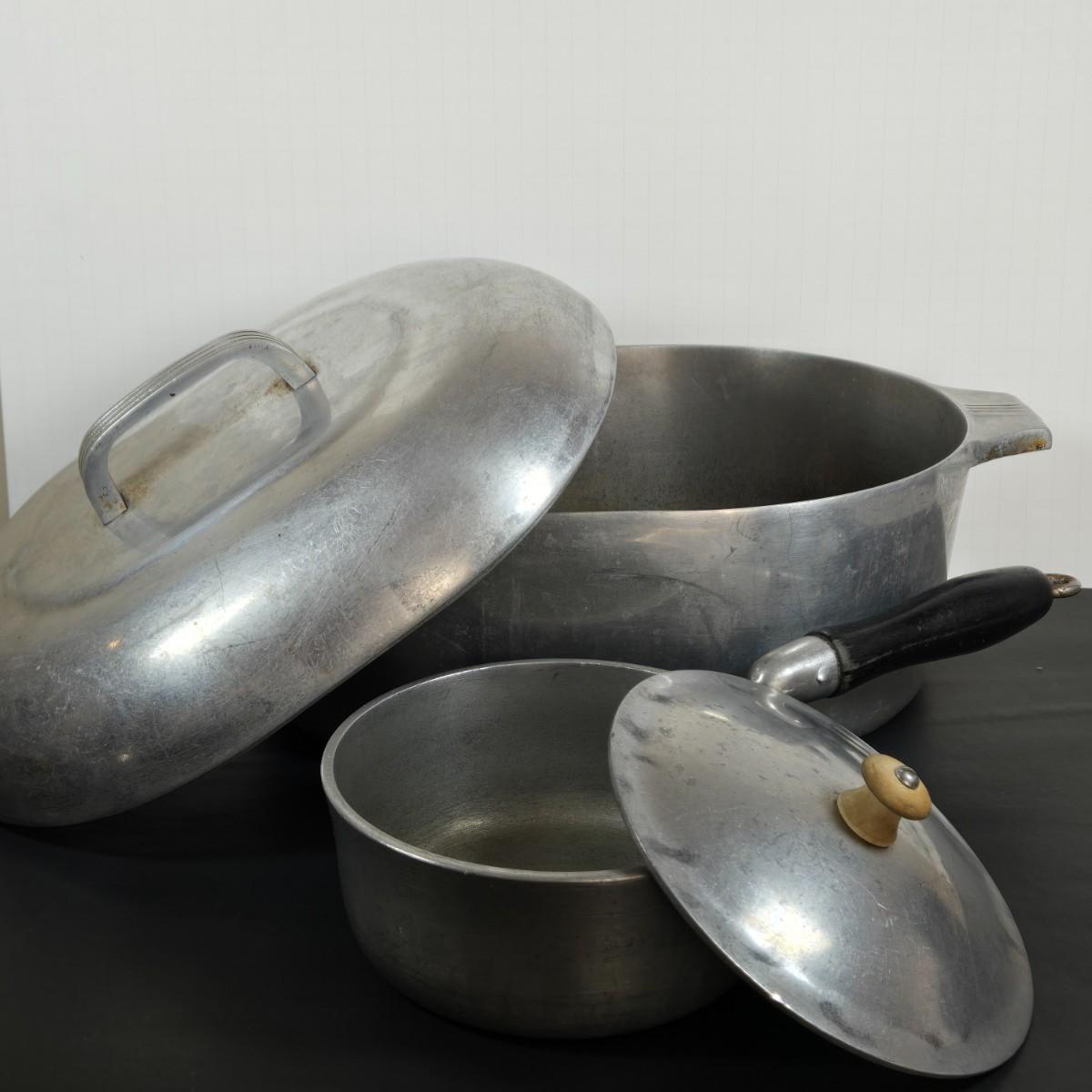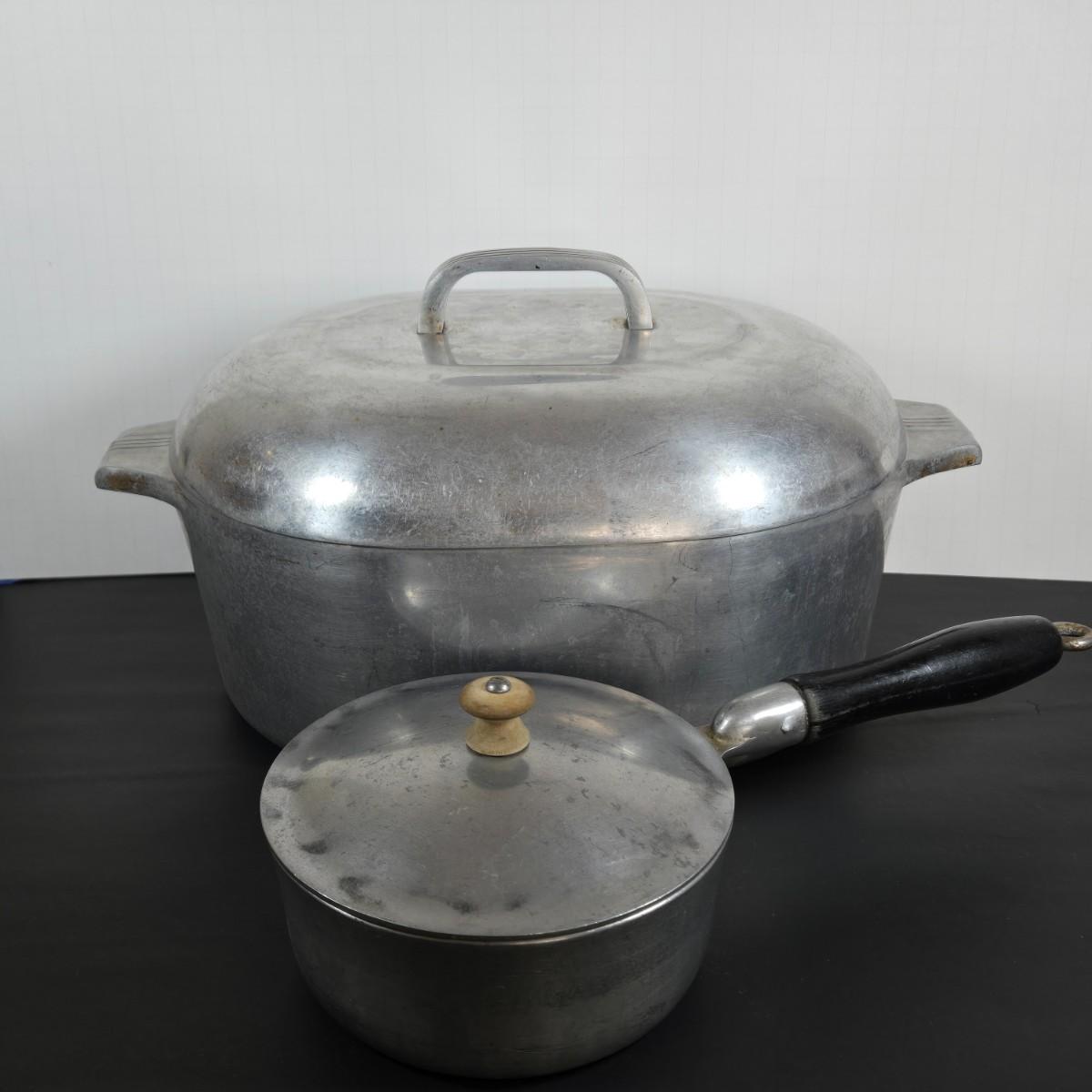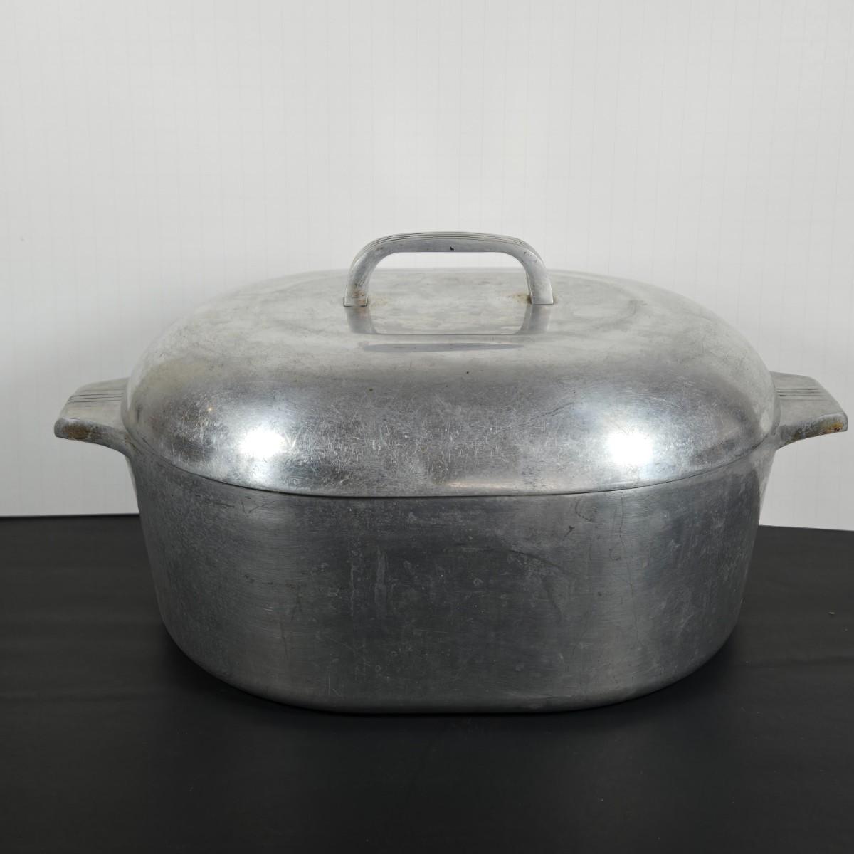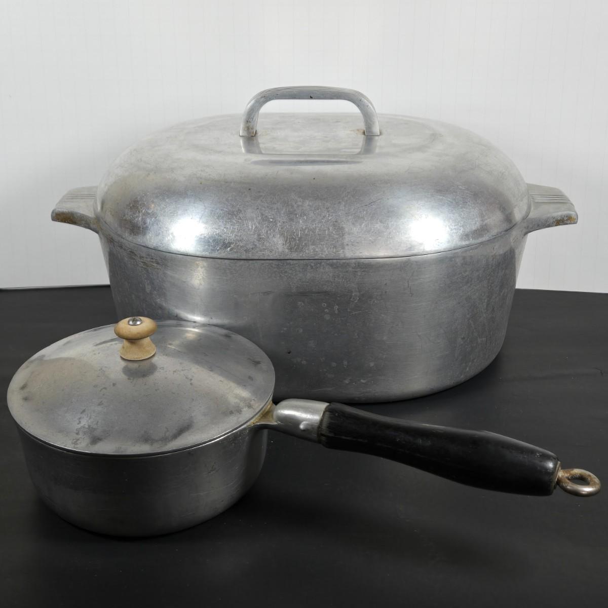 LOT 110: Vintage Magnalite Aluminum Classic Oval Roaster & Vintage Aluminum Saucepan w/Lid