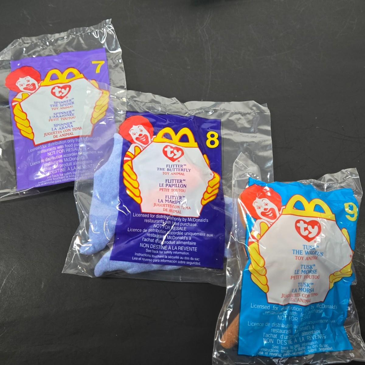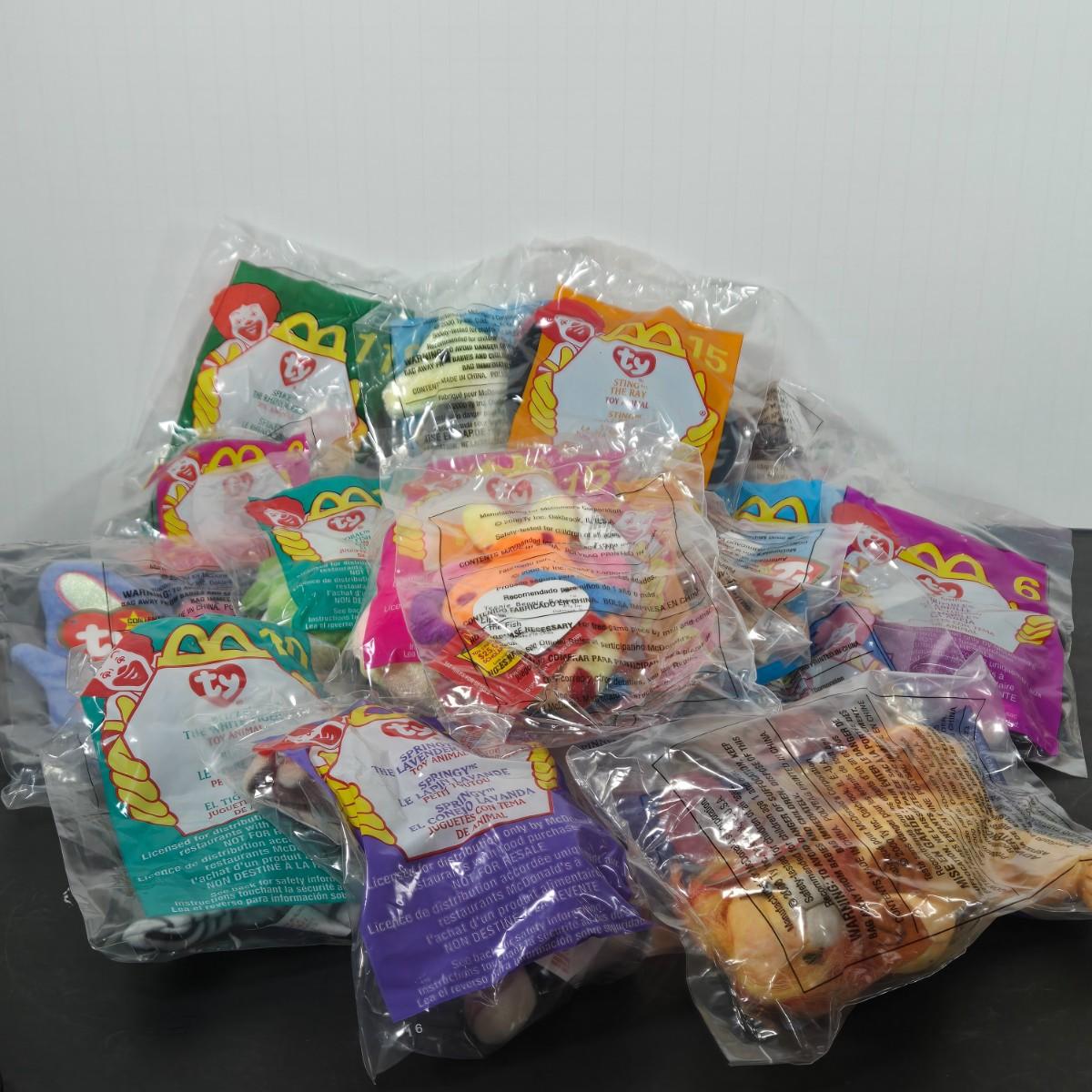 LOT 121: All in Unopened Original Packing; Complete Set of YEAR 2000 TY BEANIES, Incomplete Set of JUSTICE, NICKELODEON VICTORIOUS, and BARBIE Happy Meal Toys